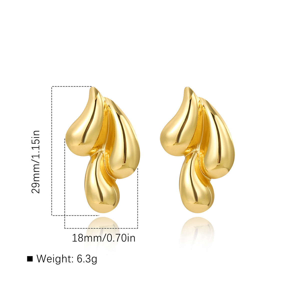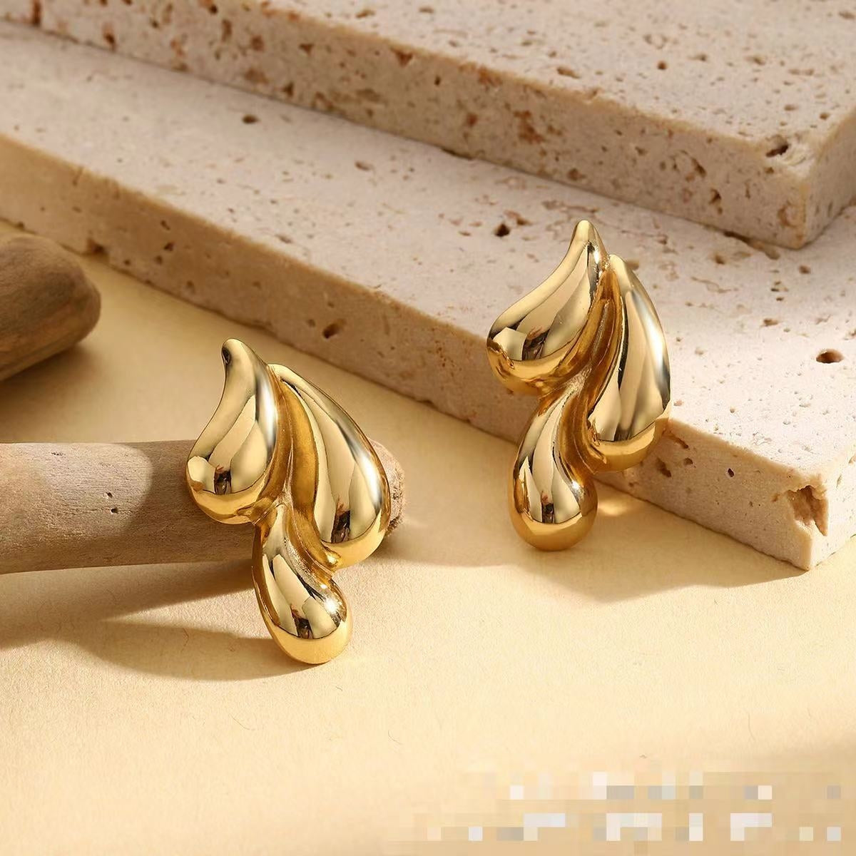 1 Pair Artistic Water Droplet Stainless Steel Gold Teardrop Earrings