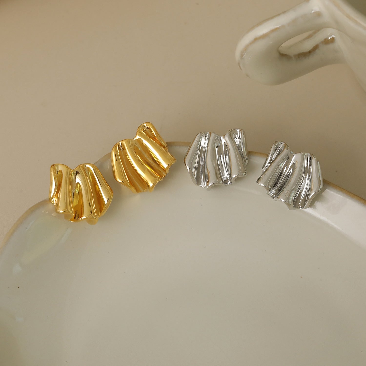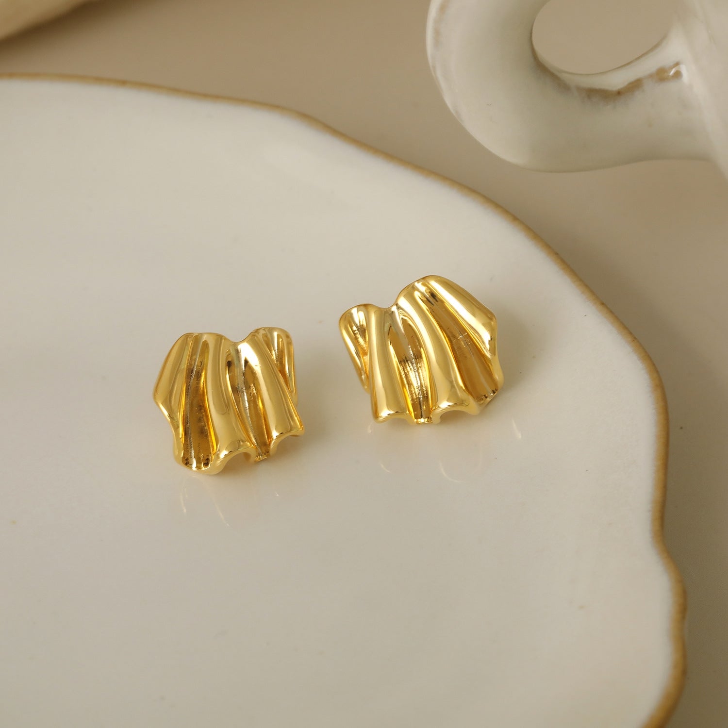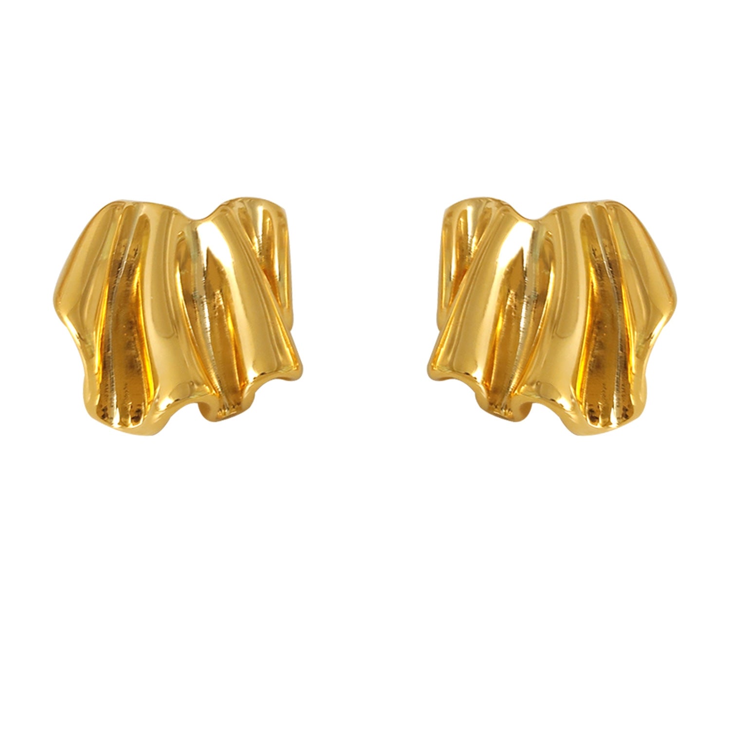 1 Pair 18K Gold Plated Frill Design Copper Ear Studs