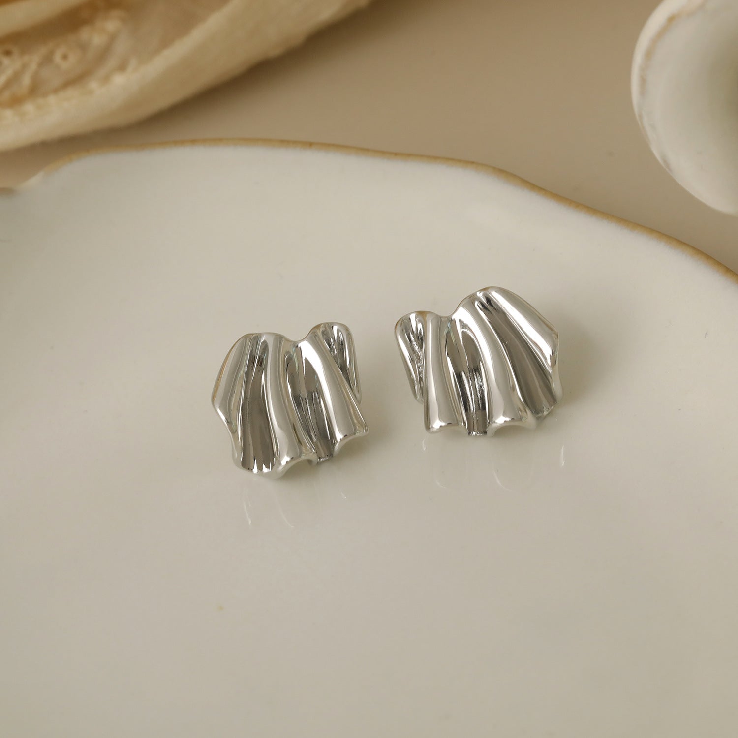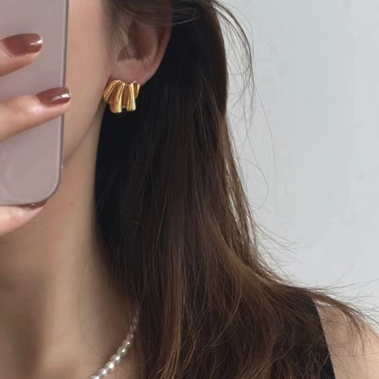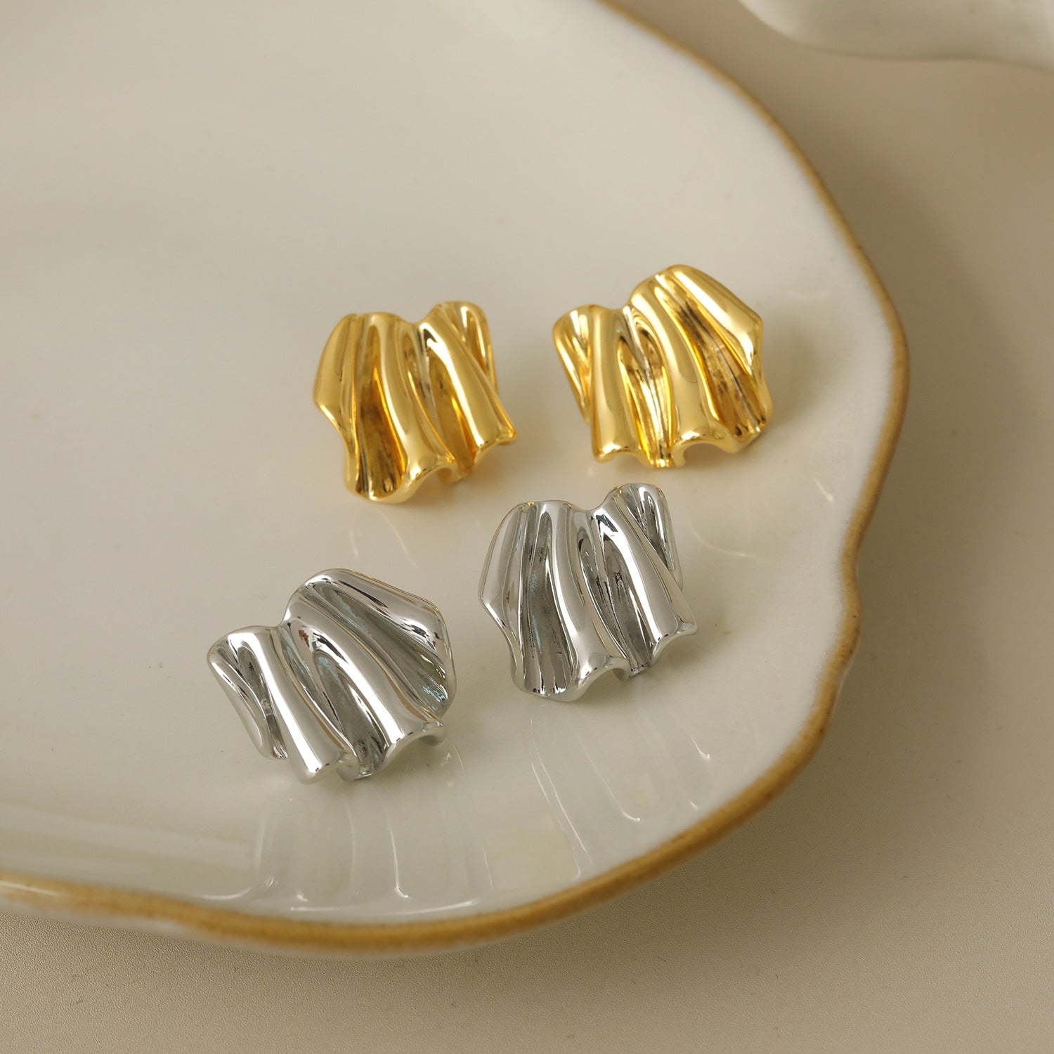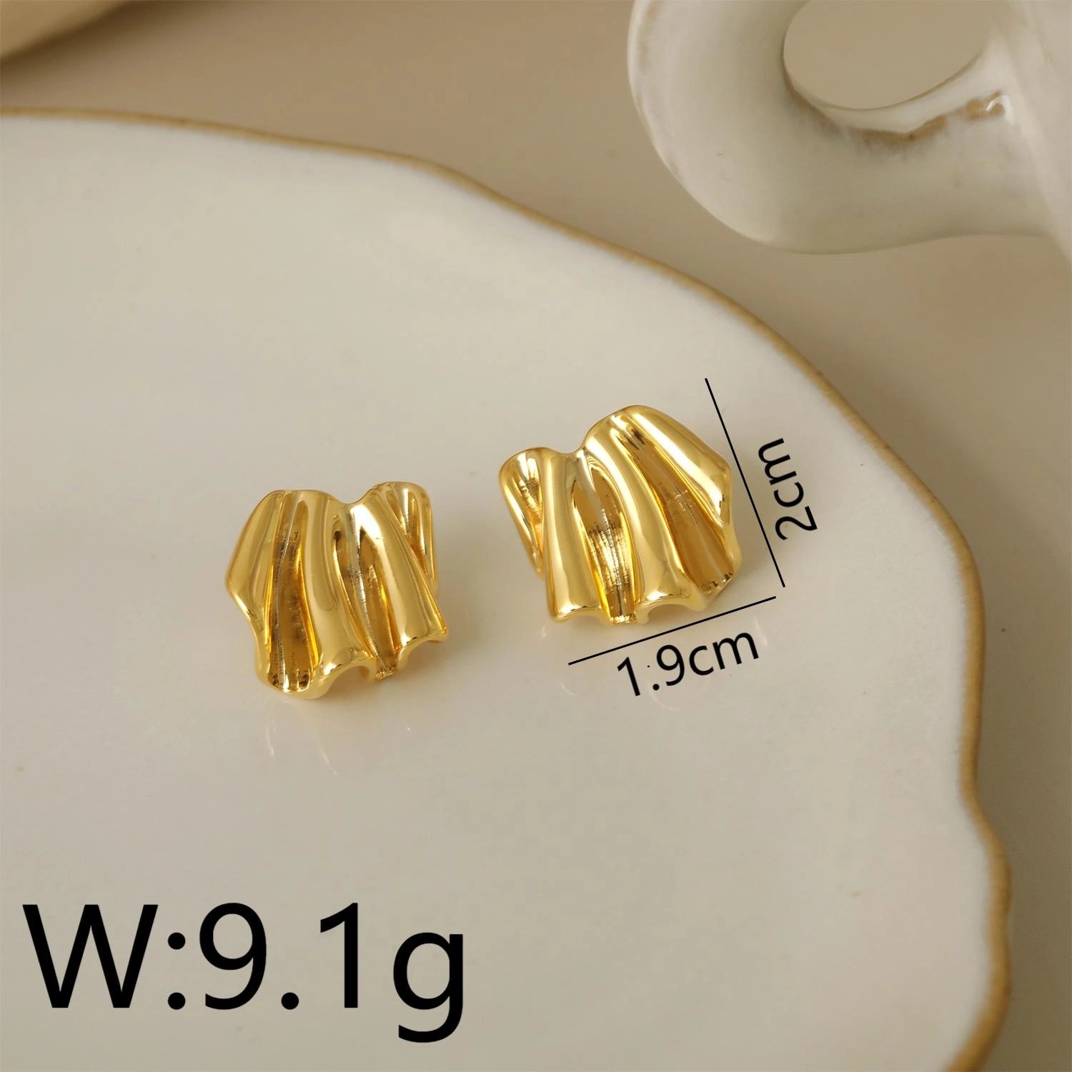 1 Pair 18K Gold Plated Frill Design Copper Ear Studs