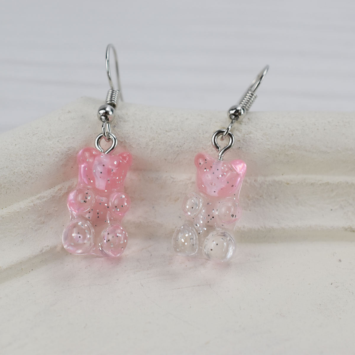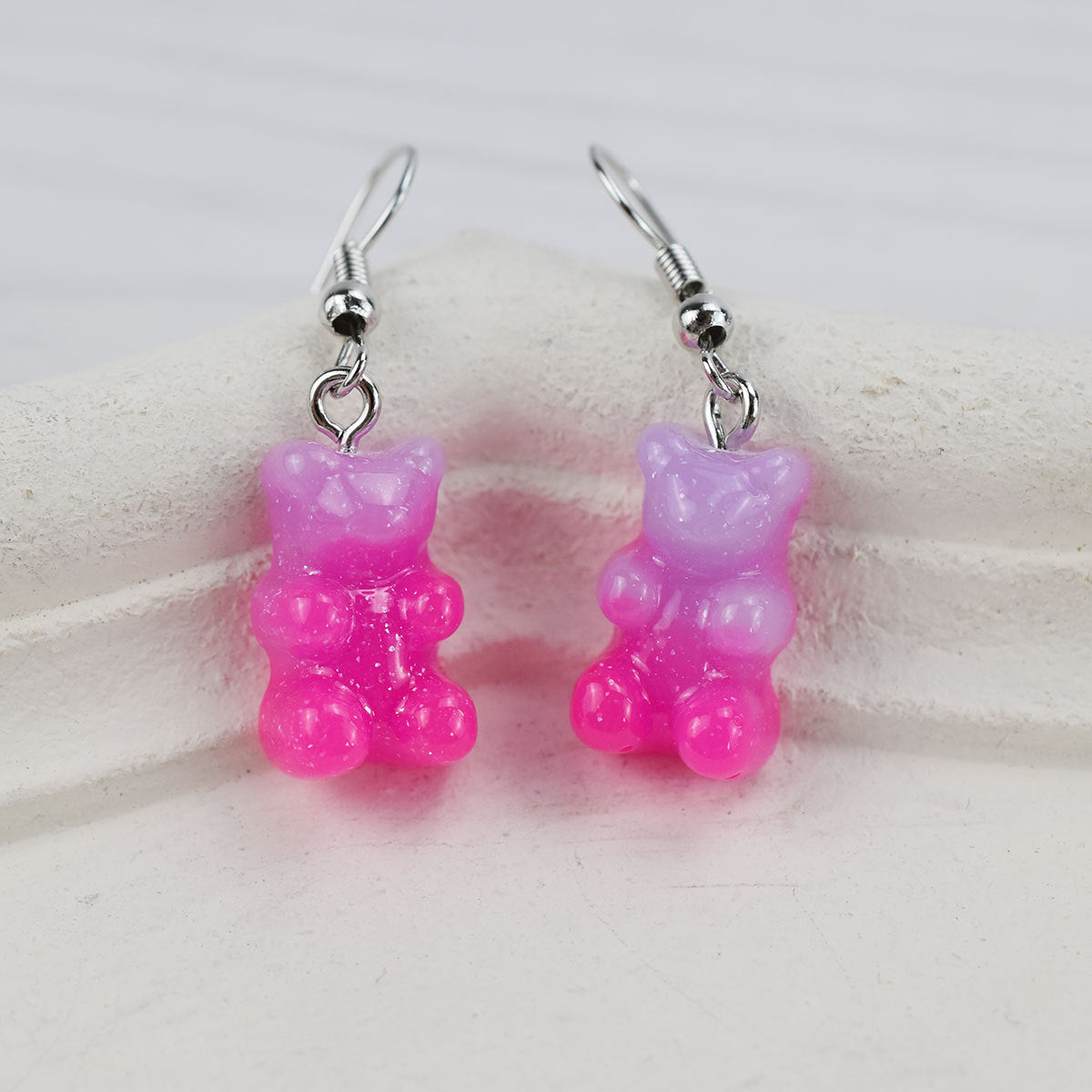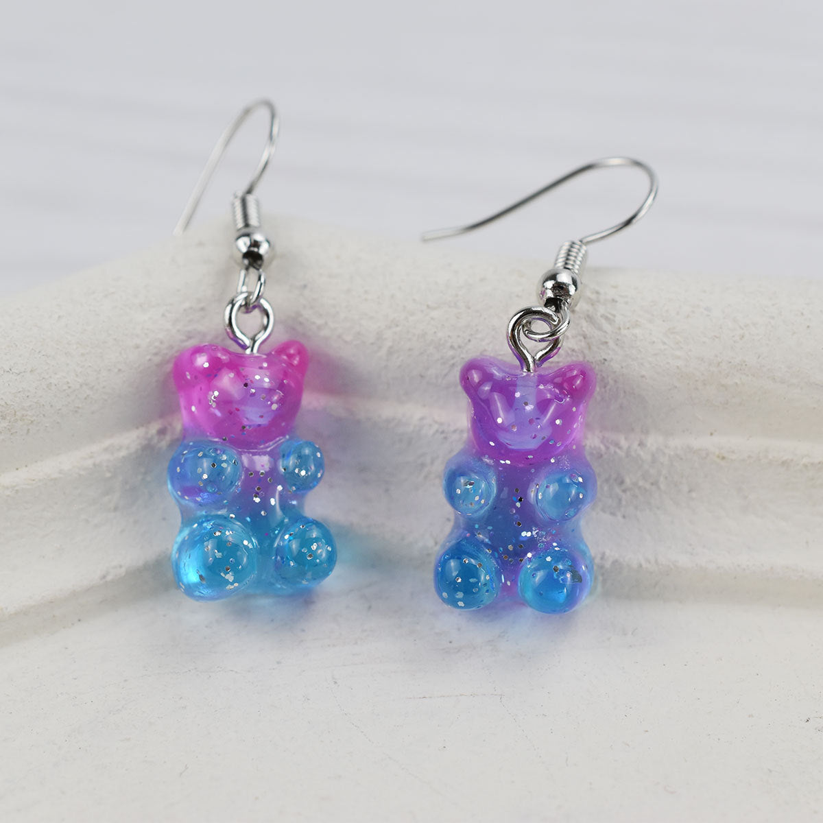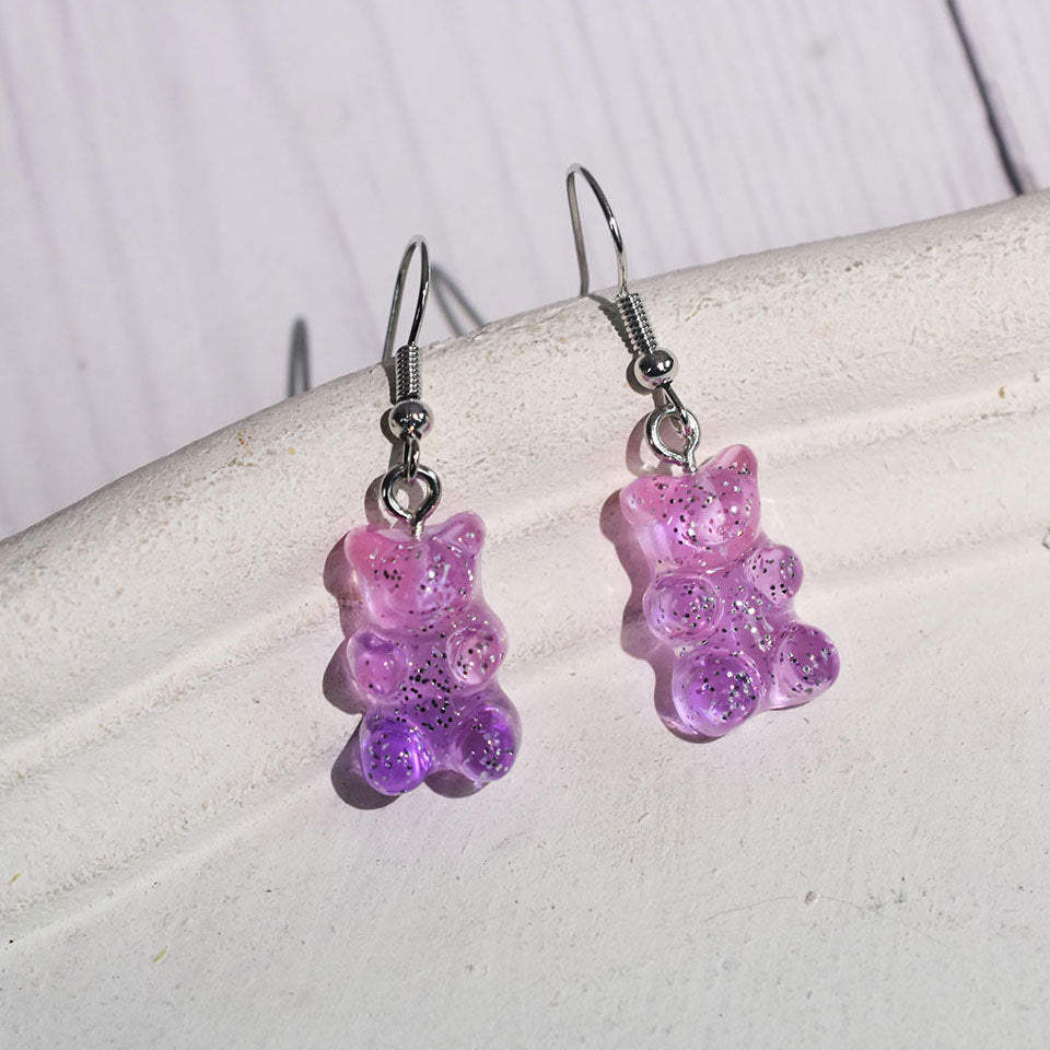 Cartoon Bear Resin Women's Earrings - Colorful Transparent Purple Hook Design