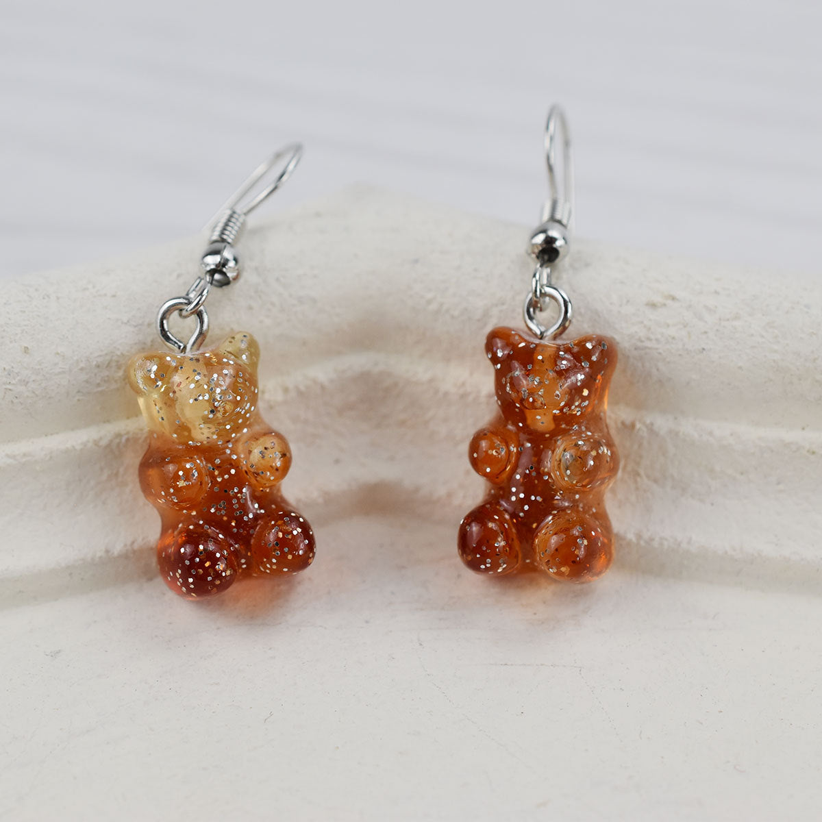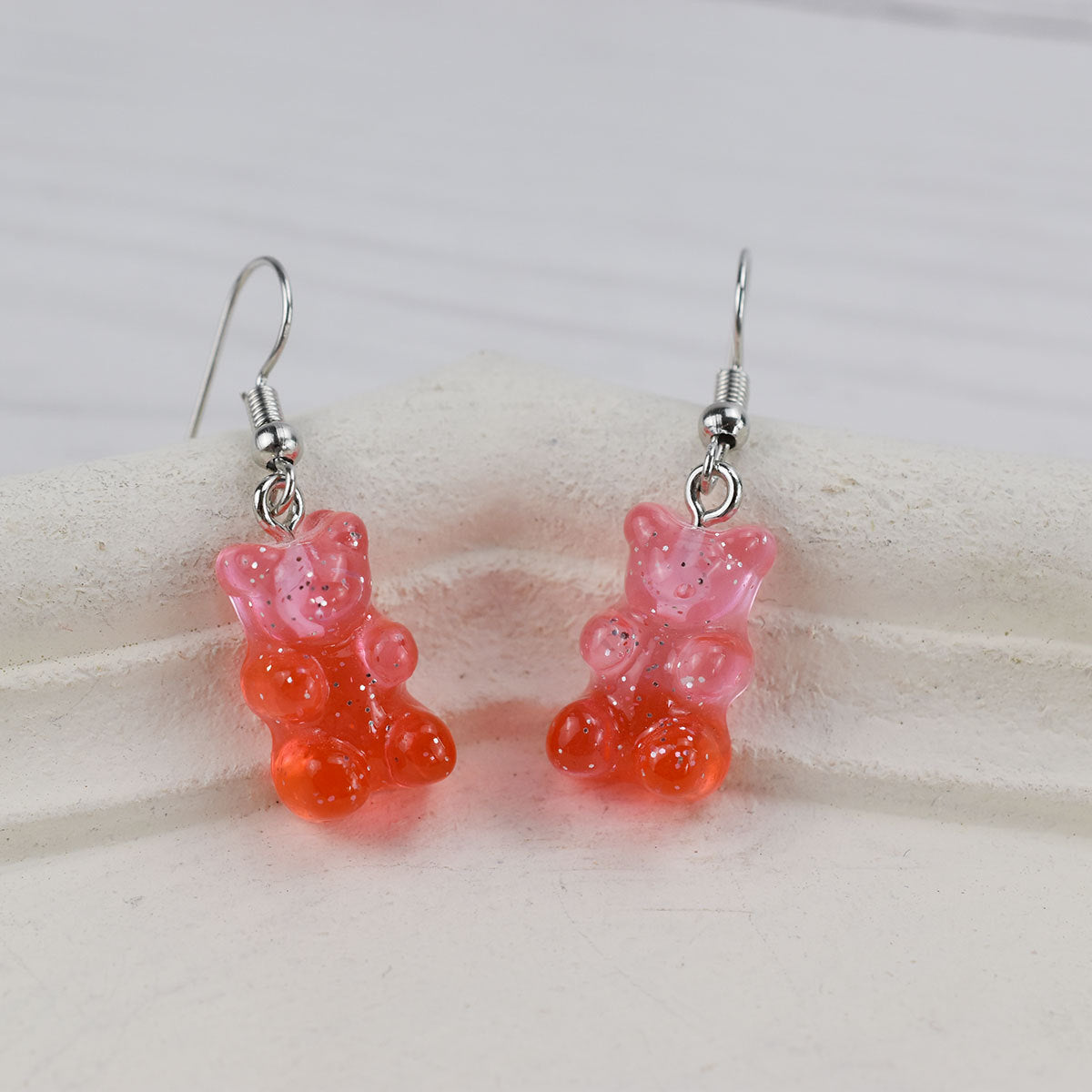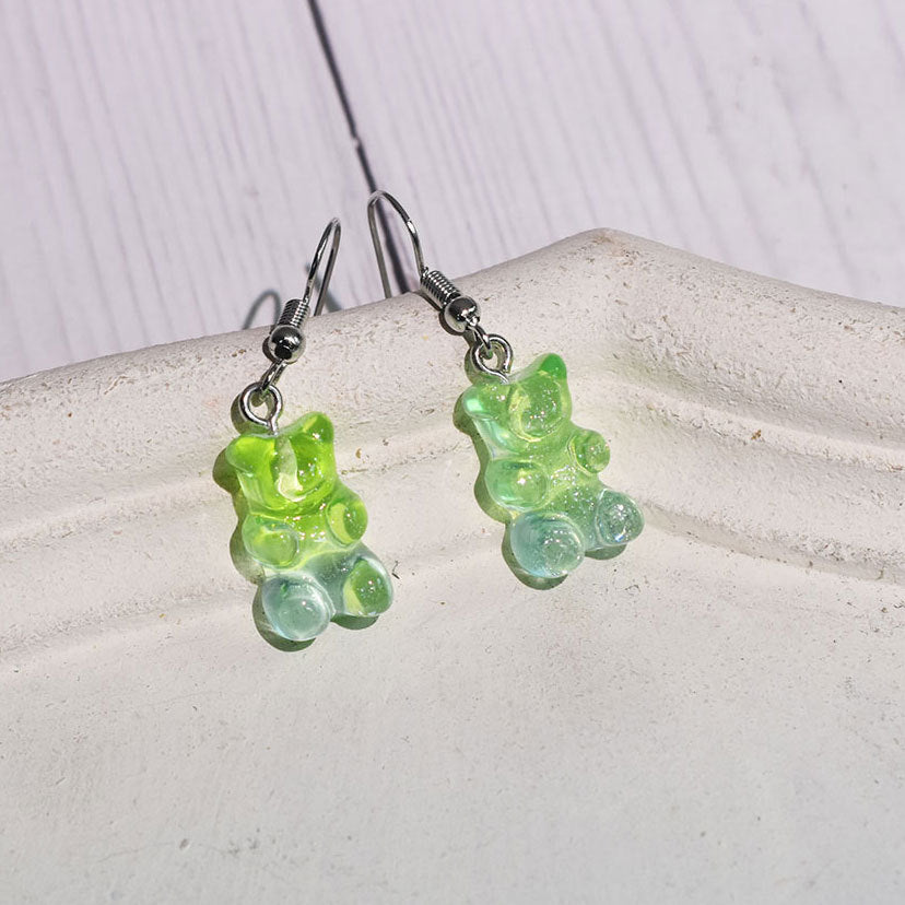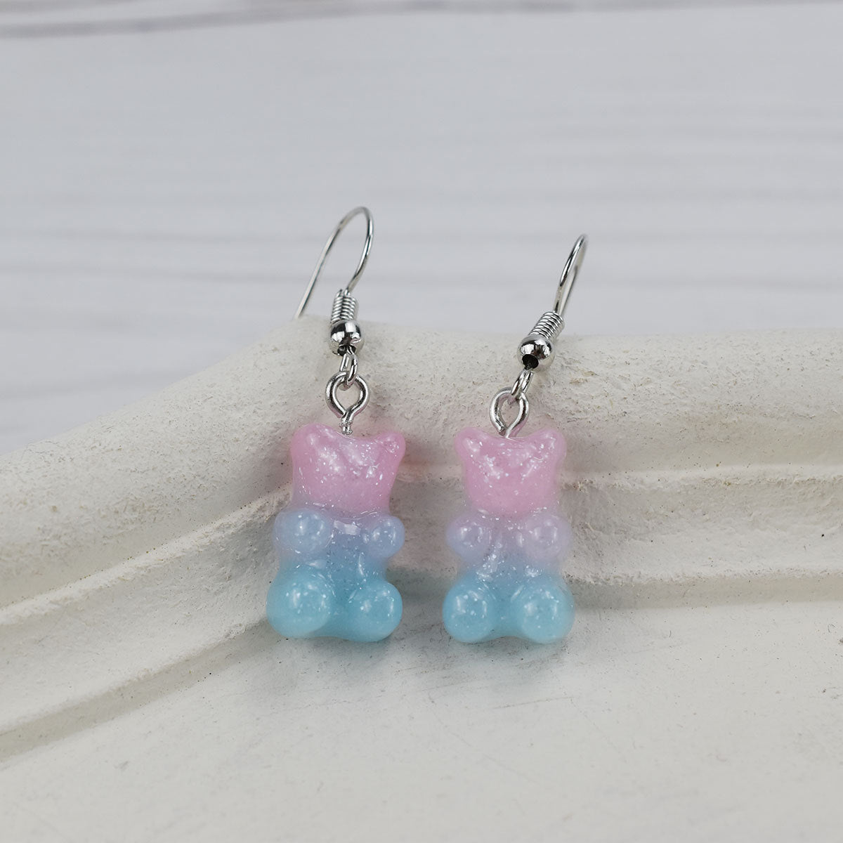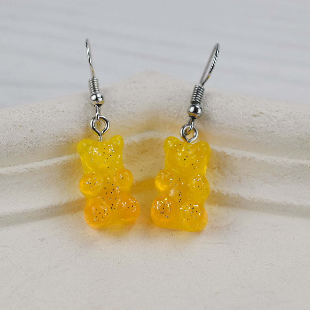Cartoon Bear Resin Women's Earrings - Colorful Transparent Purple Hook Design