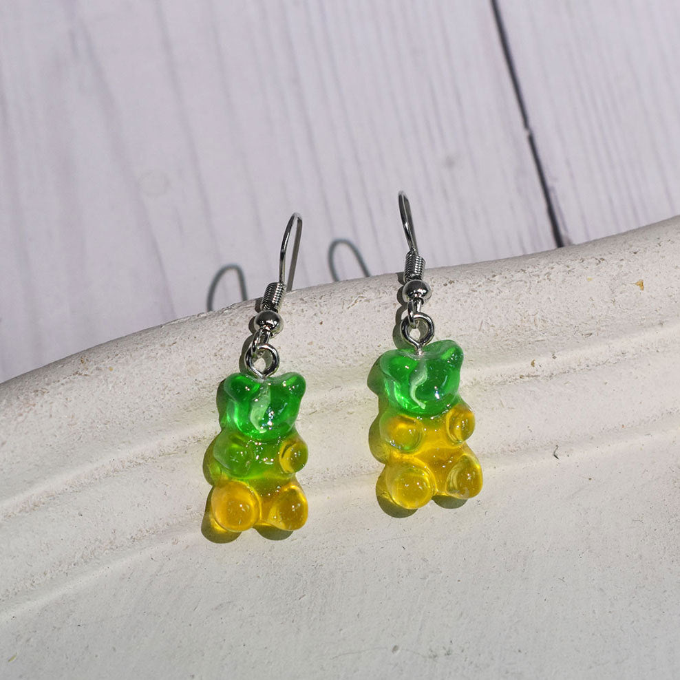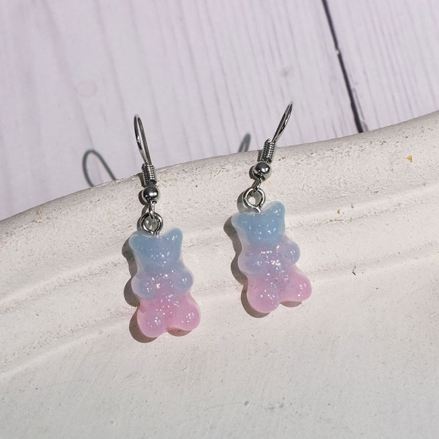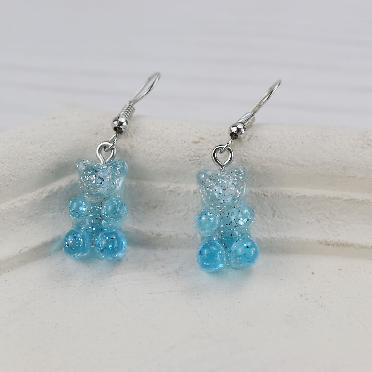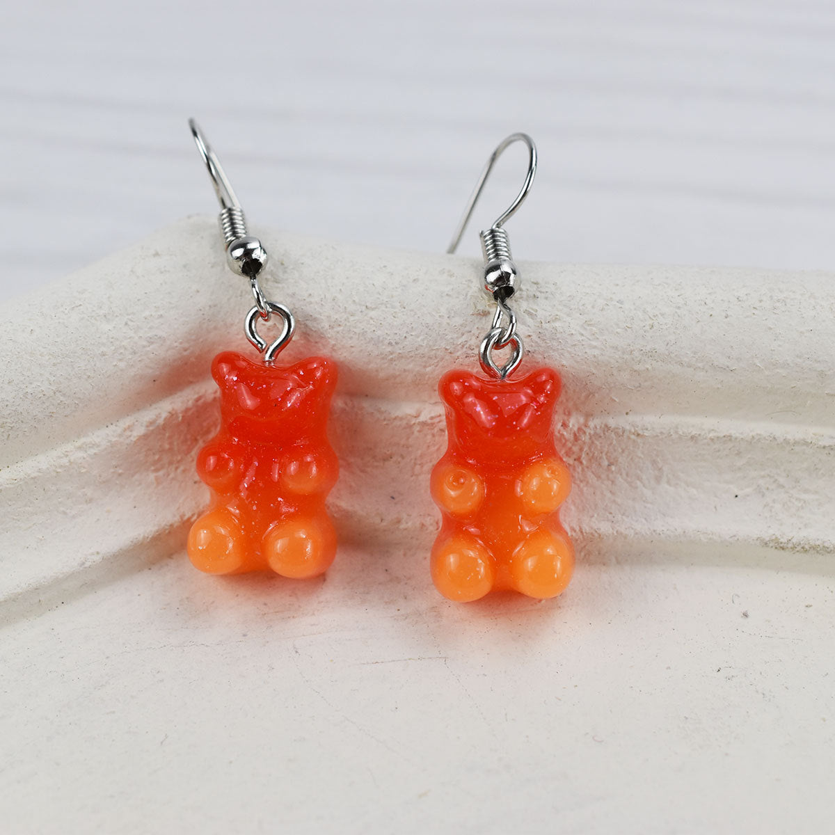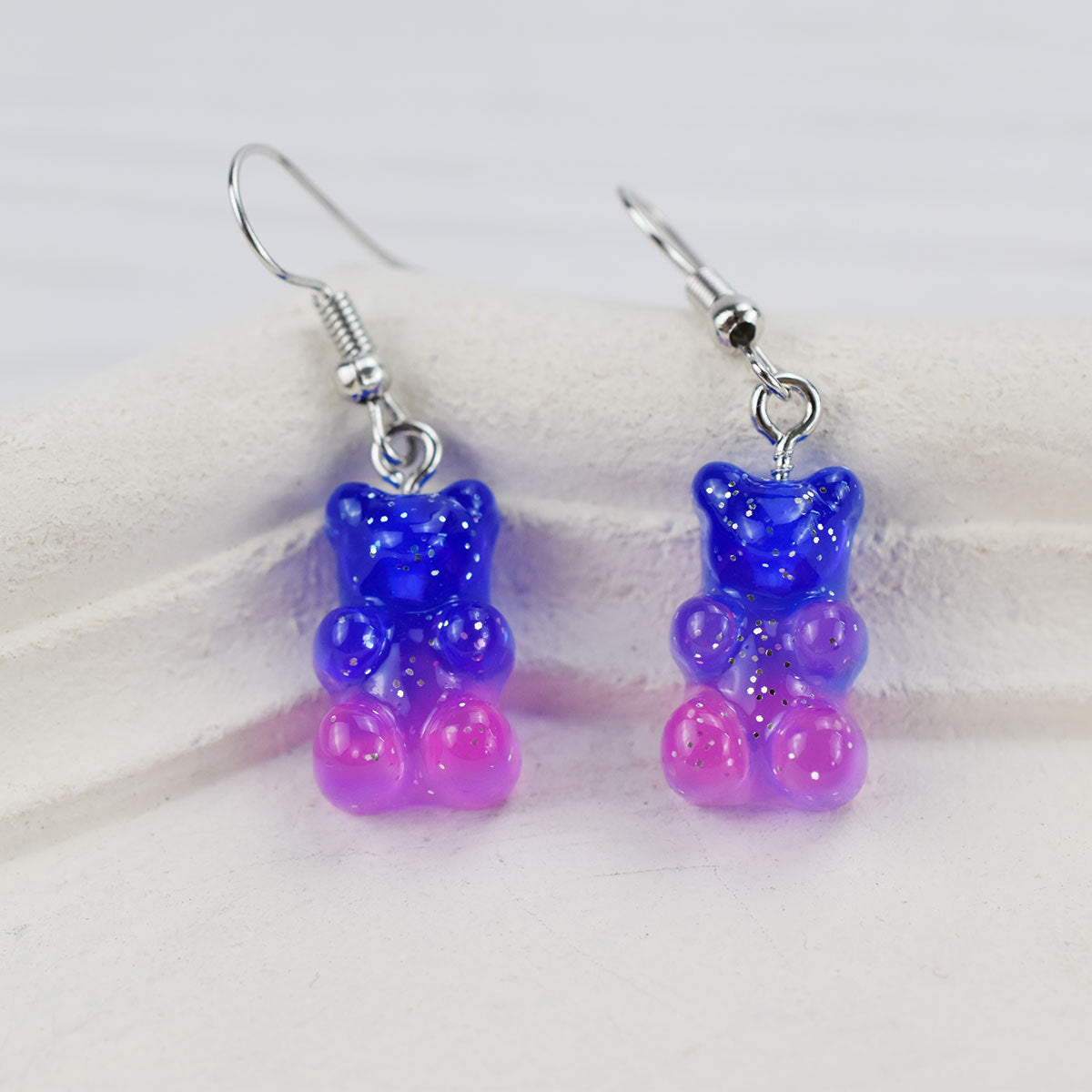 Cartoon Bear Resin Women's Earrings - Colorful Transparent Purple Hook Design