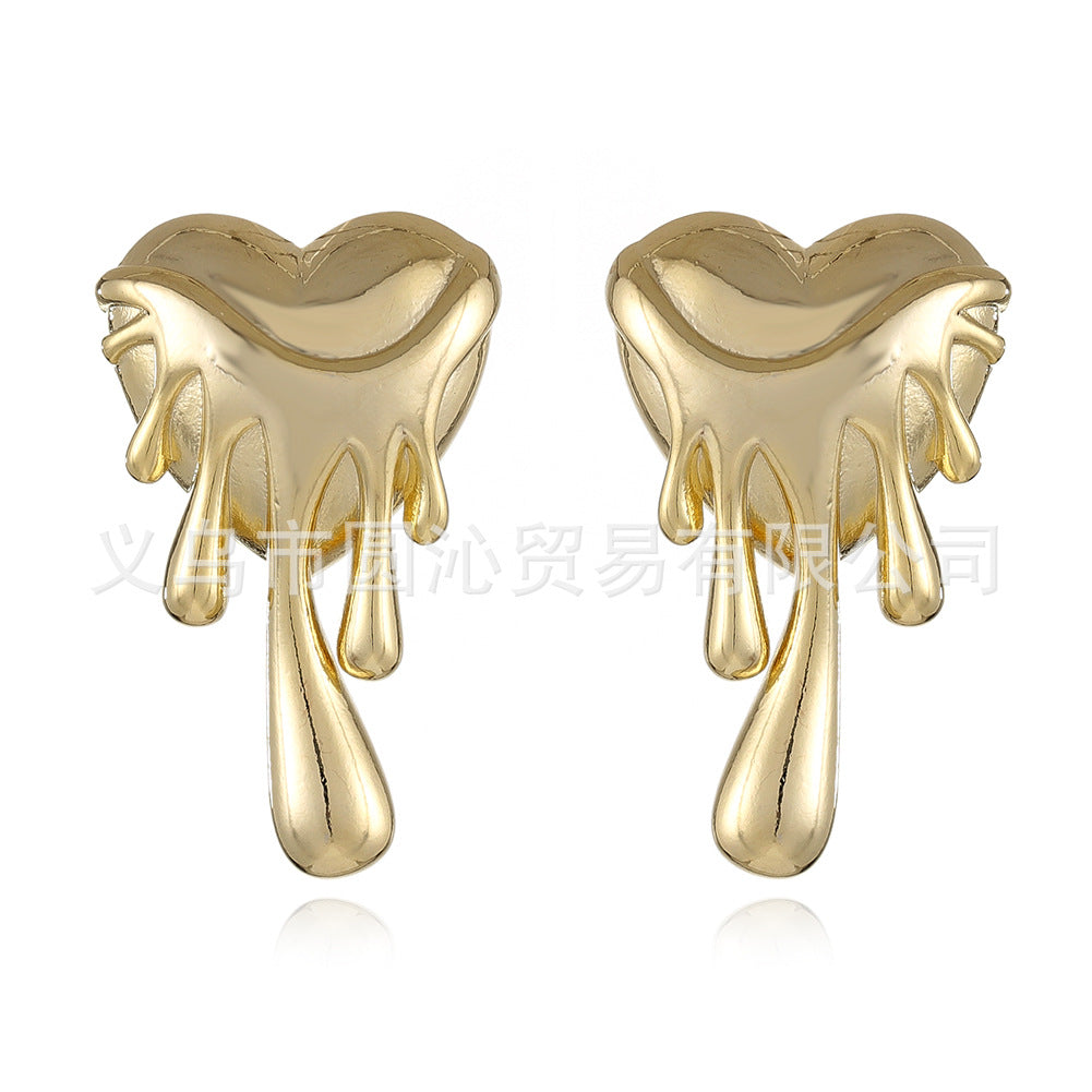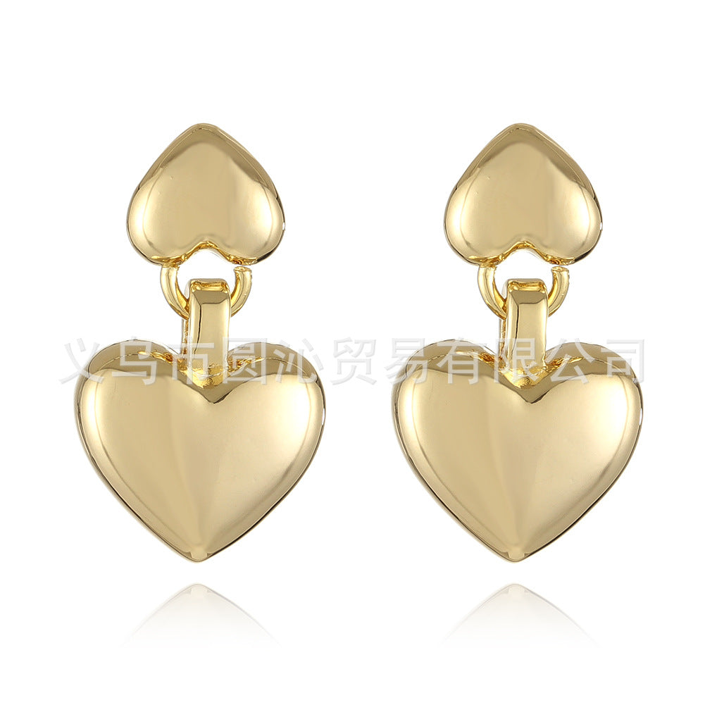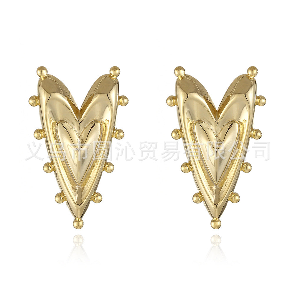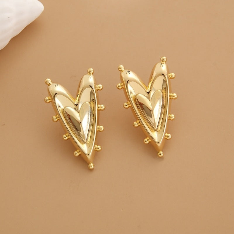 1 Pair Minimalist Heart Shape 24K Gold Plated Copper Stud Earrings