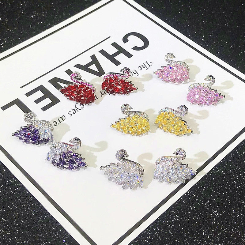 1 Pair Elegant Swan Gradient Zircon White Gold Plated Stud Earrings