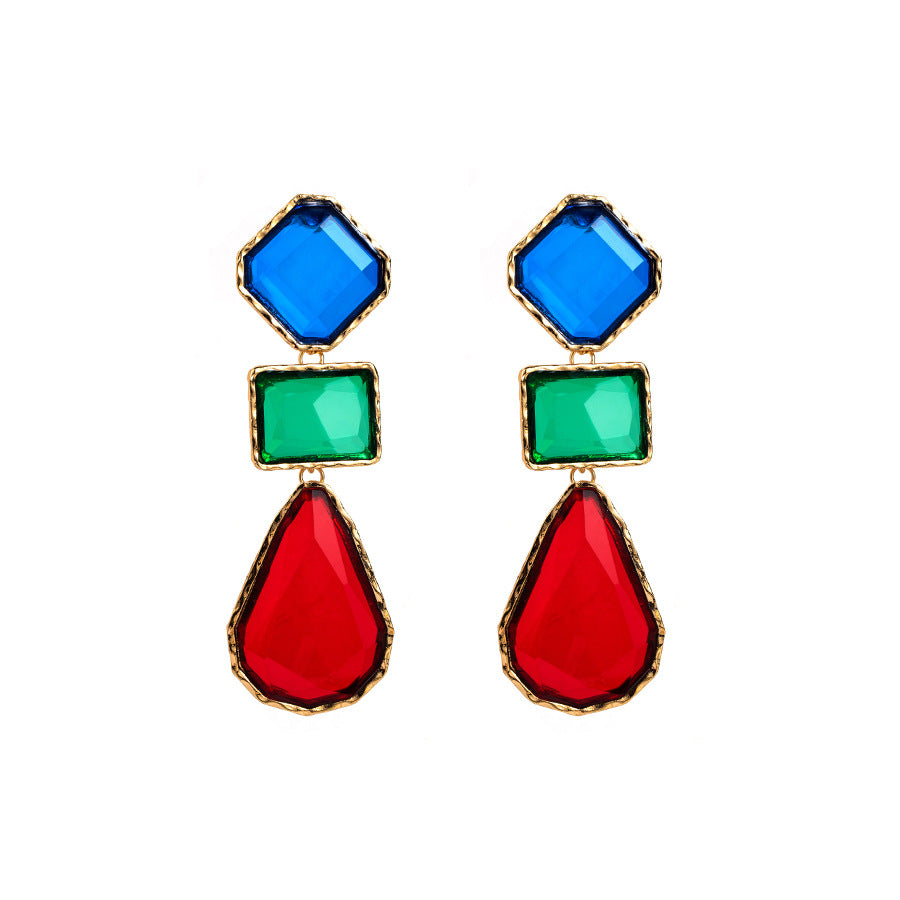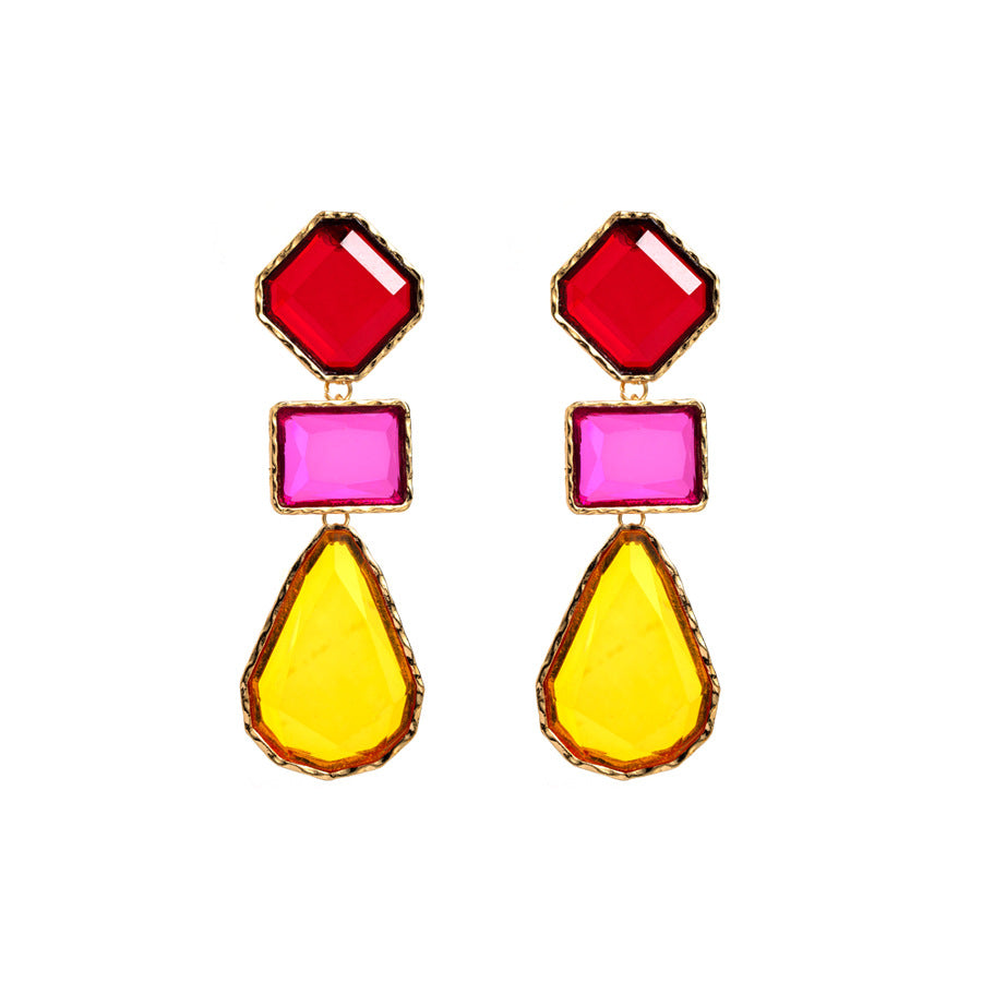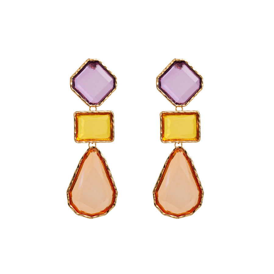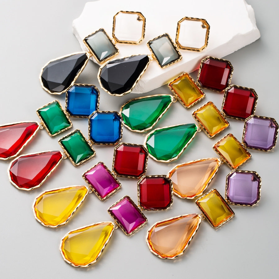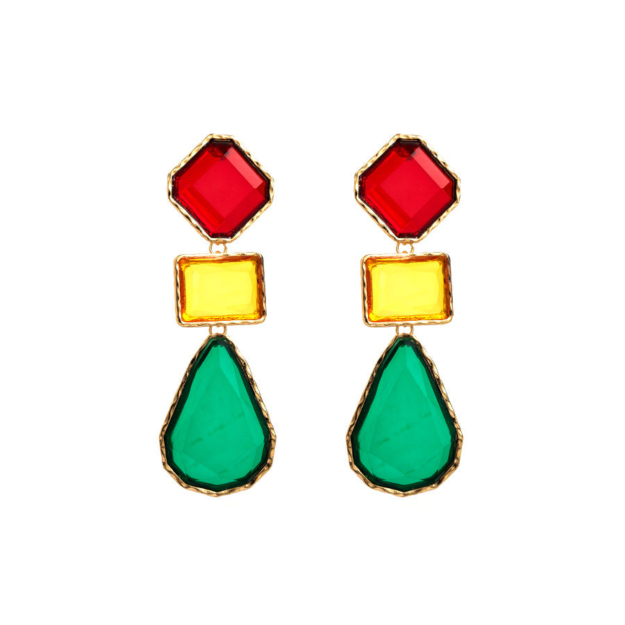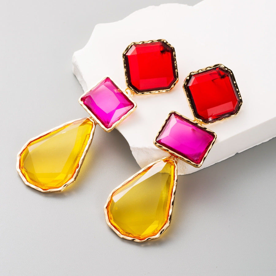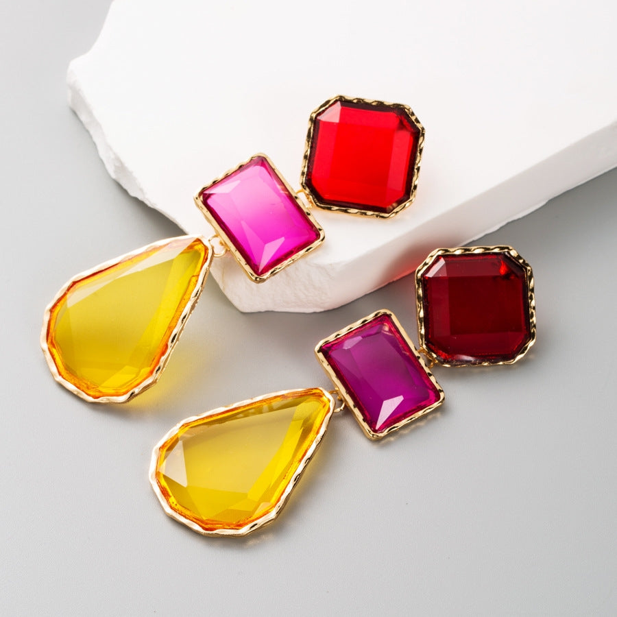 1 Pair Bohemian Geometric Alloy Resin Gemstone Drop Earrings