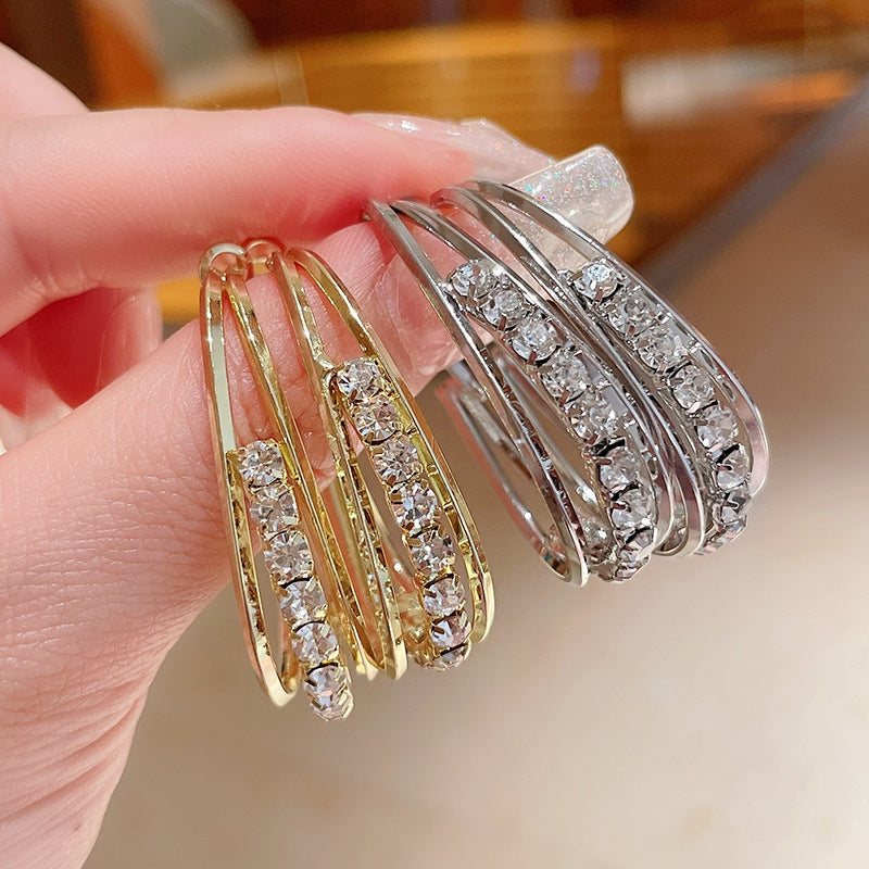 Elegant Geometric Copper Hoop Earrings with Rhinestone Accents