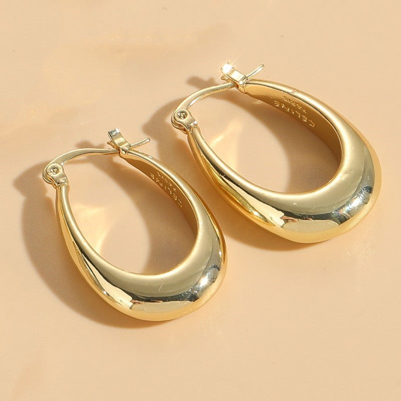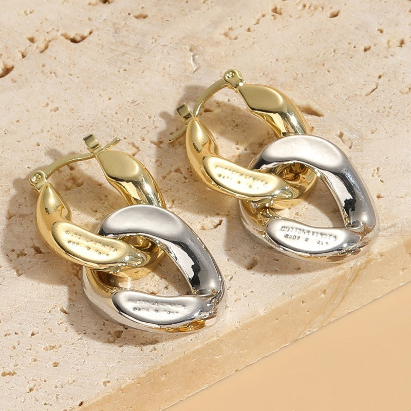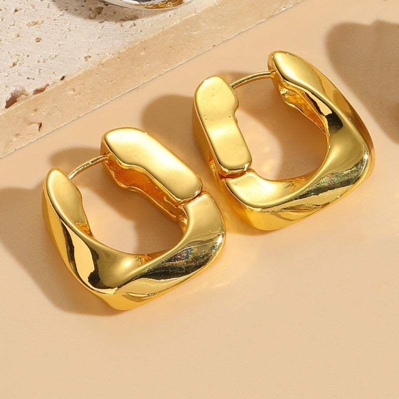 Elegant 14k Gold Plated Asymmetrical Double Ring Hoop Earrings