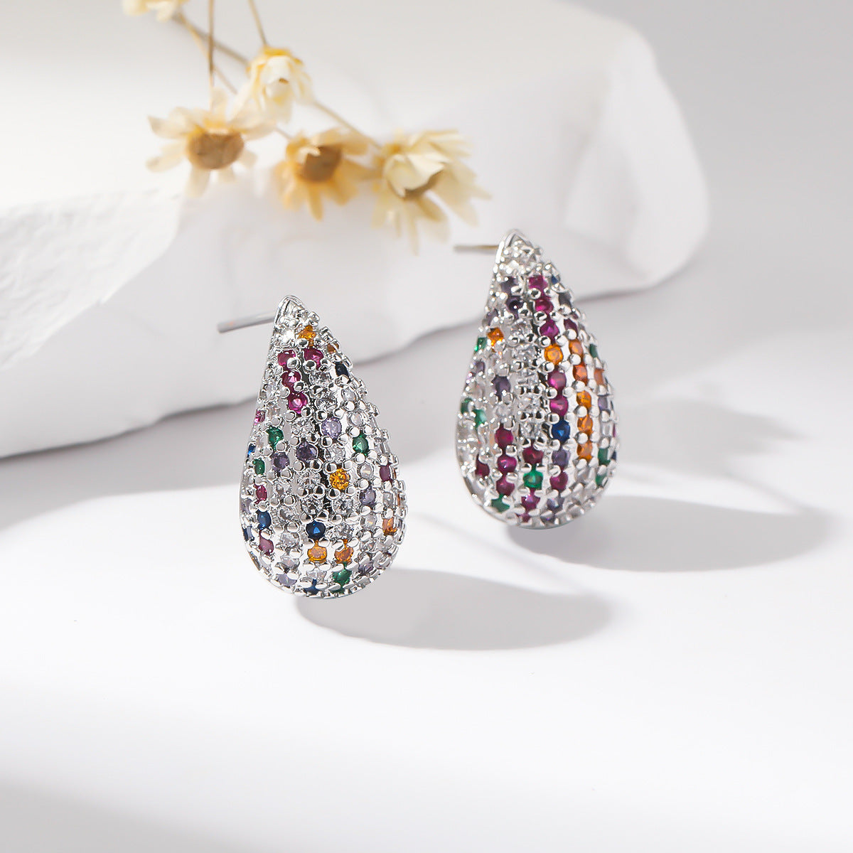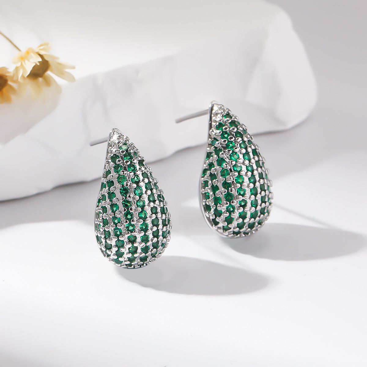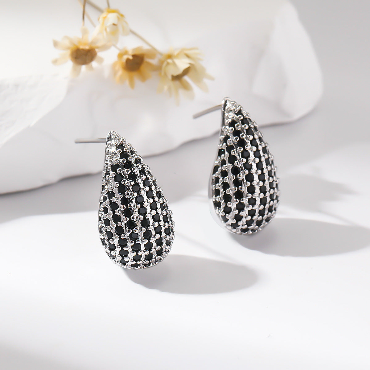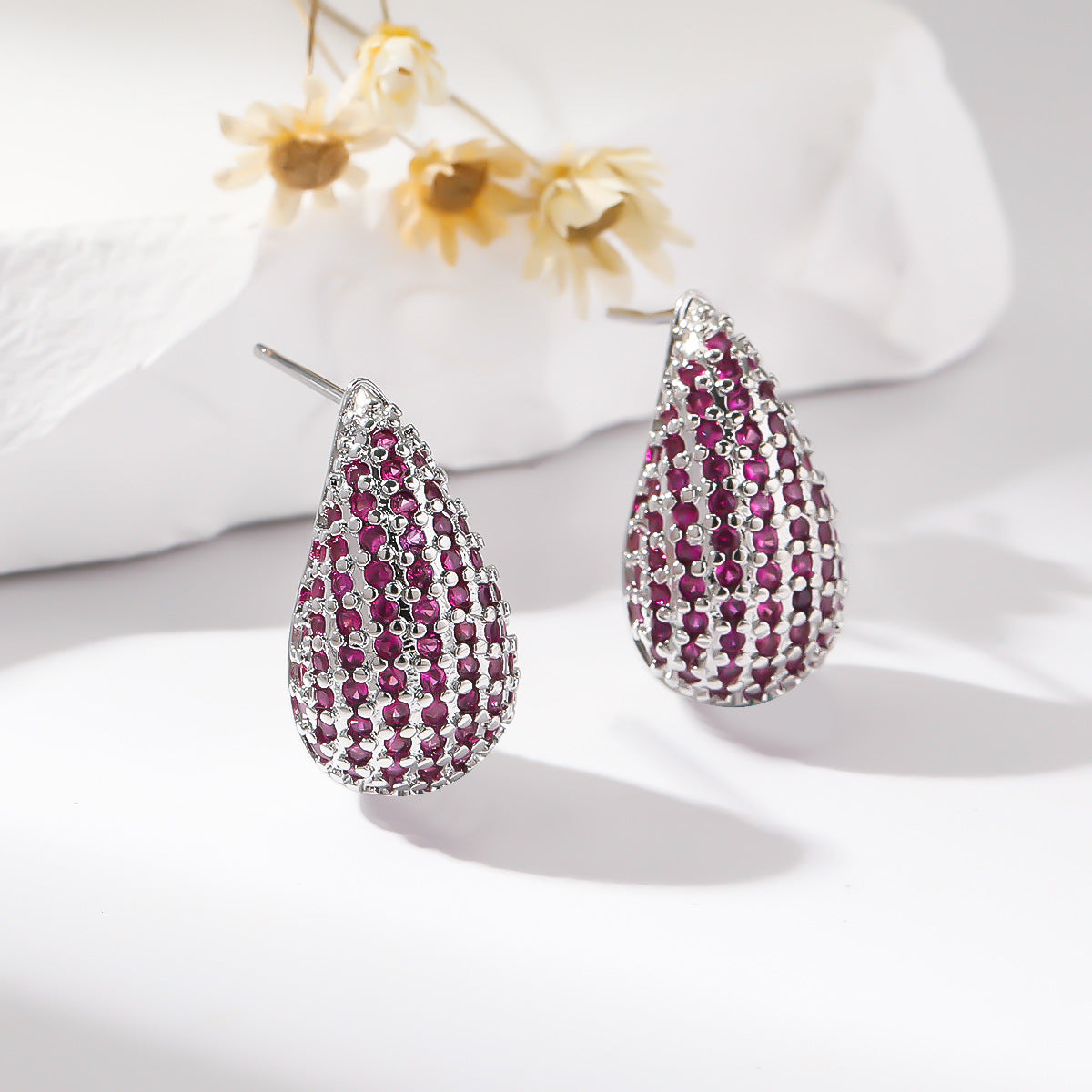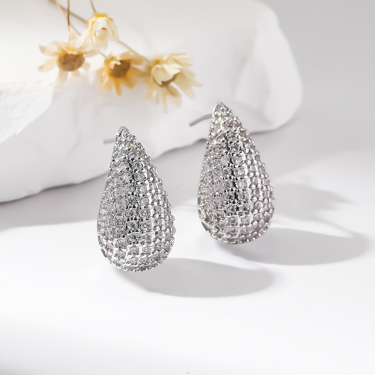 Elegant Oval Zircon Water Drop Copper Stud Earrings