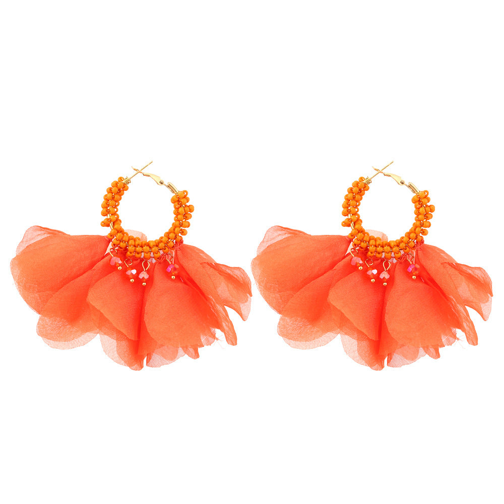Ethnic Bohemian Purple Chiffon Flower Beaded Hoop Earrings for Women