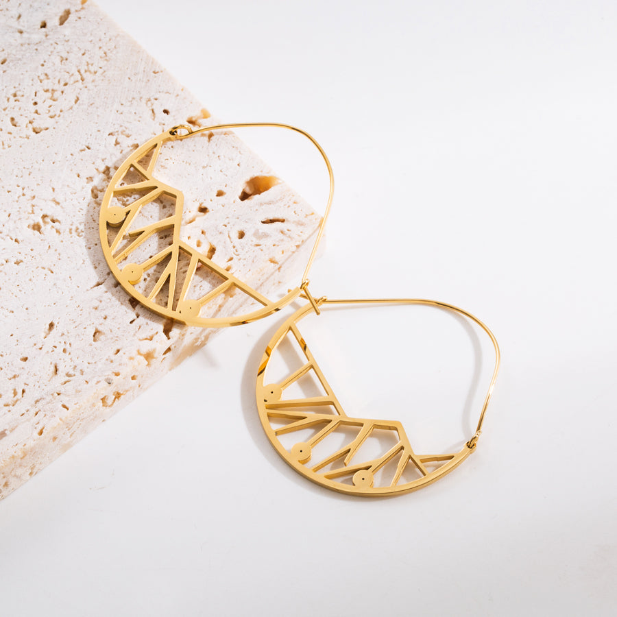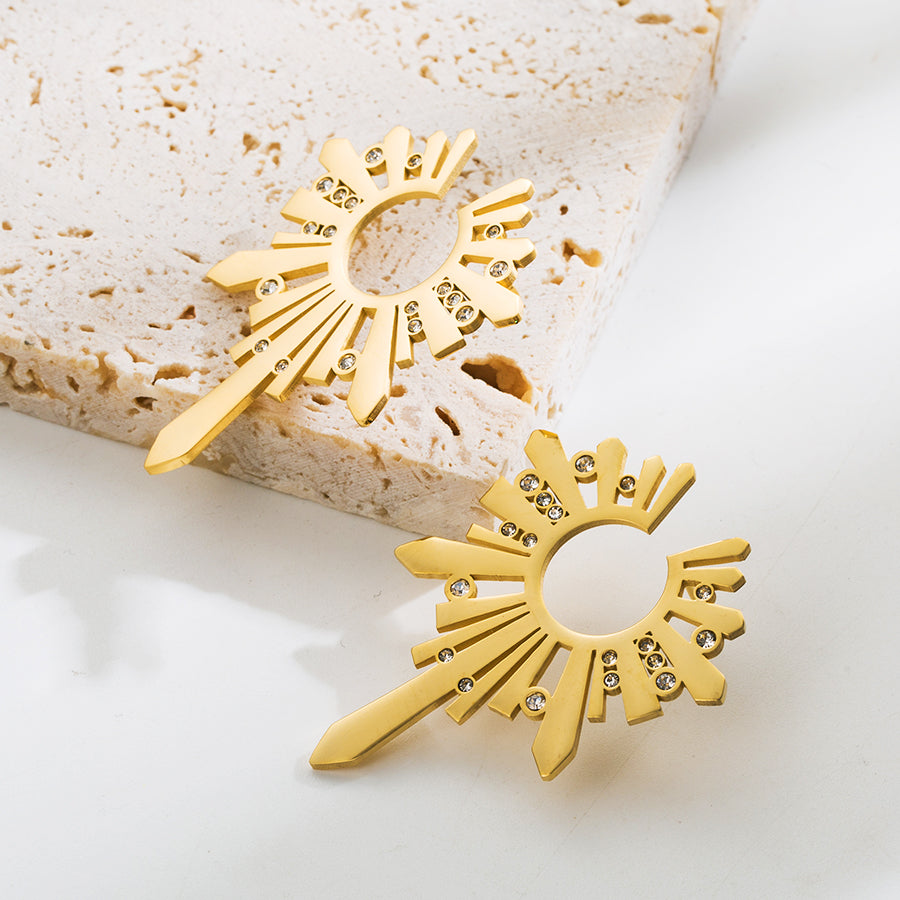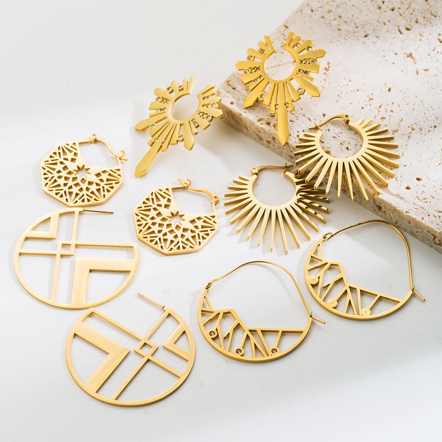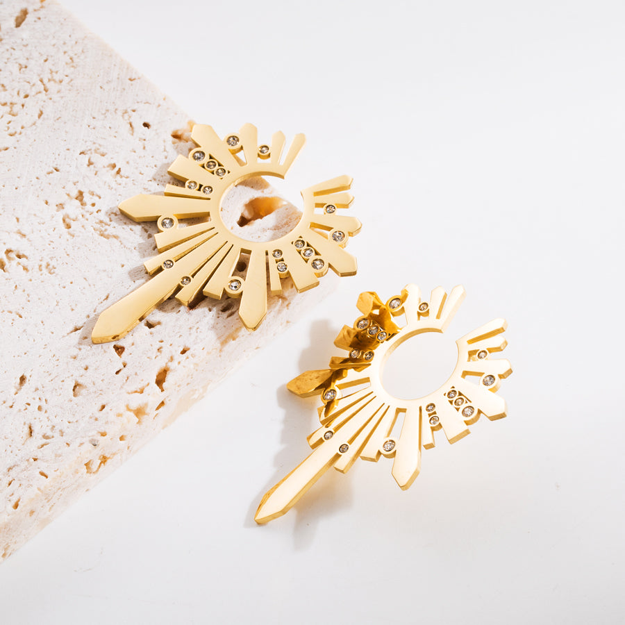 Exaggerated Punk Style Stainless Steel Grid Earrings with Artificial Diamonds