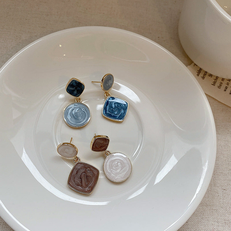 1 Pair Asymmetrical Enamel Plated Alloy Drop Earrings for Women