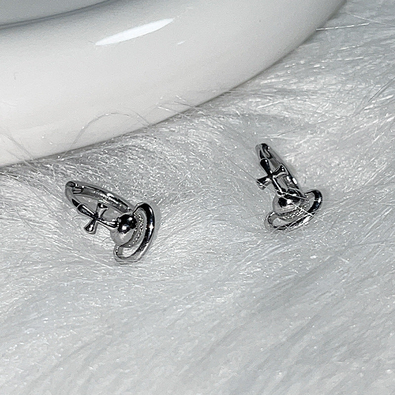 1 Pair Fashion Cross Planet Saturn Copper Plated Hoop Earrings