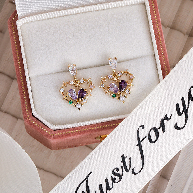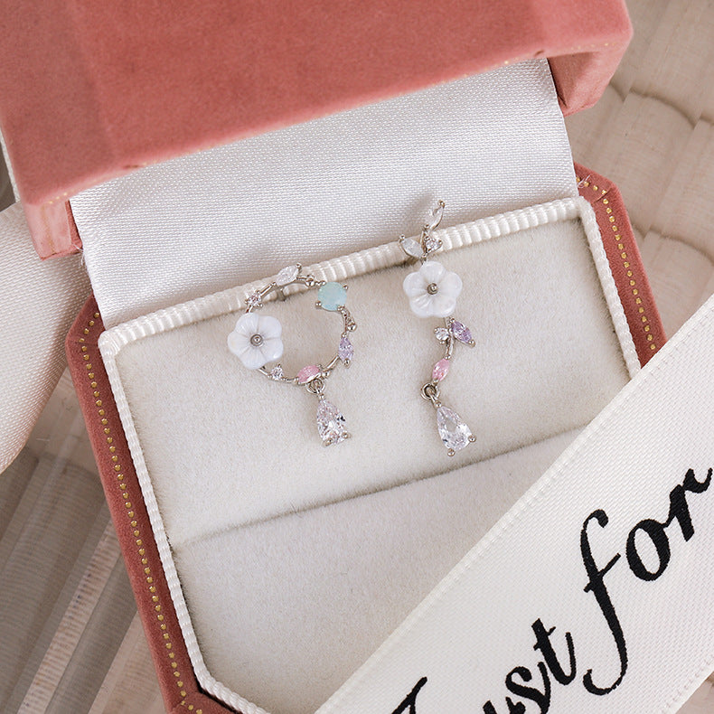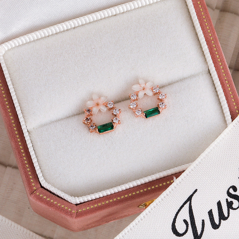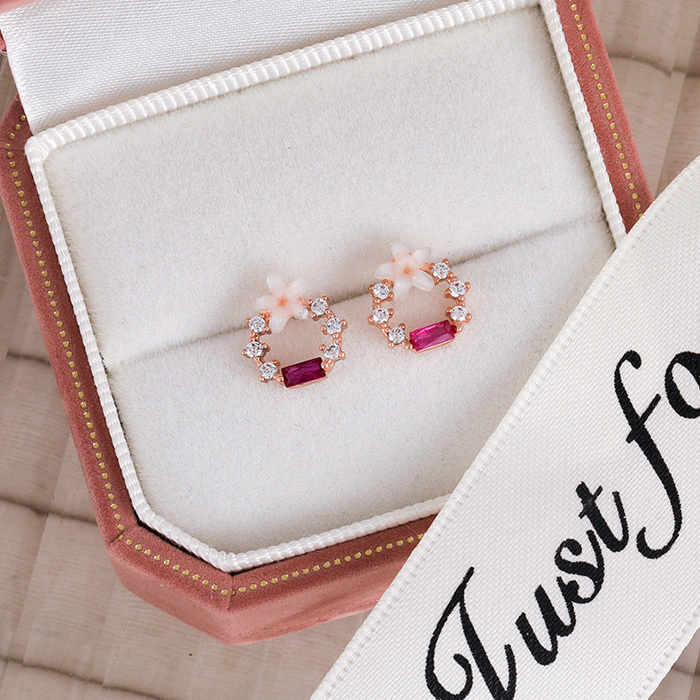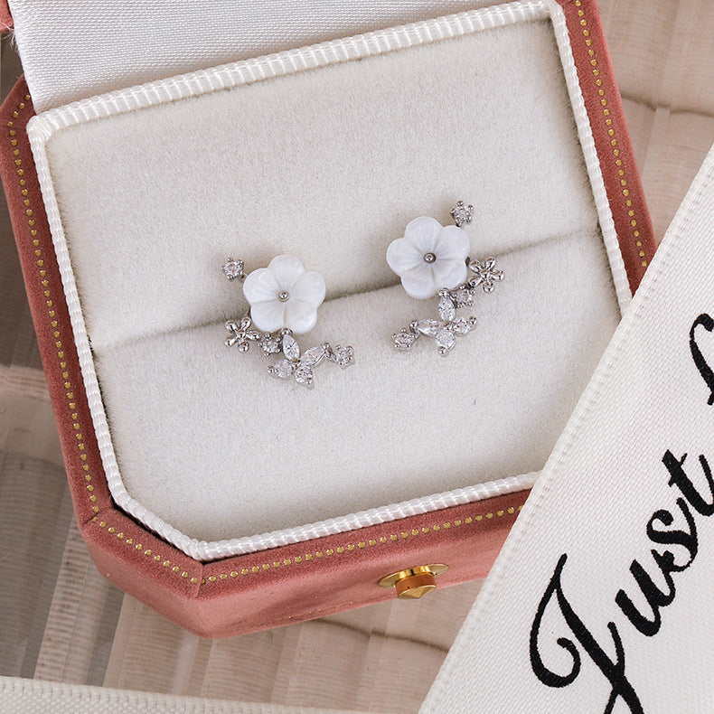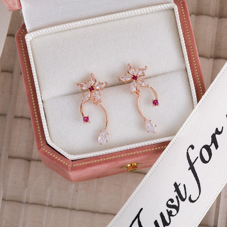 1 Pair Elegant Flower Inlay Copper Zircon Stud Earrings