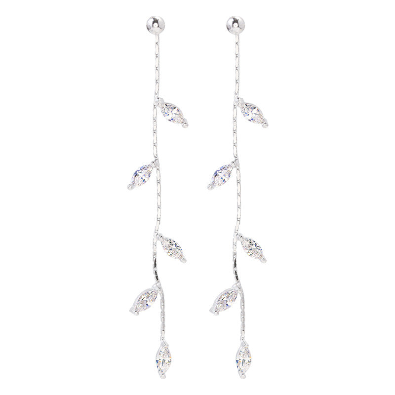 1 Pair Elegant Leaf Sterling Silver Plated Long Tassel Earrings