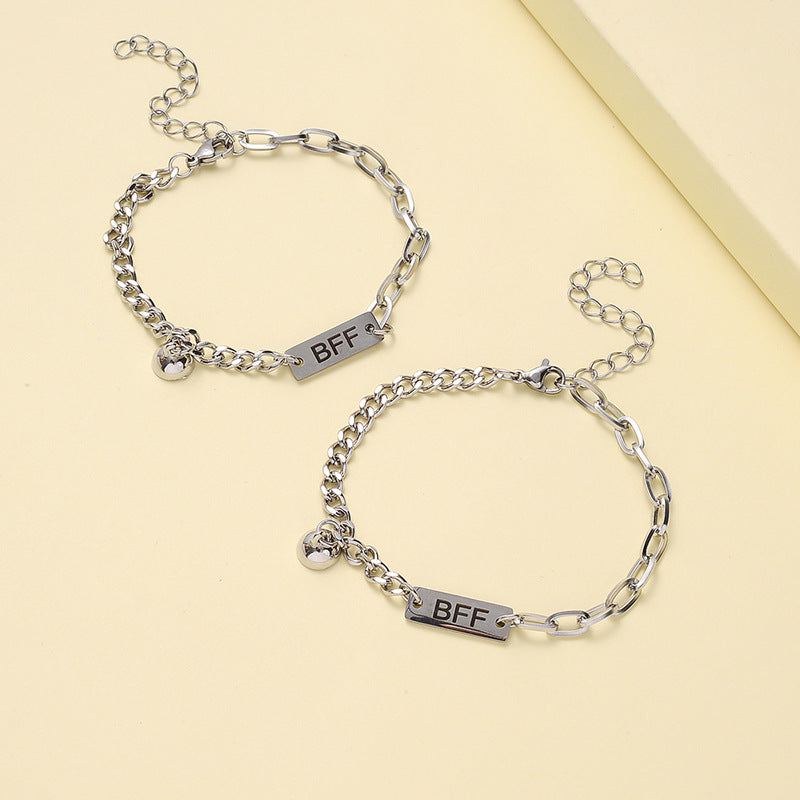 1 Pair Fashion Stainless Steel Cuban Link Magnetic Couple Bracelets Set