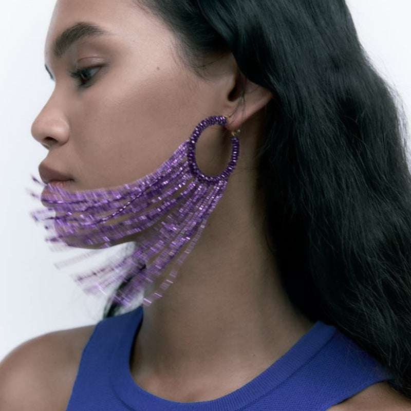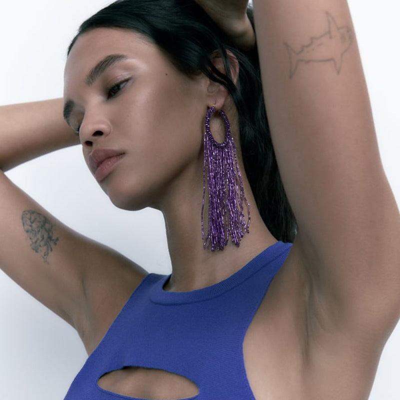 Bohemian Tassel Beaded Resin Drop Earrings