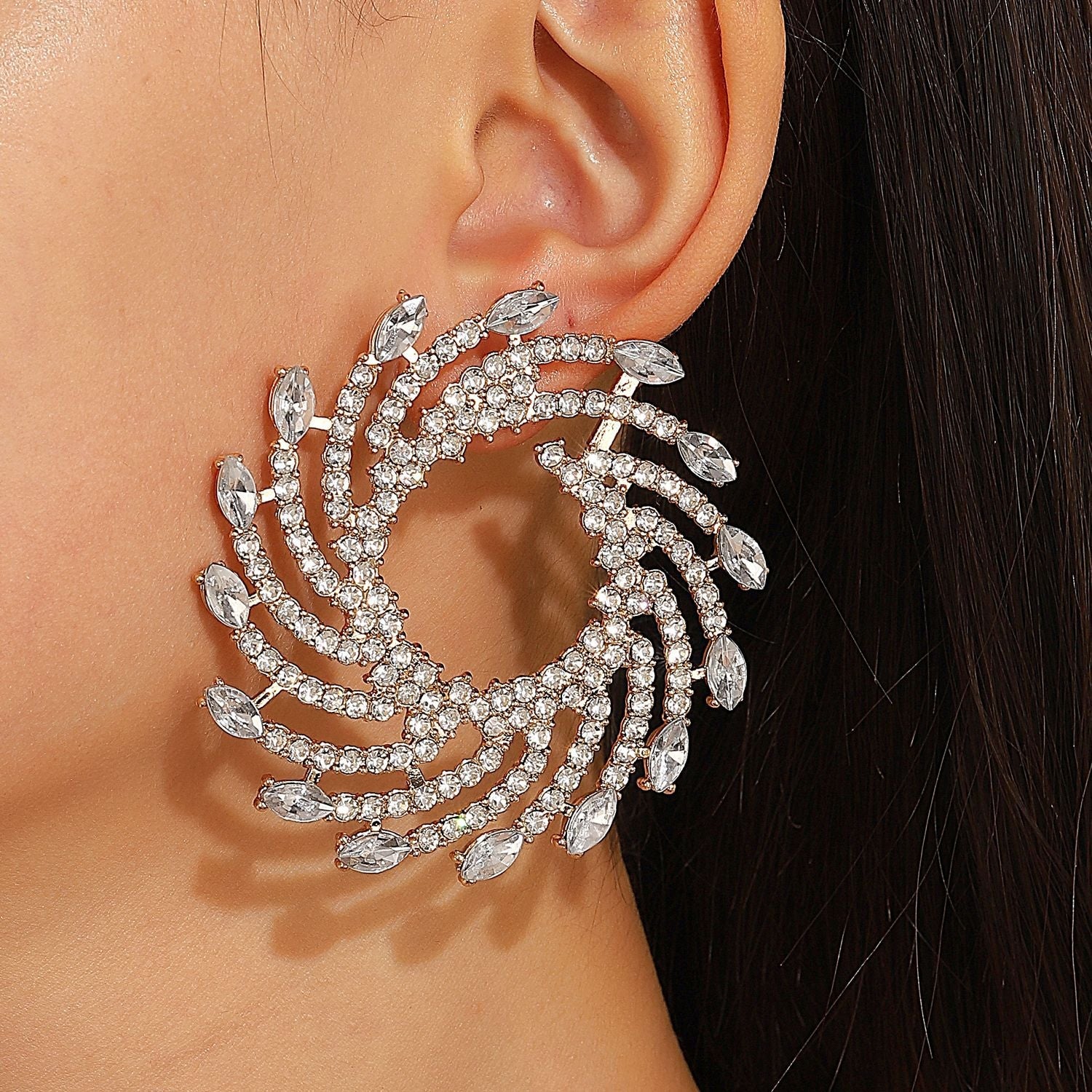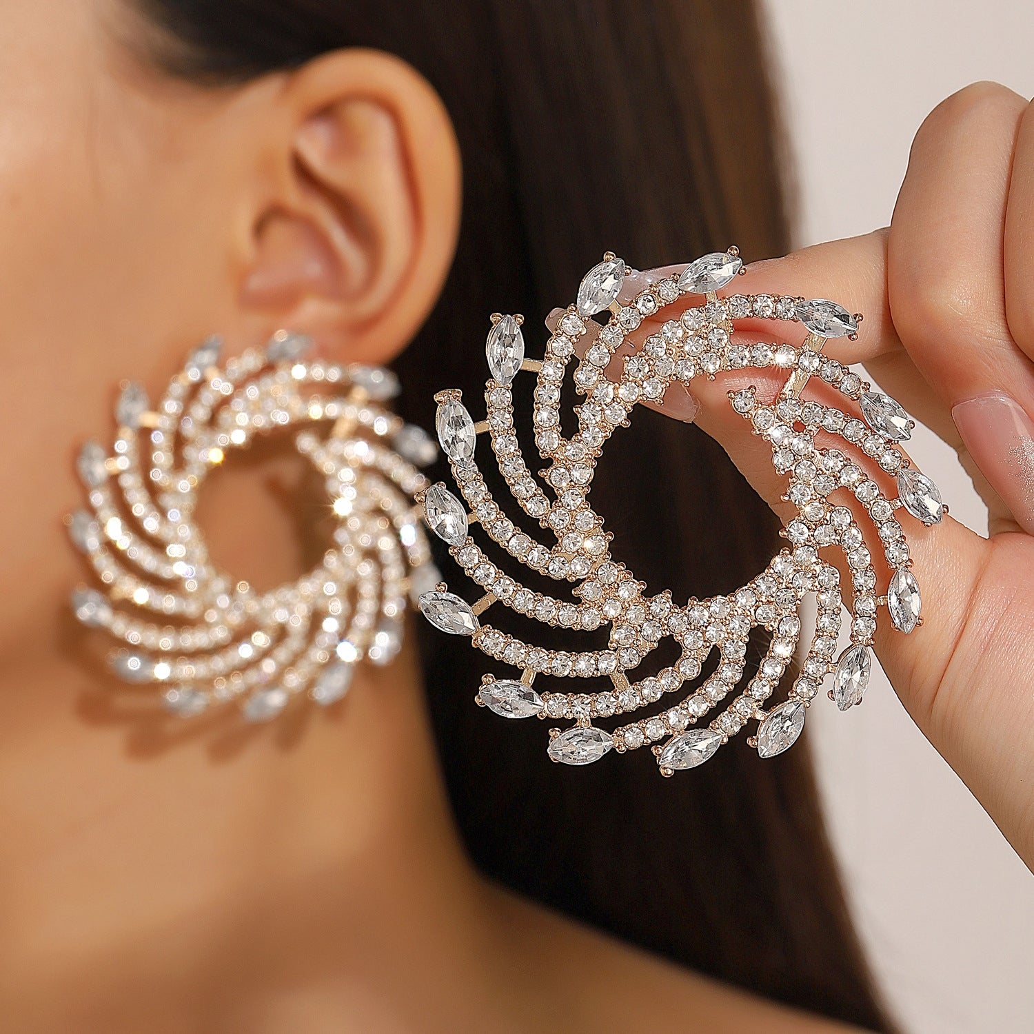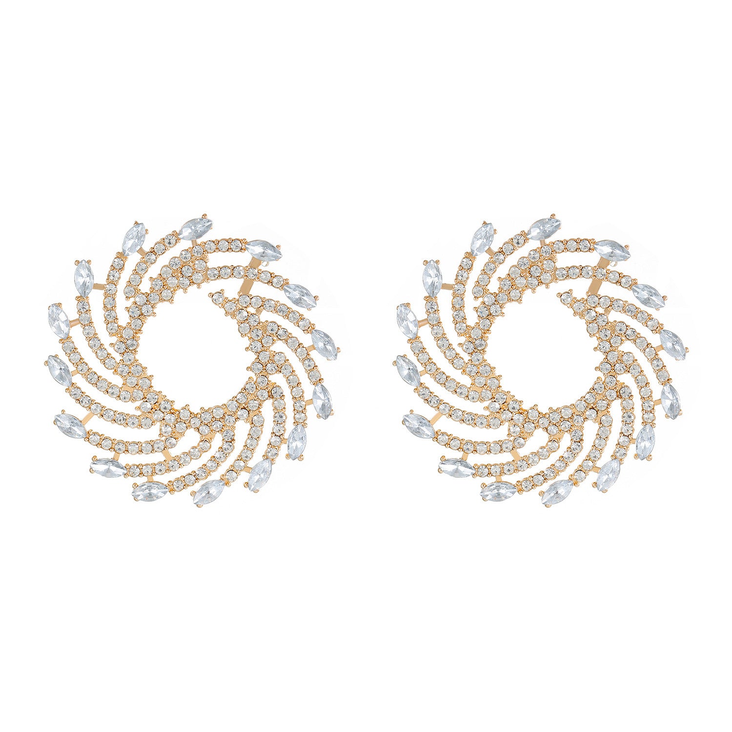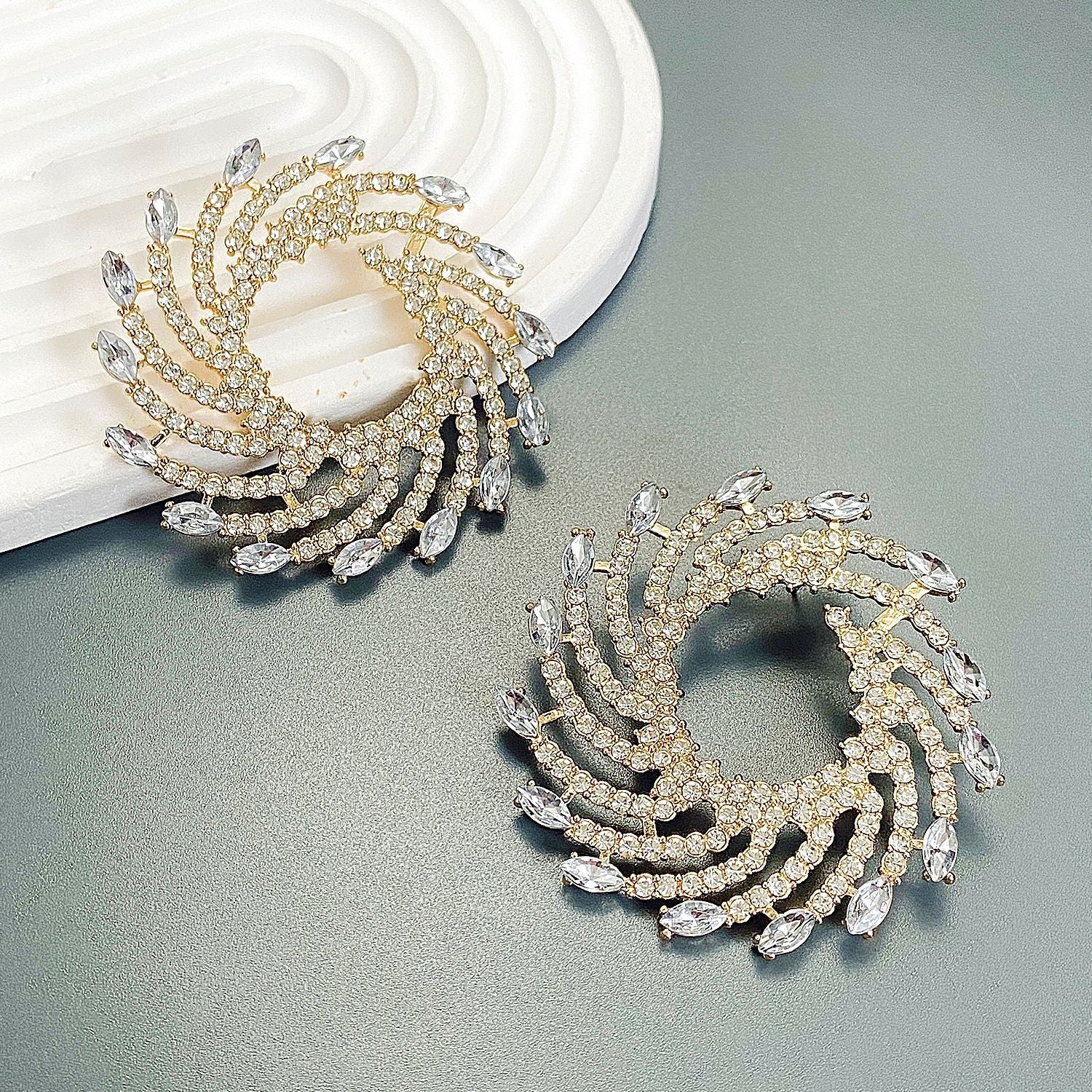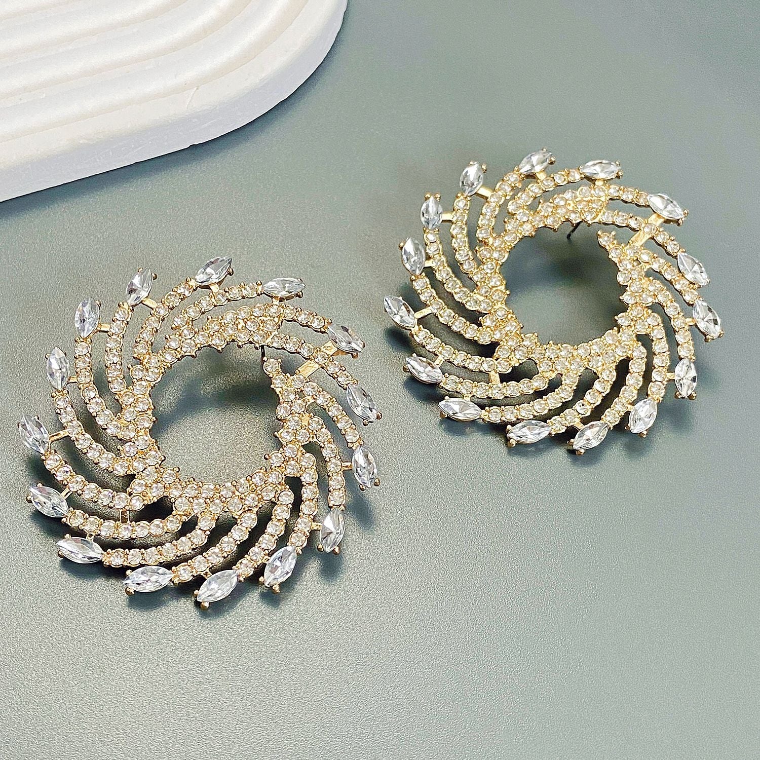 Glam Spiral Stripe Crystal Inlay Alloy Sunflower Earrings