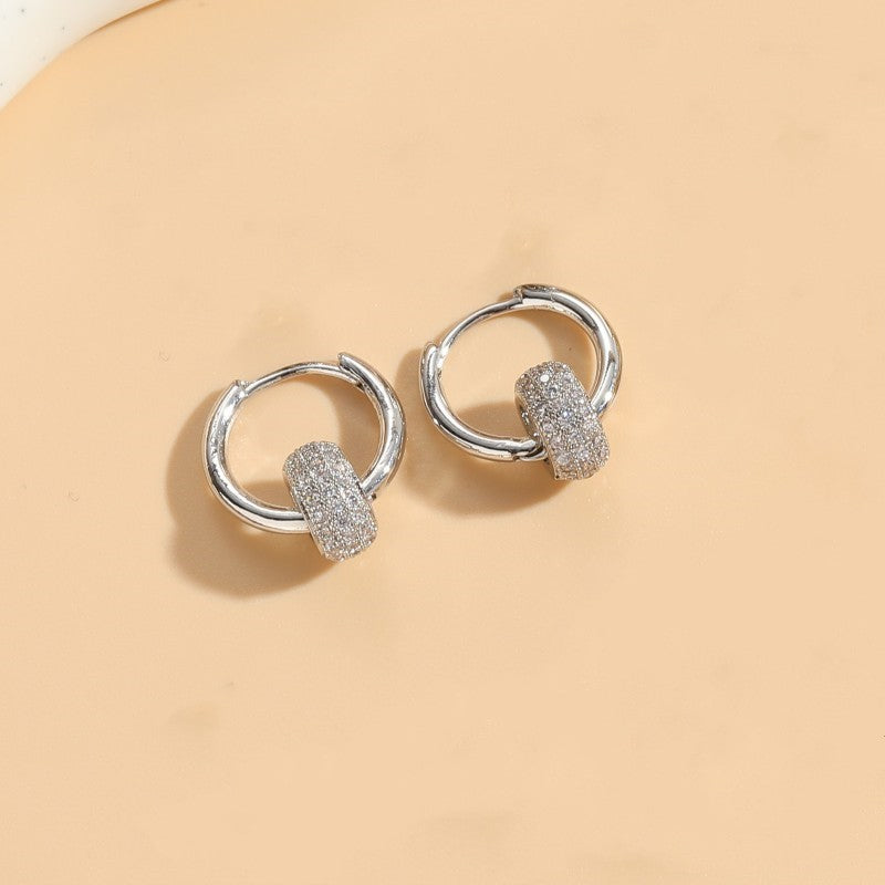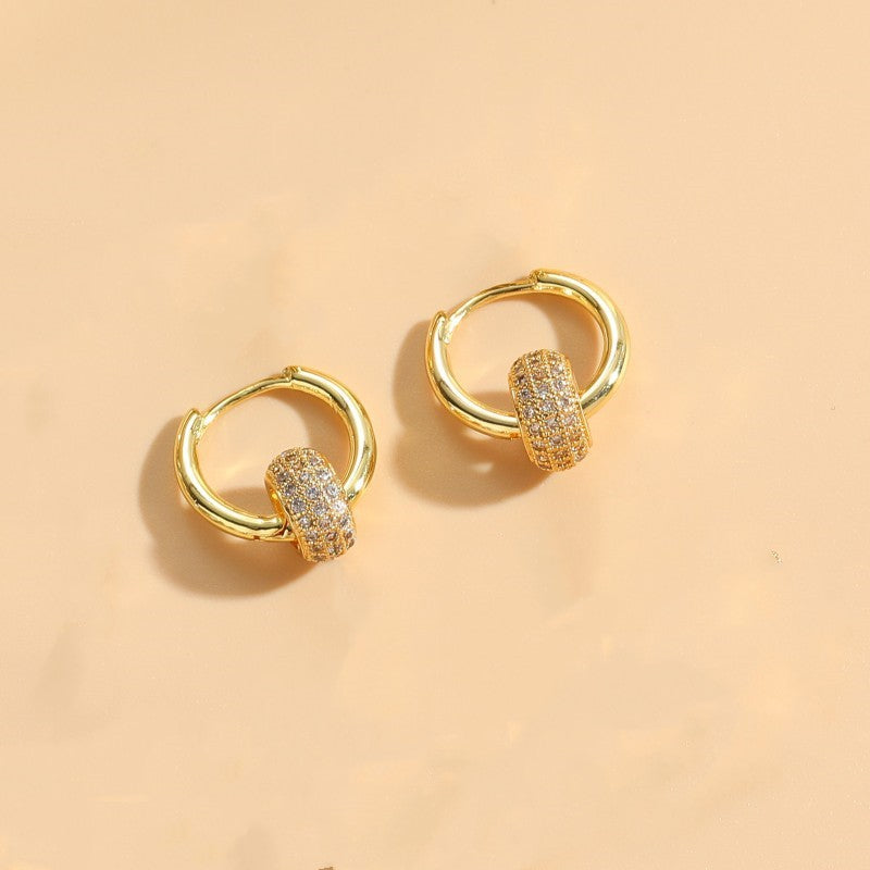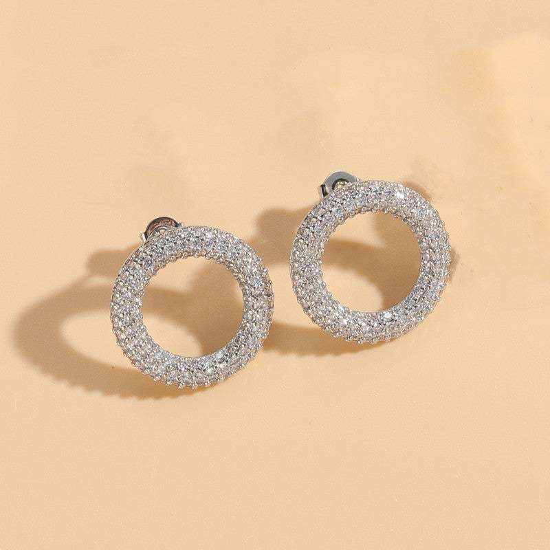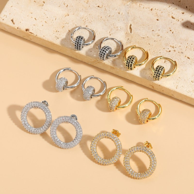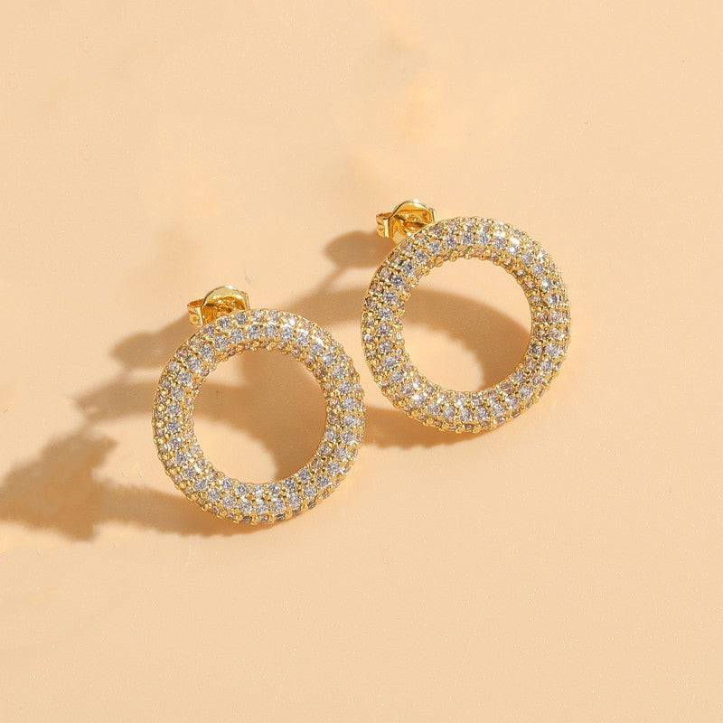 1 Pair 14k Gold Plated Zircon Circle Design Minimalist Earrings