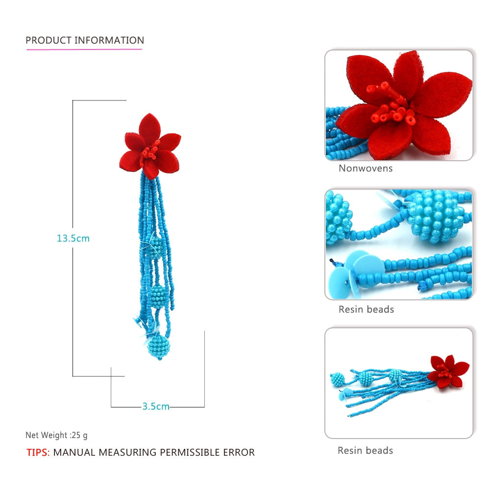 IG Style Retro Flower Beaded Tassel Resin Drop Earrings