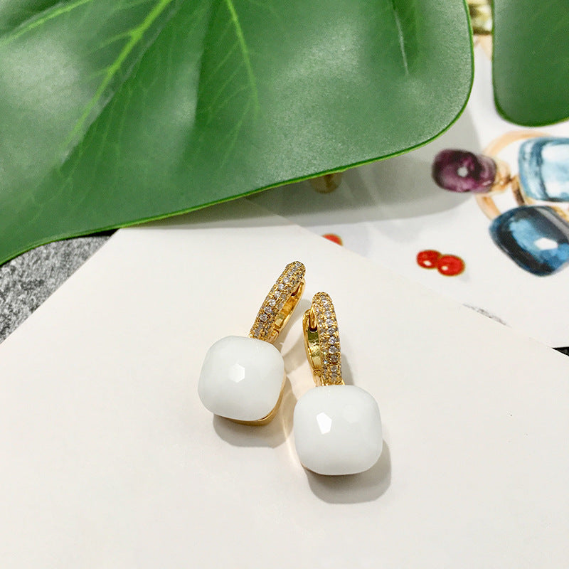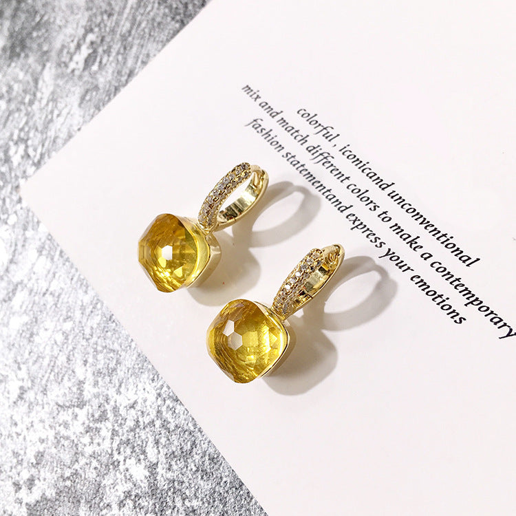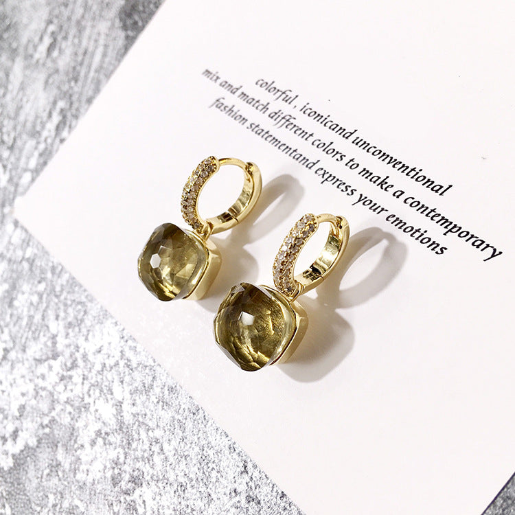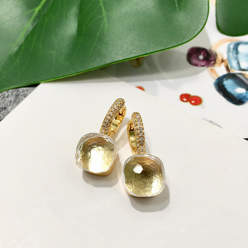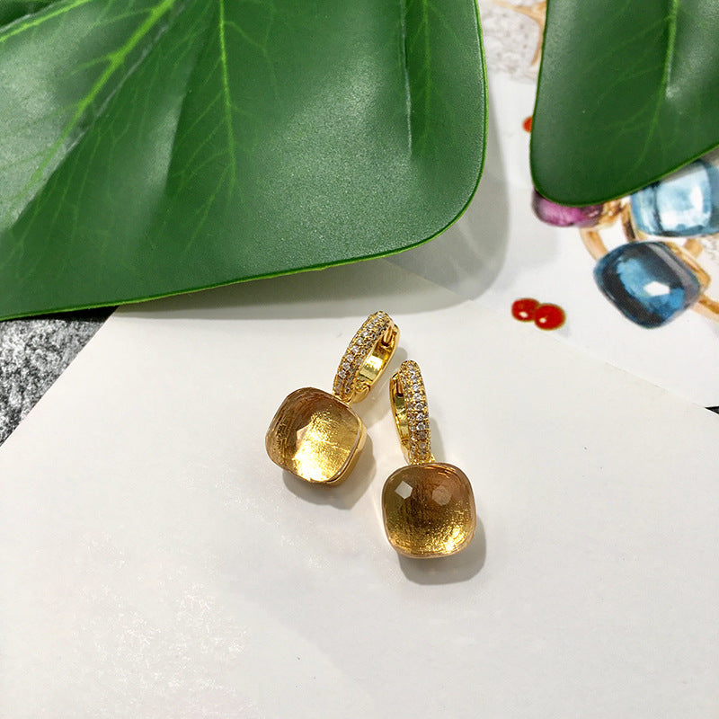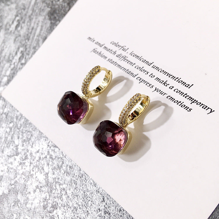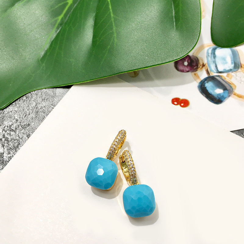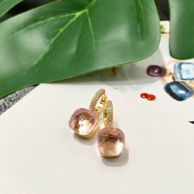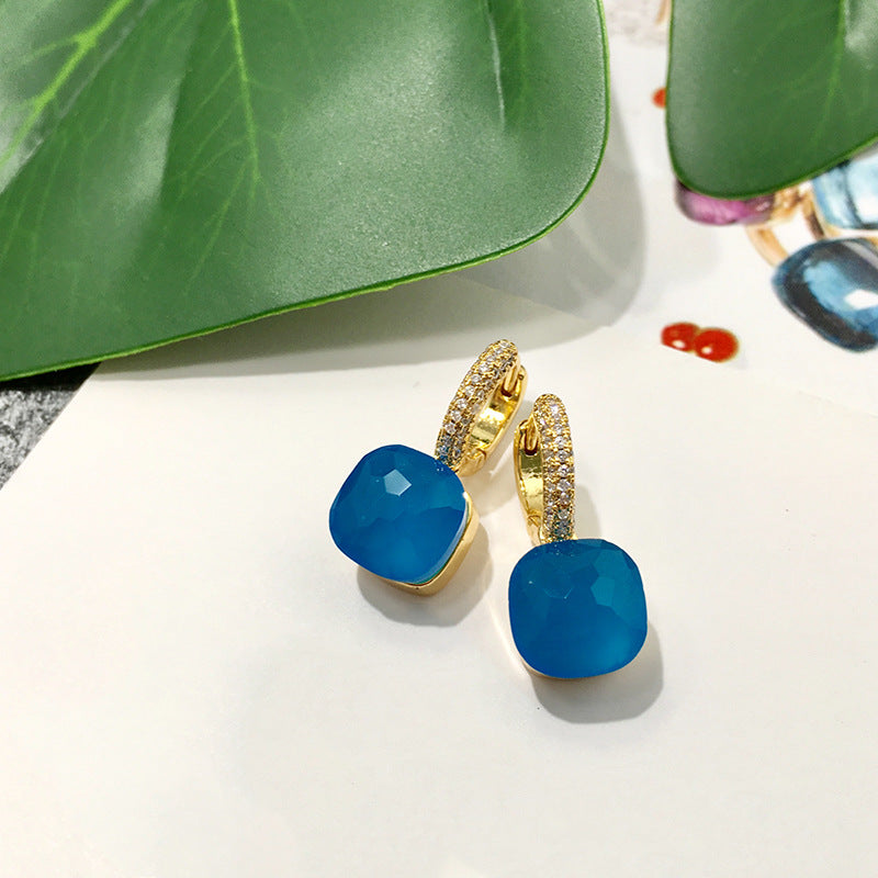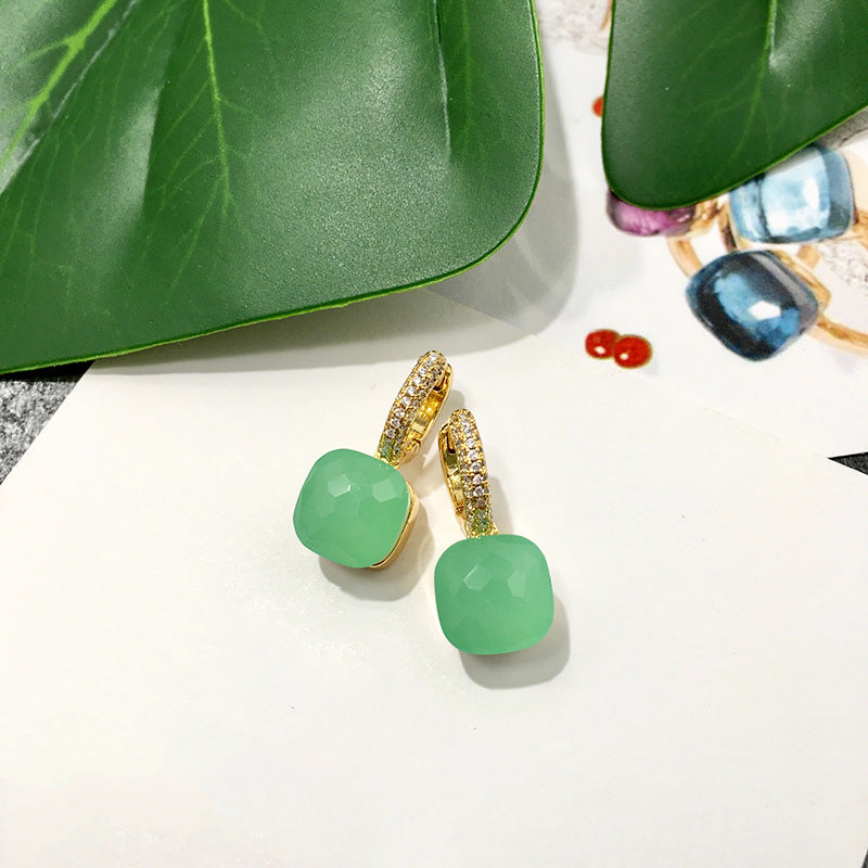 1 Pair Square Inlay Copper Crystal Zircon Candy Color Earrings