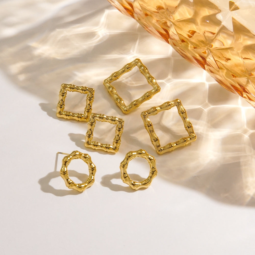 1 Pair Y2K Geometric 14K Gold Plated Stainless Steel Ear Studs