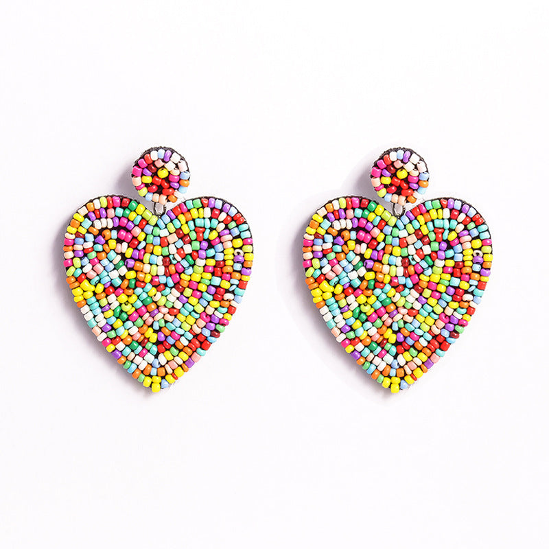 Retro Bohemian Heart Shape Beaded Drop Earrings