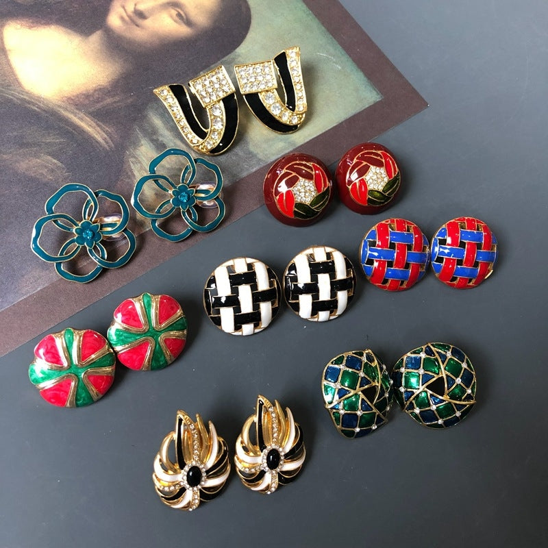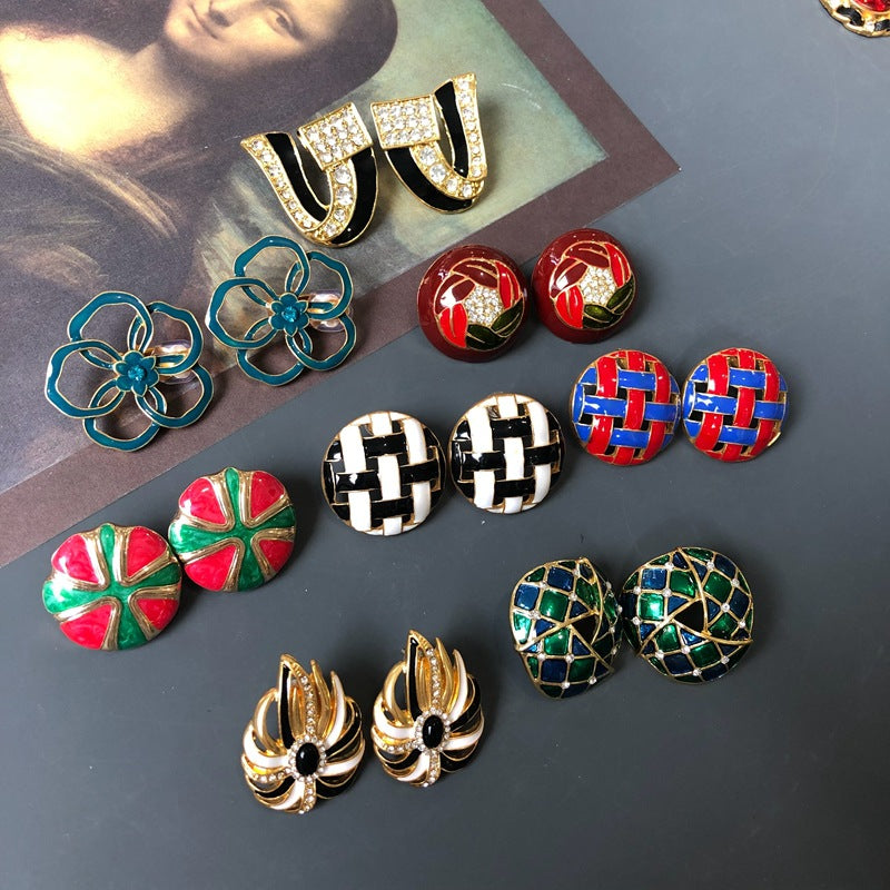 1 Pair Vintage Geometric Alloy Rhinestone Flower Drop Earrings for Women