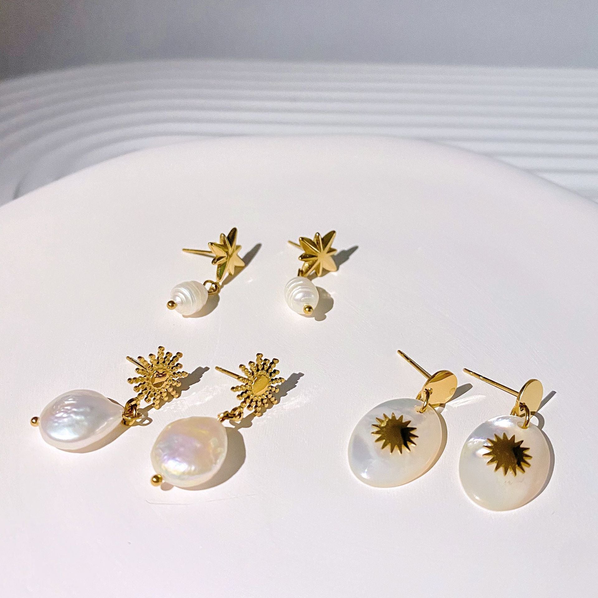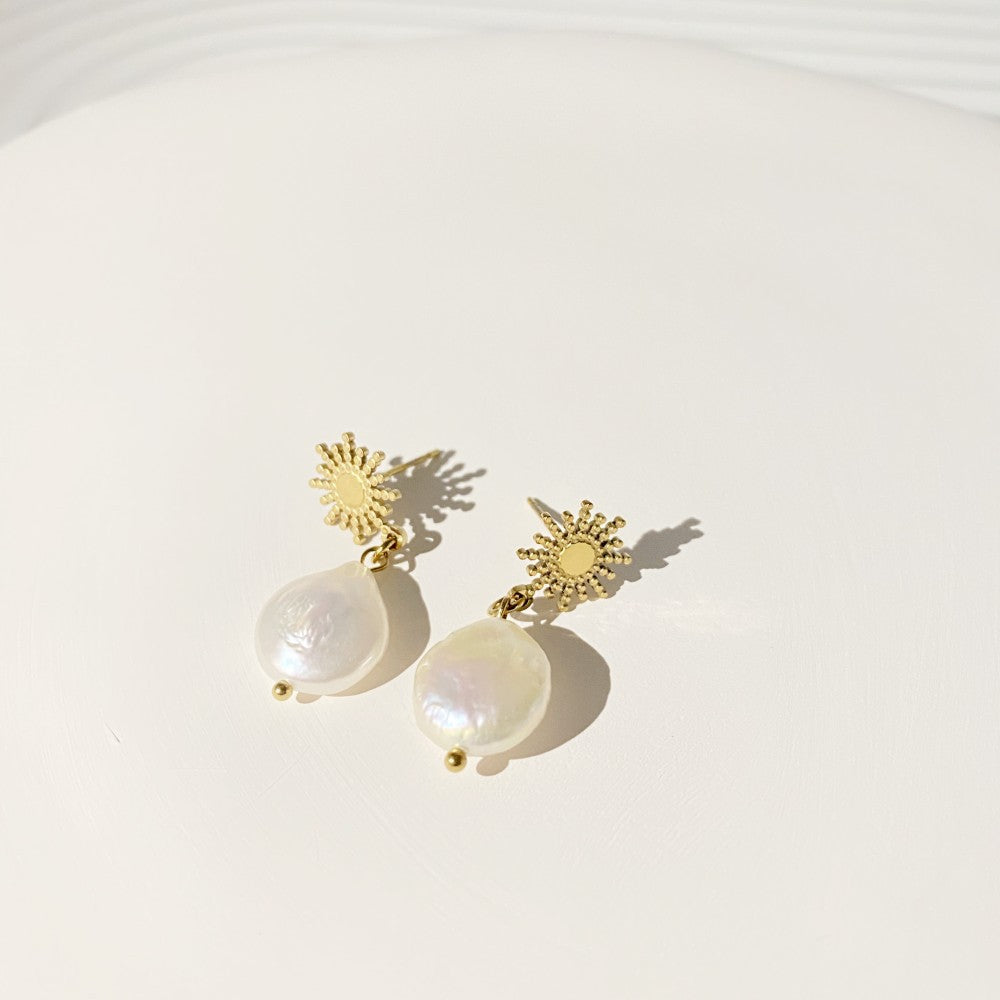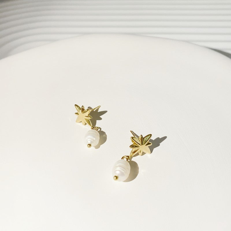 Retro Star Freshwater Pearl Gold Plated Drop Earrings