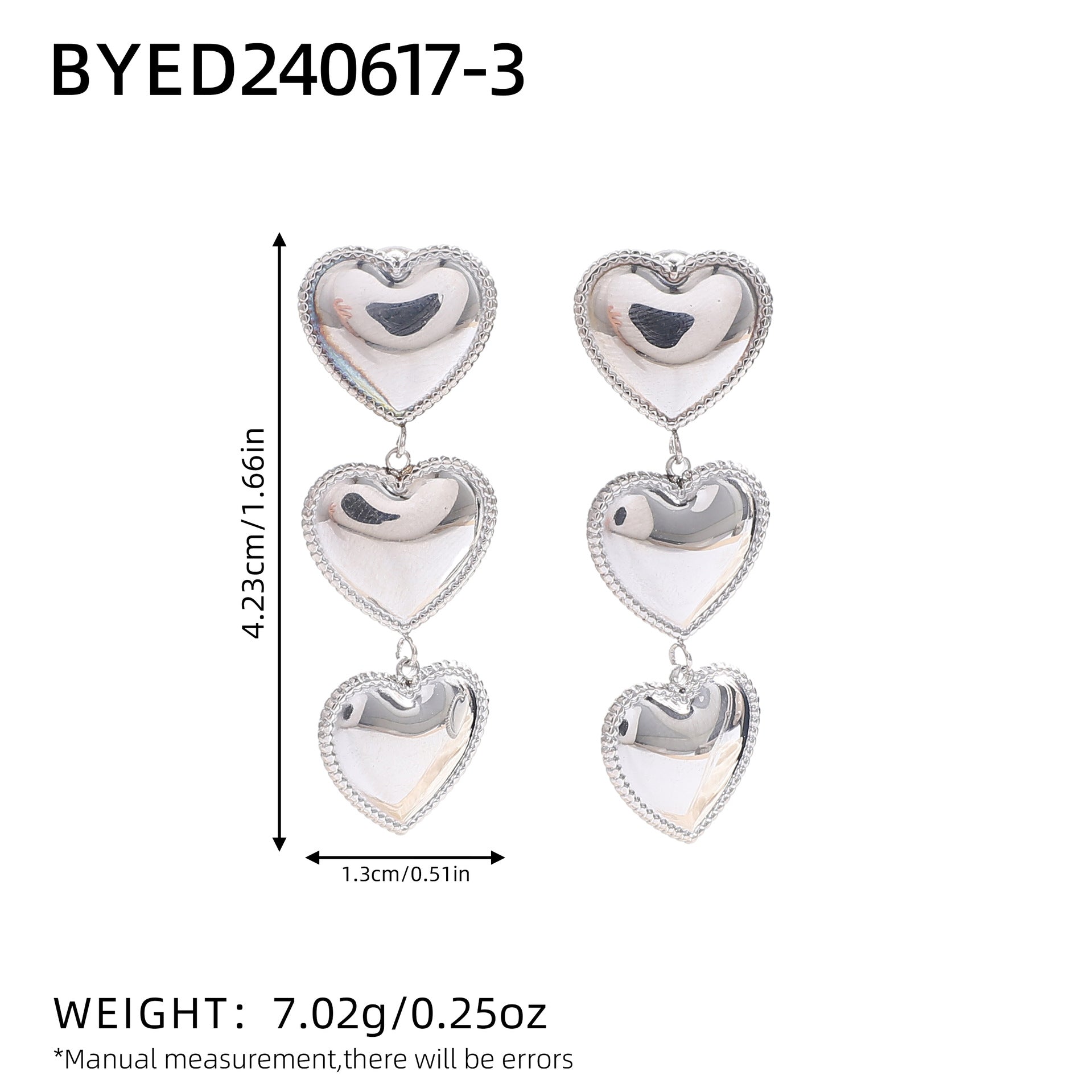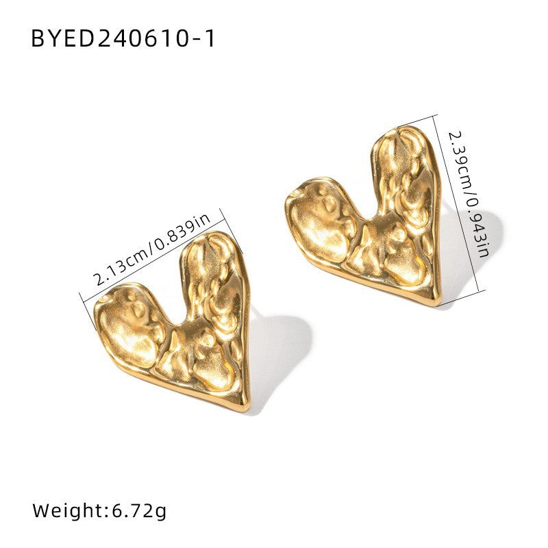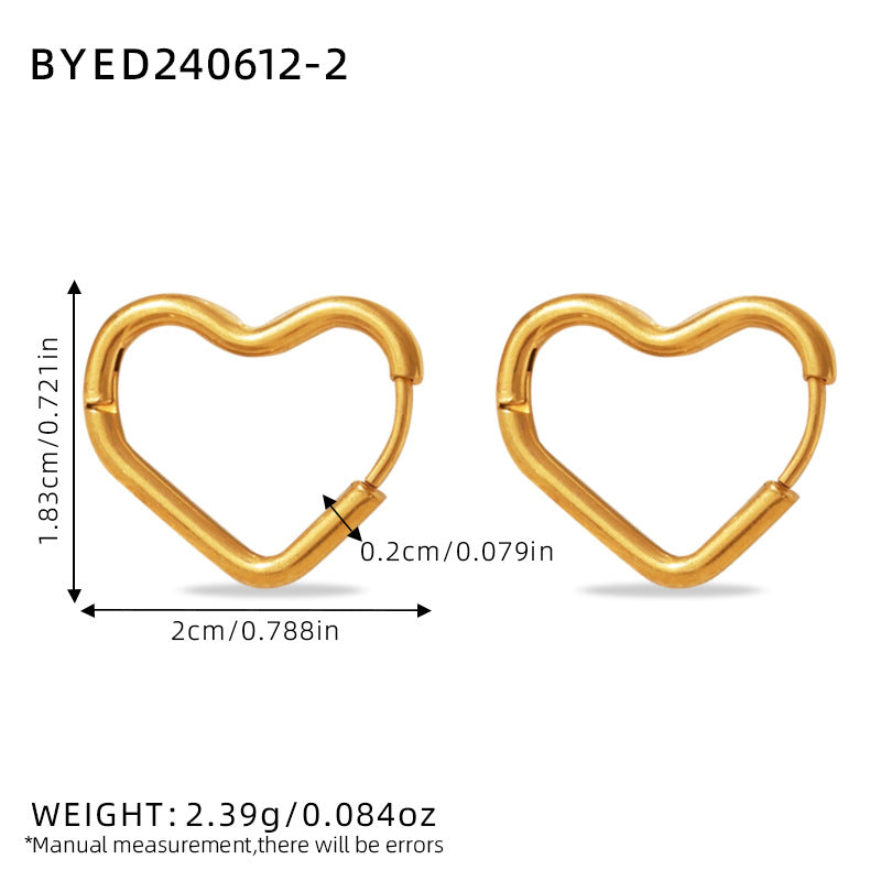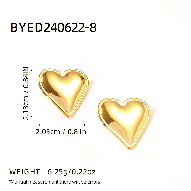1 Pair Classic Heart Shape 304 Stainless Steel Stud Earrings Set