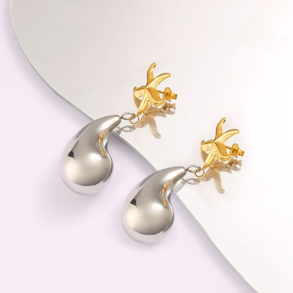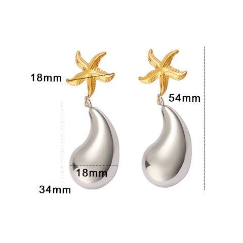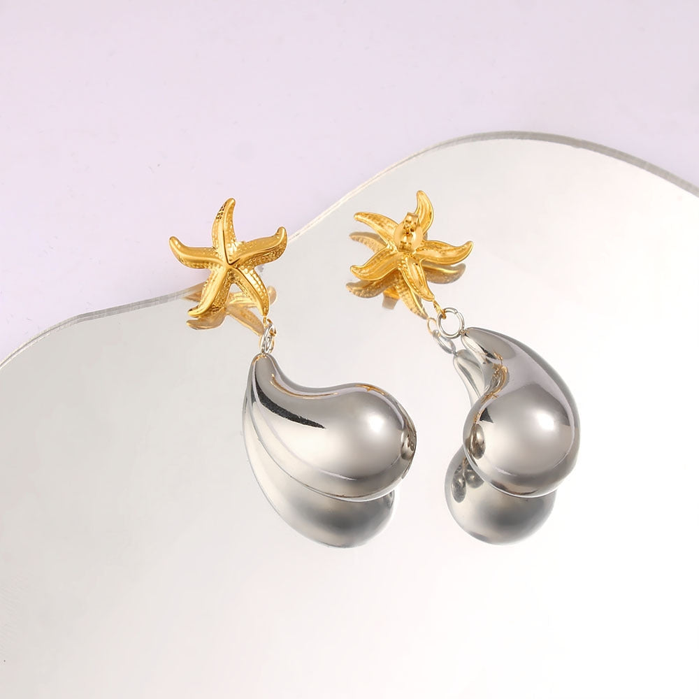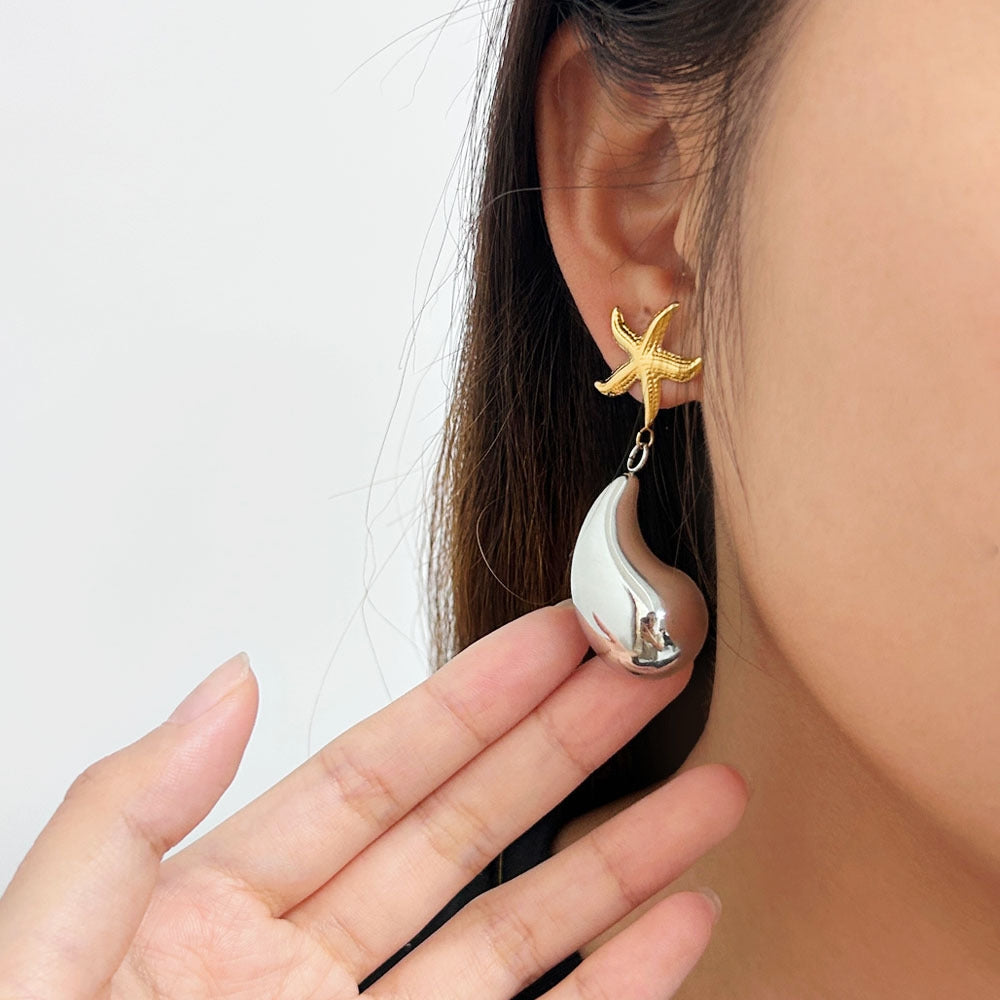 1 Pair Geometric Stainless Steel Starfish Hollow Drop Earrings for Women