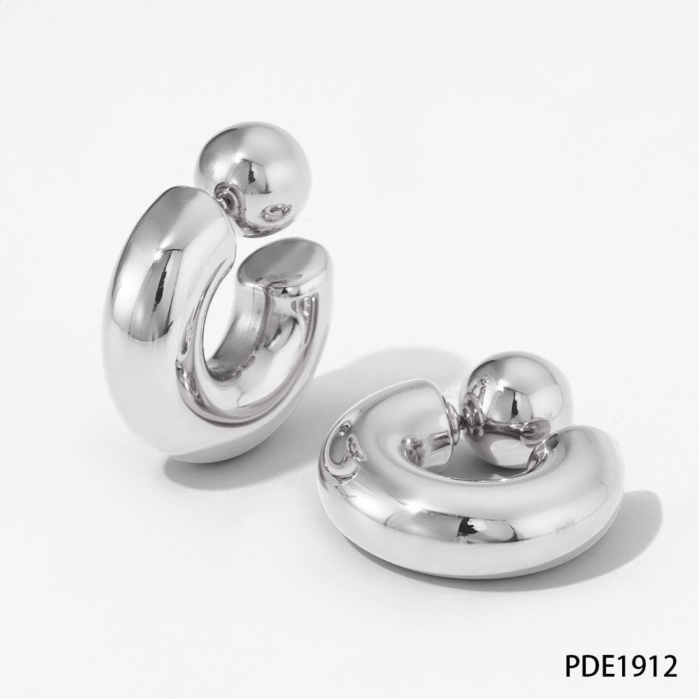 Silver C-shaped stainless steel earrings