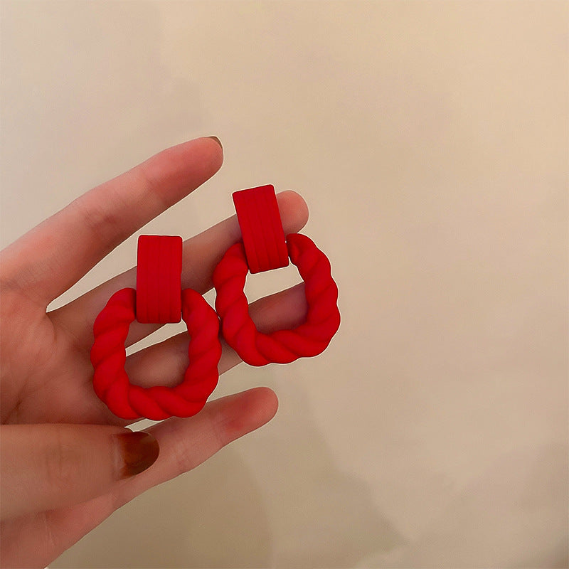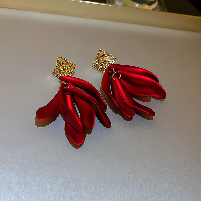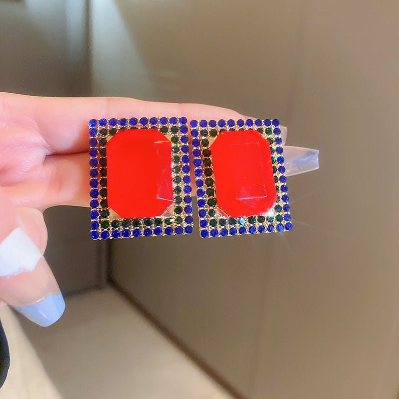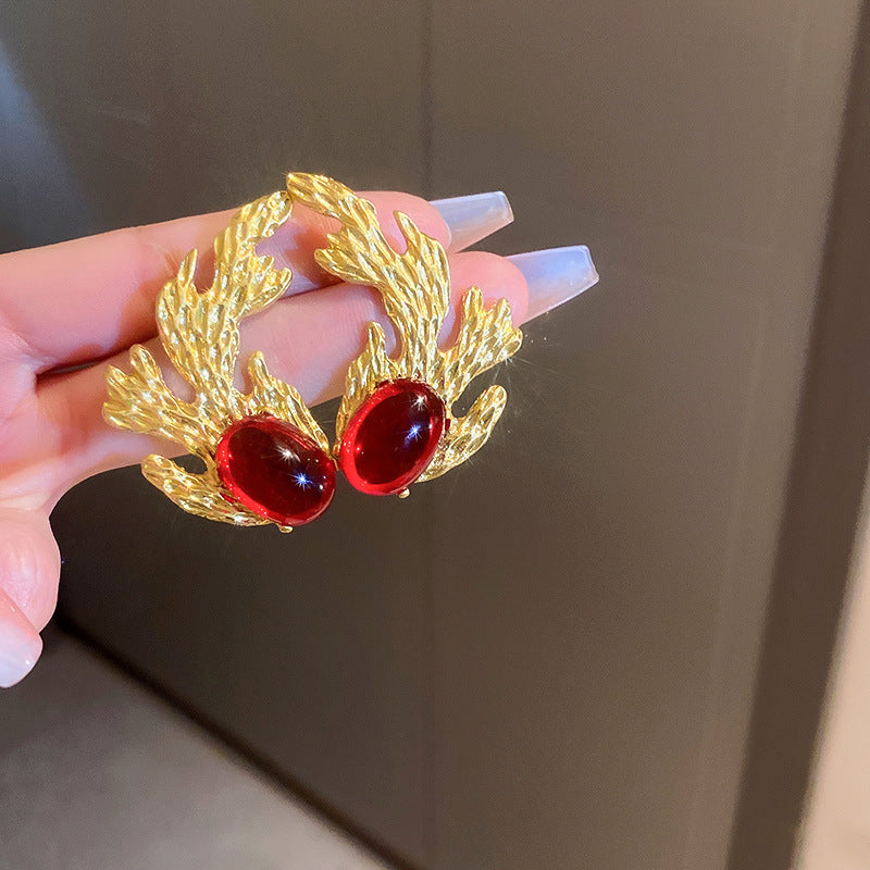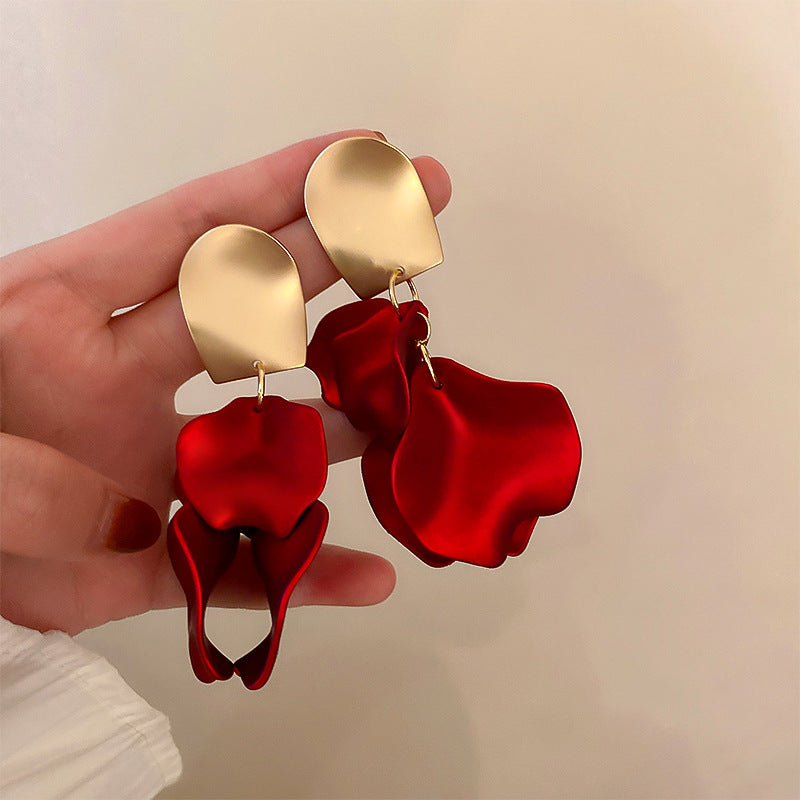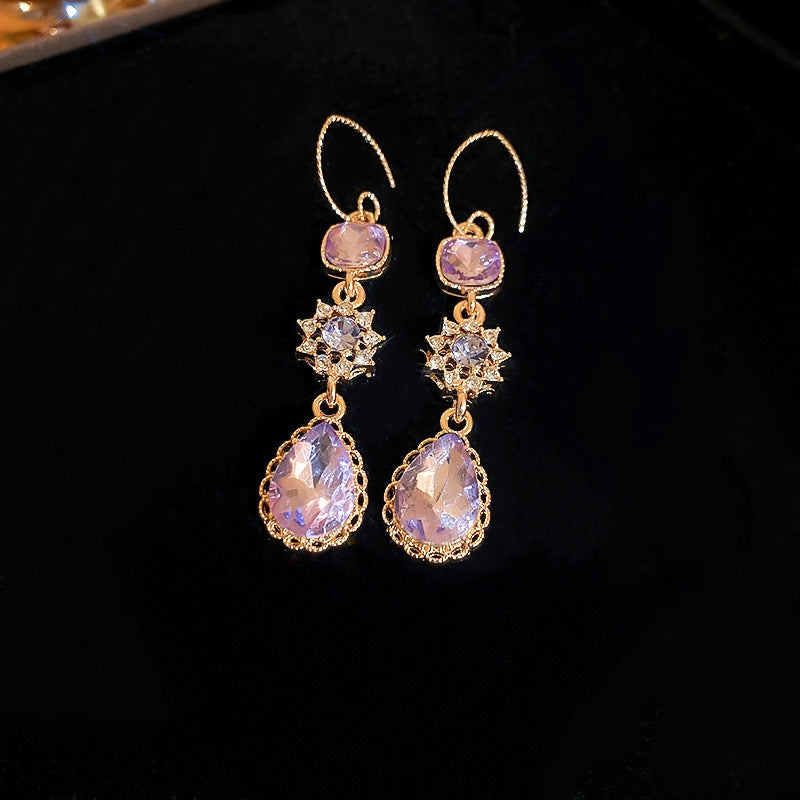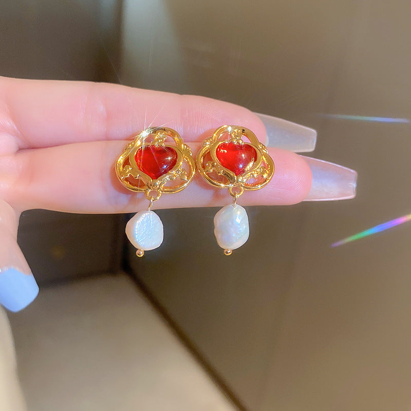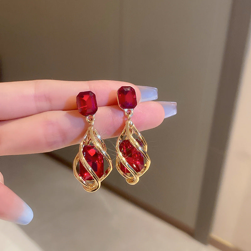1 Pair Vintage Red Rose Zircon Alloy Drop Earrings