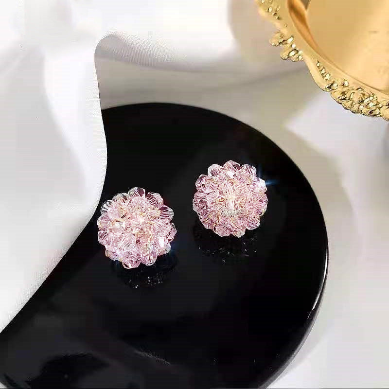 Sweet Flower Crystal Alloy Women's Earrings - S925 Silver Studs