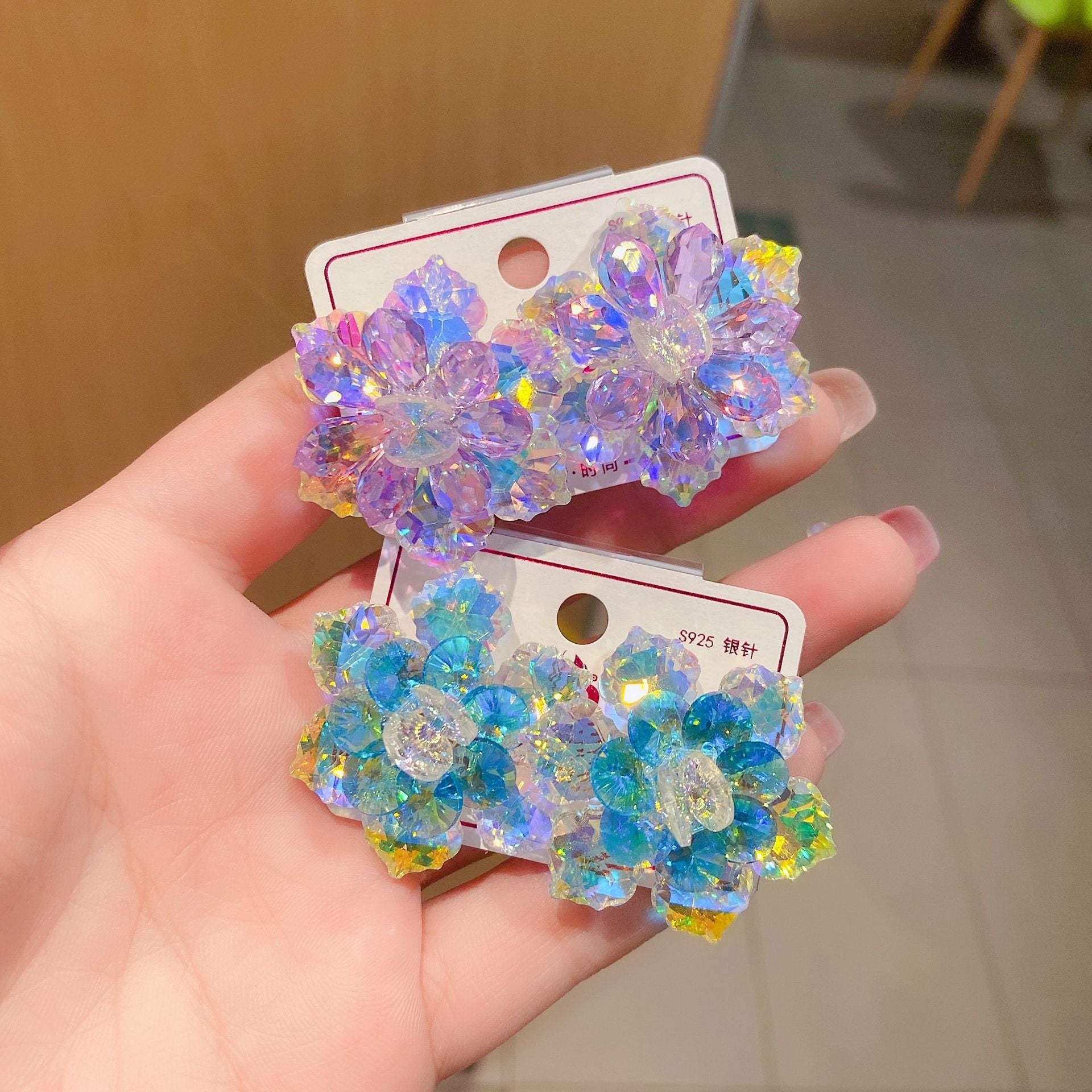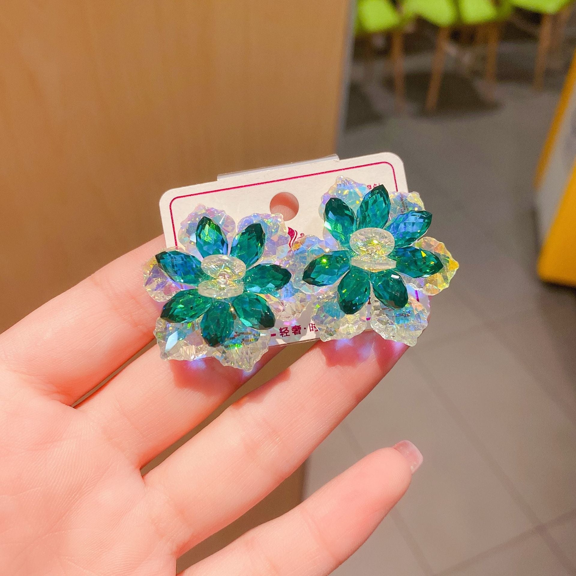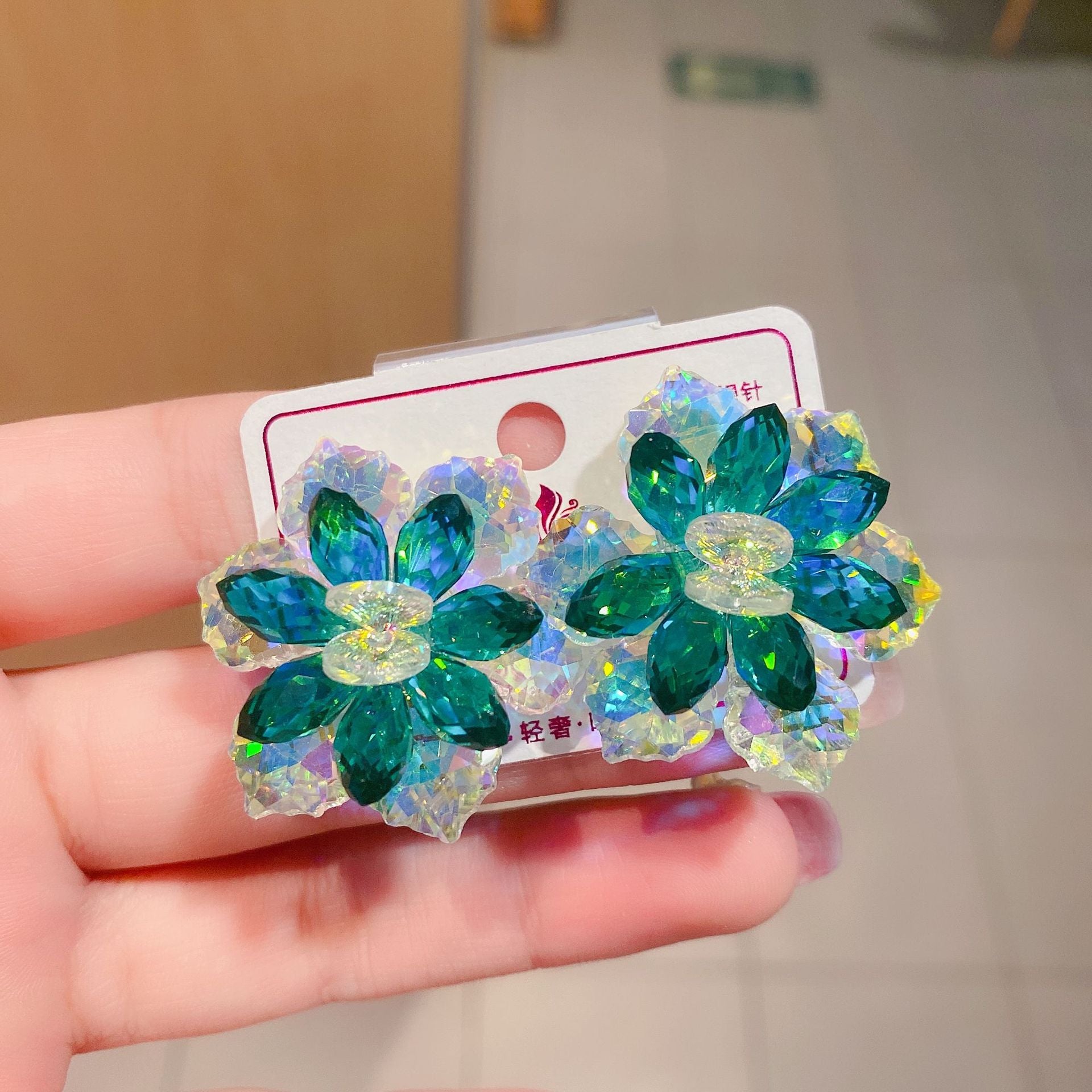 1 Pair Elegant Flower Crystal Women's Statement Earrings