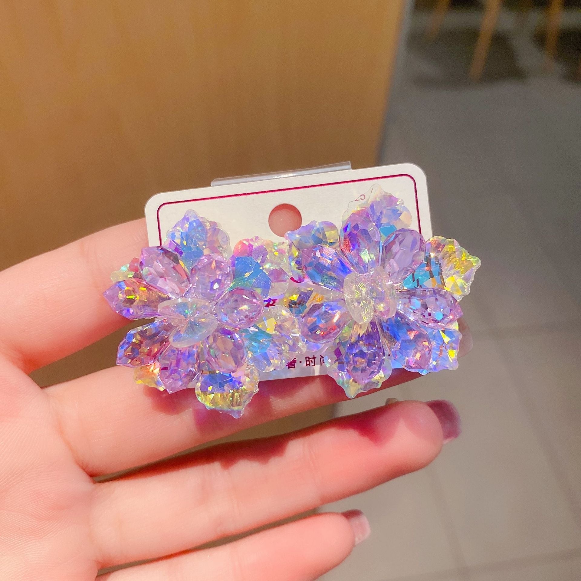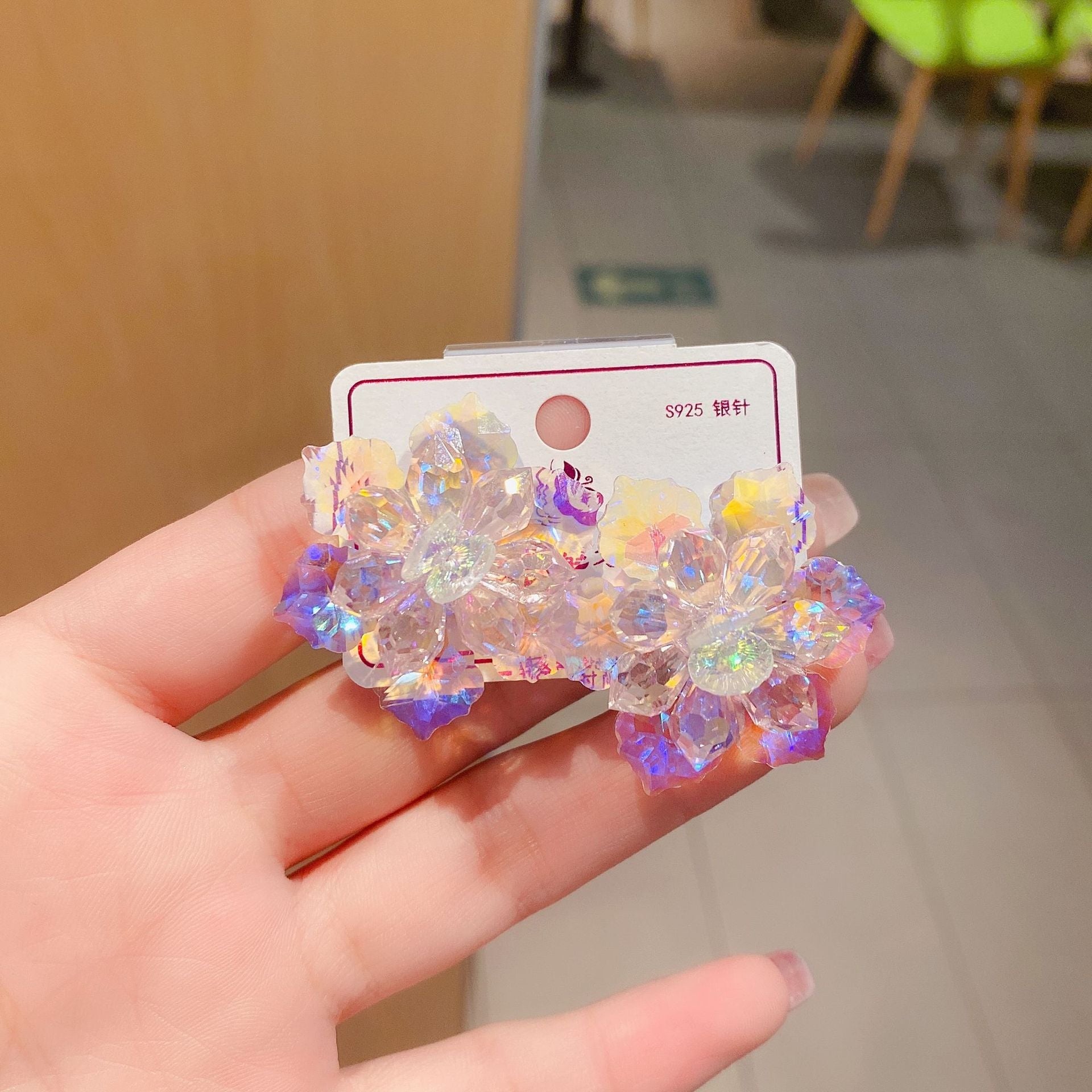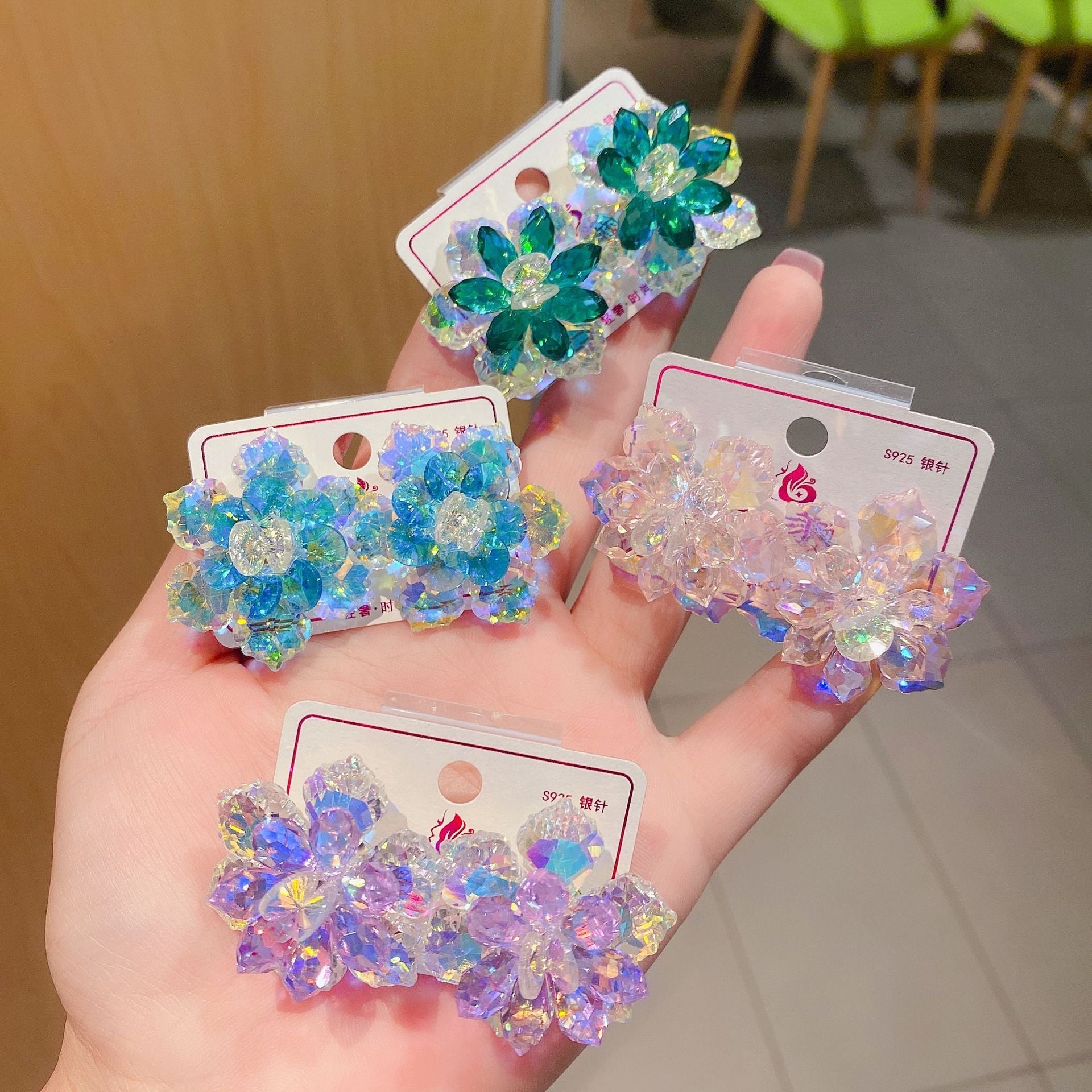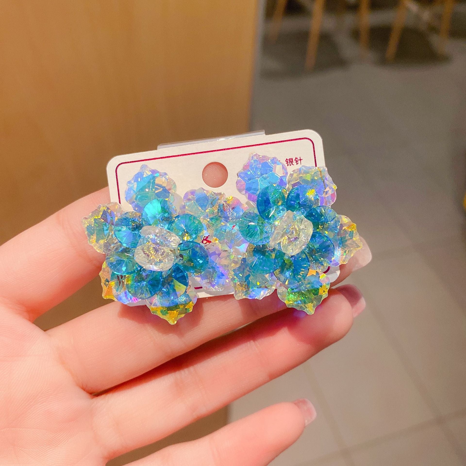 1 Pair Elegant Flower Crystal Women's Statement Earrings