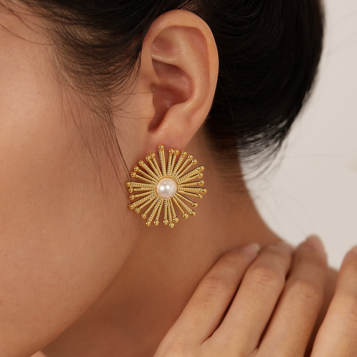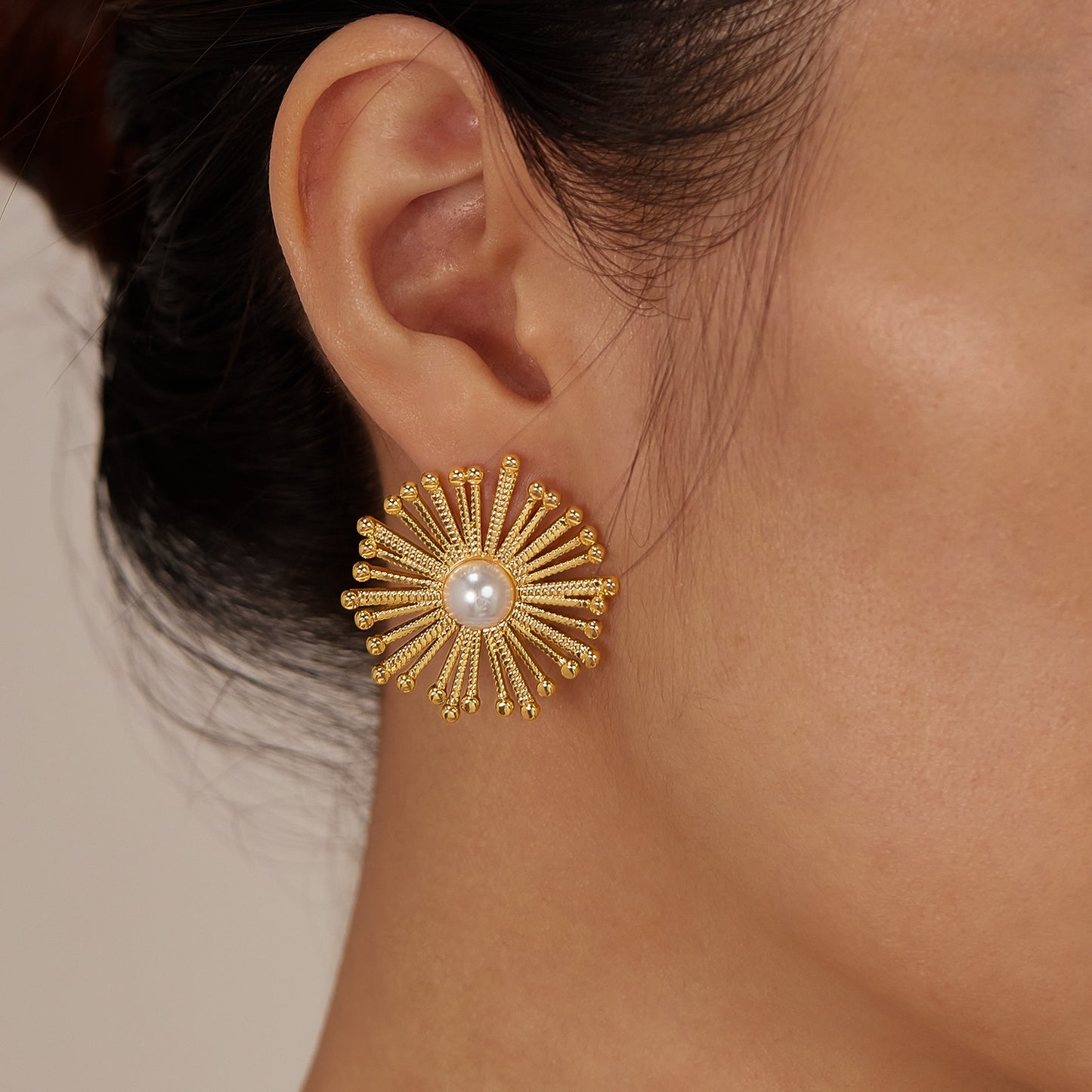 1 Pair Elegant Dandelion Inlay 304 Stainless Steel Pearl Stud Earrings