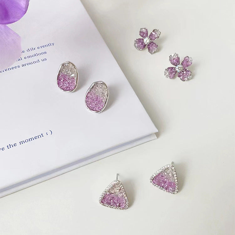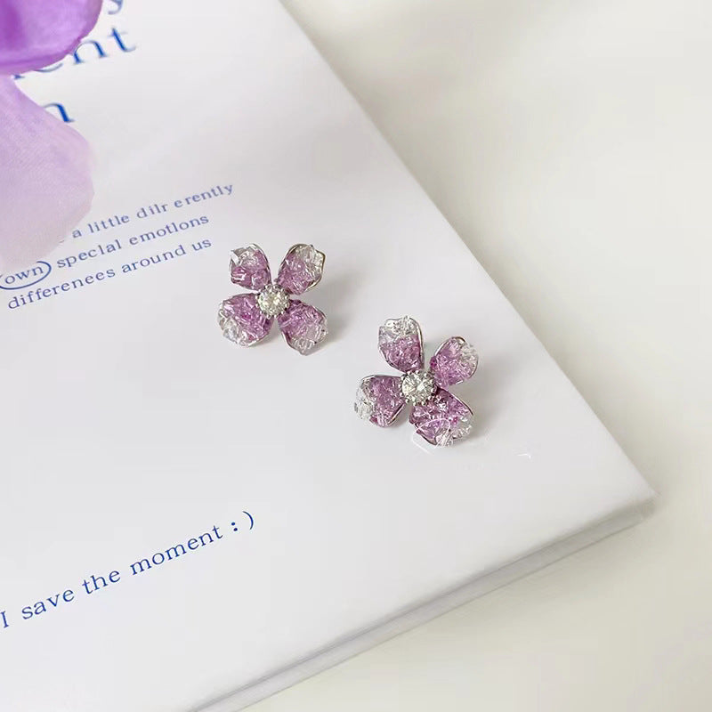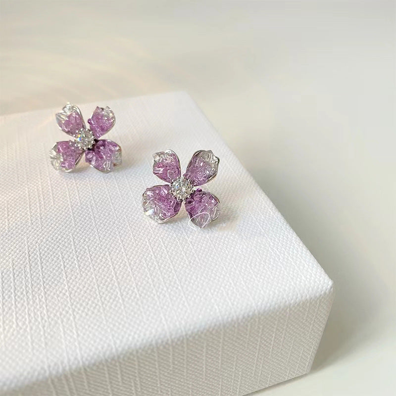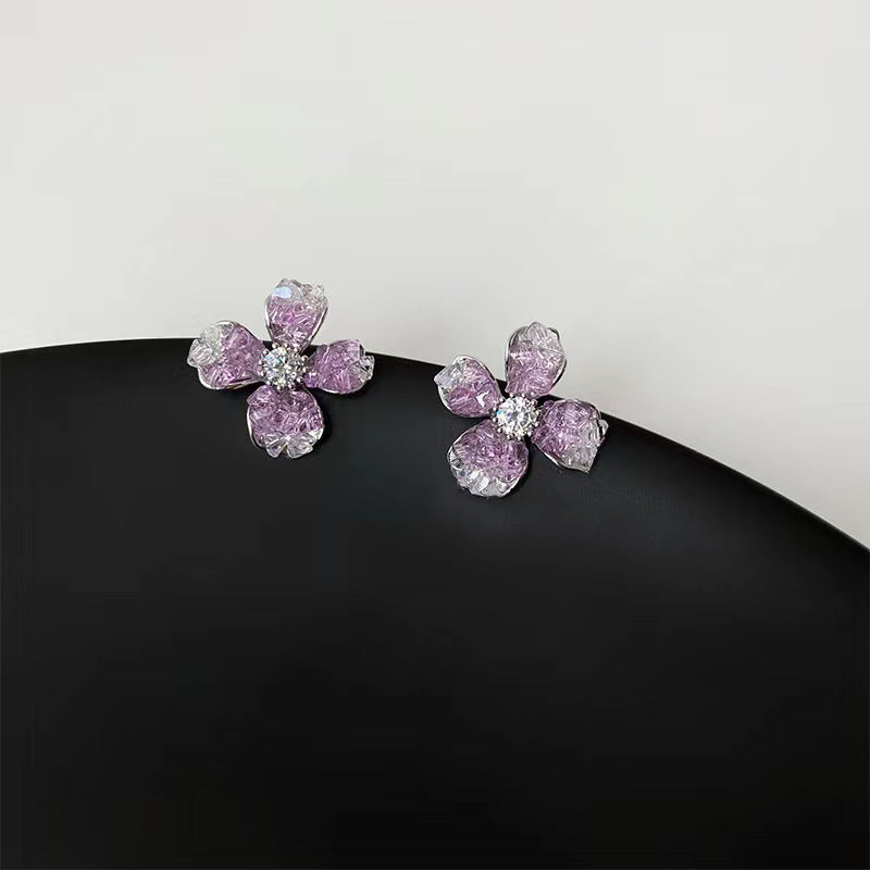 Noble purple high quality four-leaf flower gradient crystal stud earrings