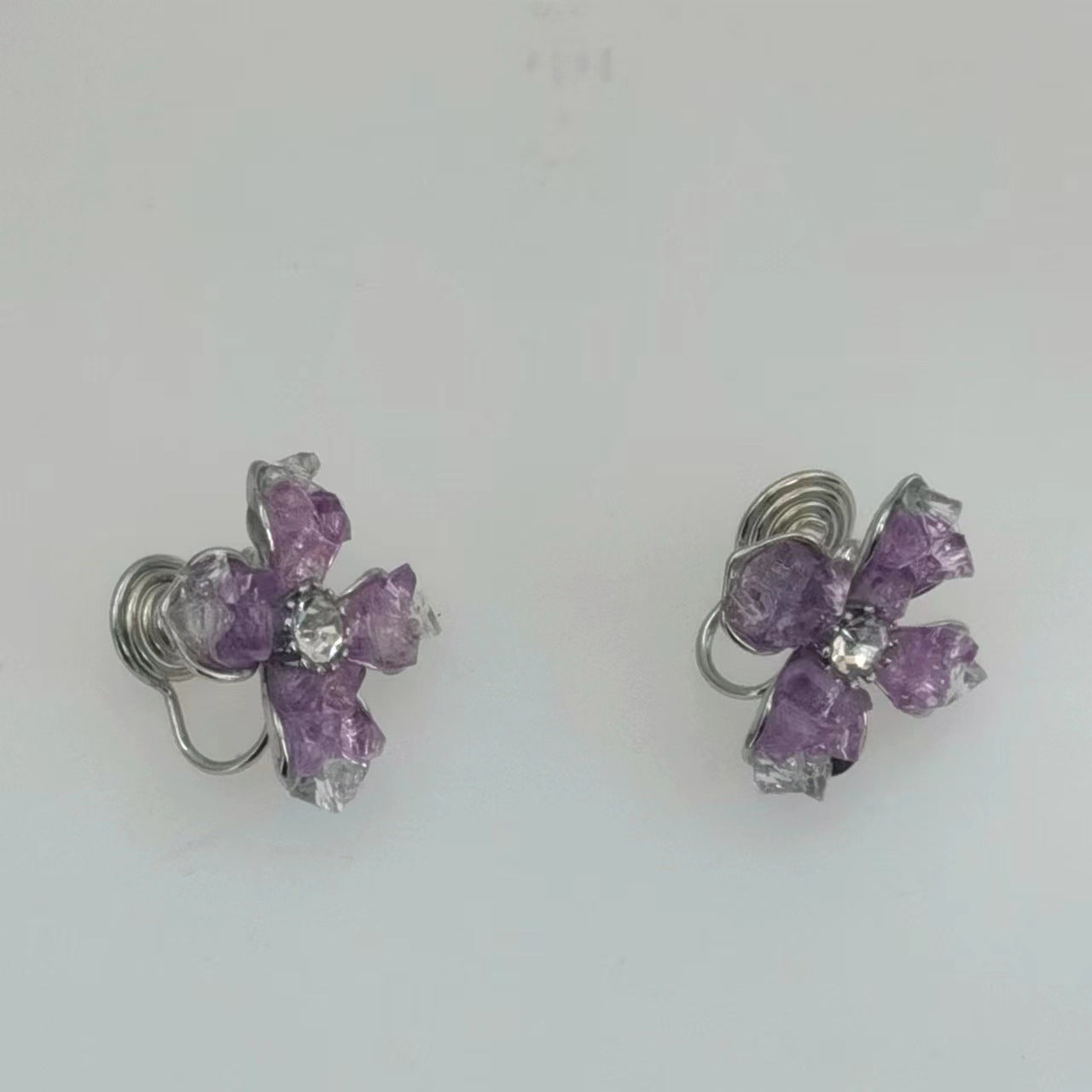 Noble purple high quality four-leaf flower gradient crystal mosquito coil ear clip