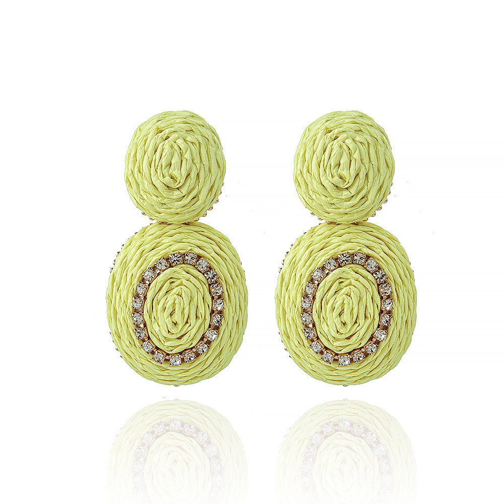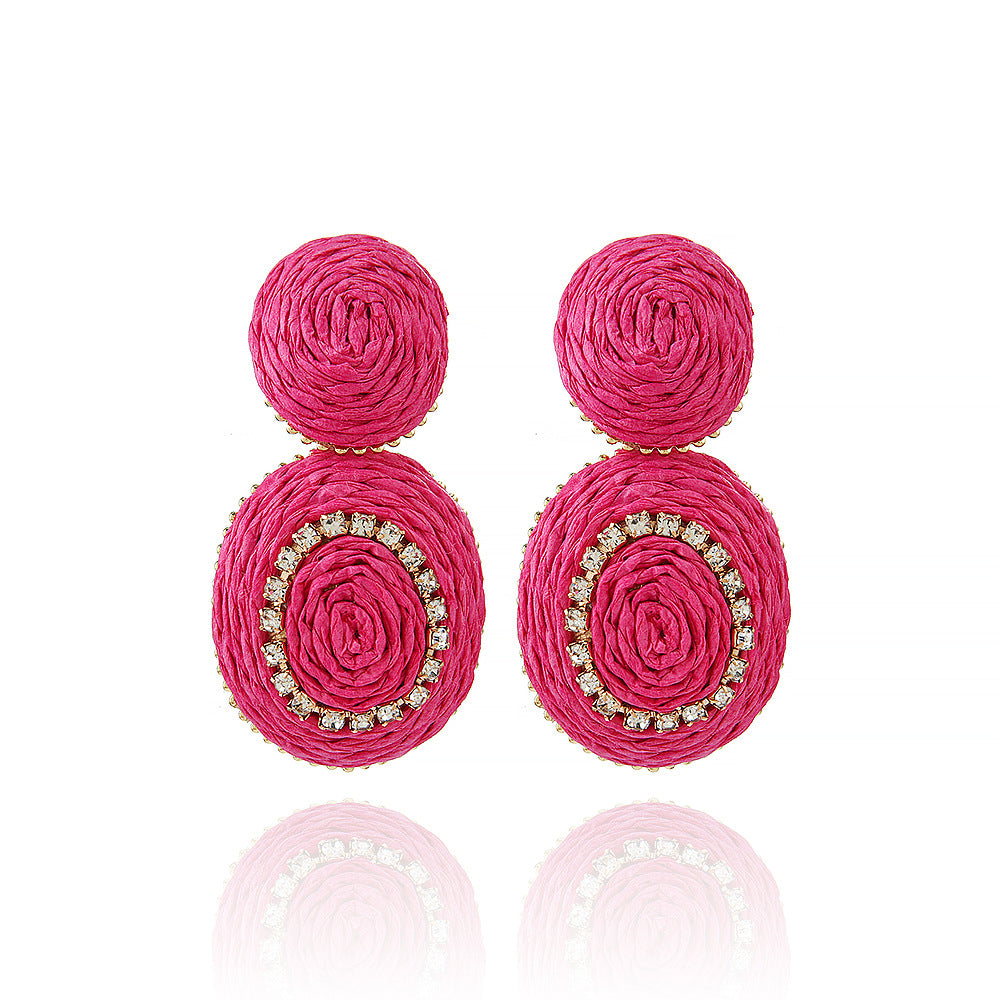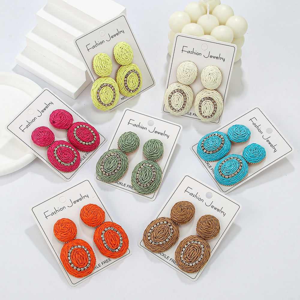 1 Pair Handmade Raffia Color Block Drop Earrings for Vacation