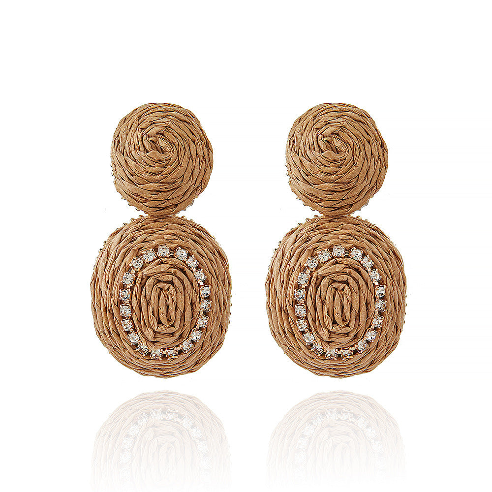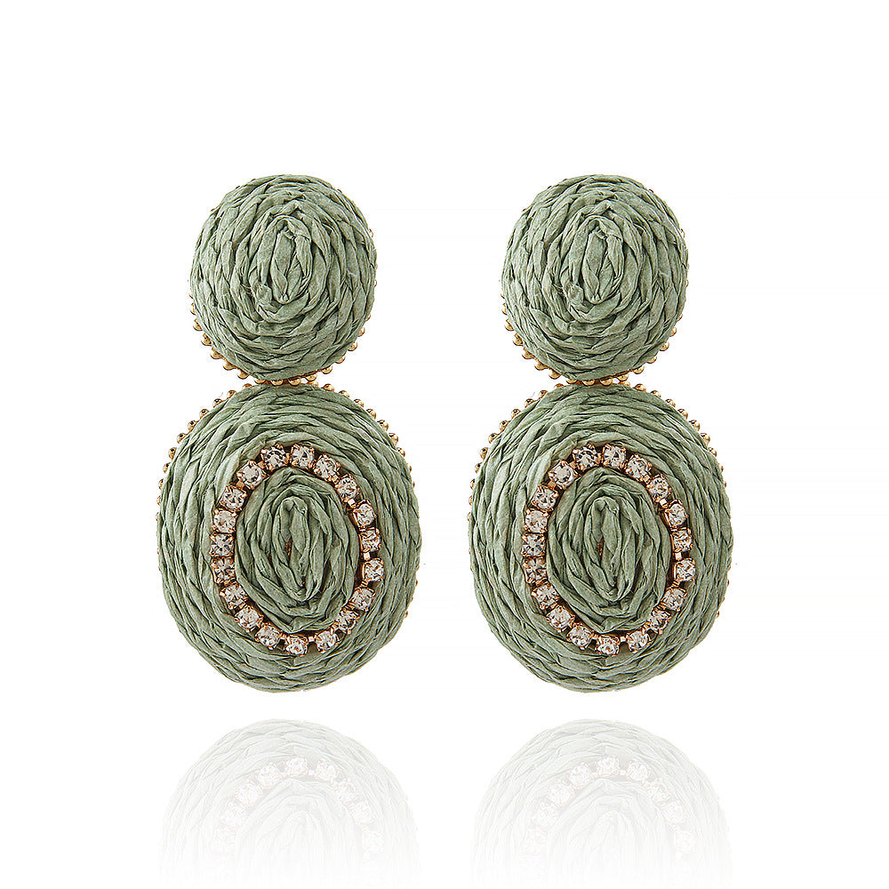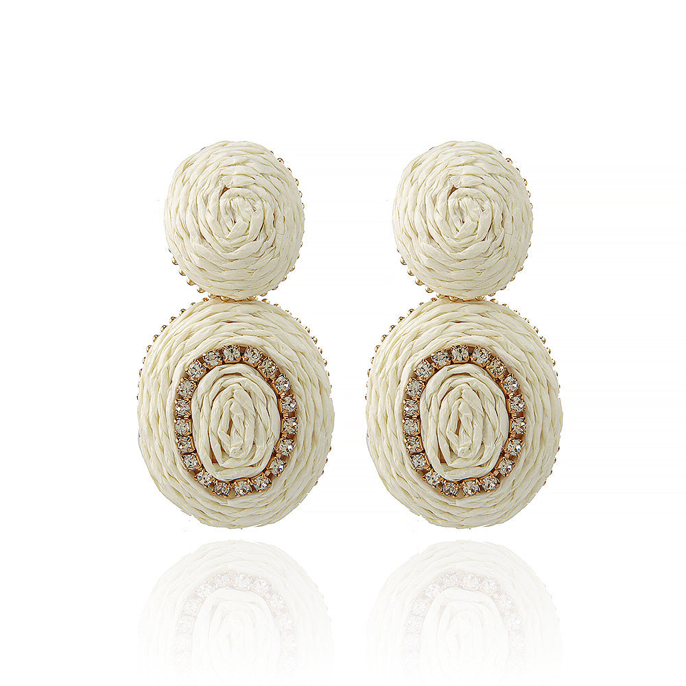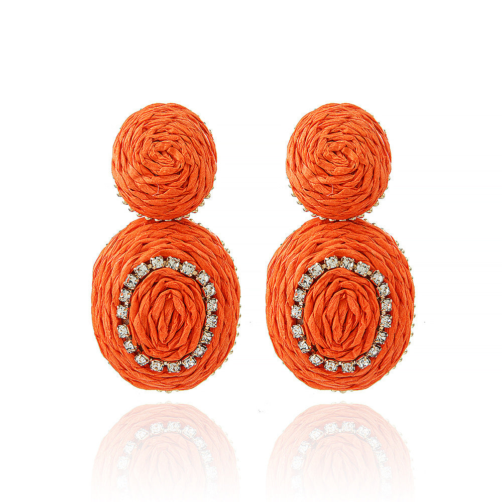 1 Pair Handmade Raffia Color Block Drop Earrings for Vacation