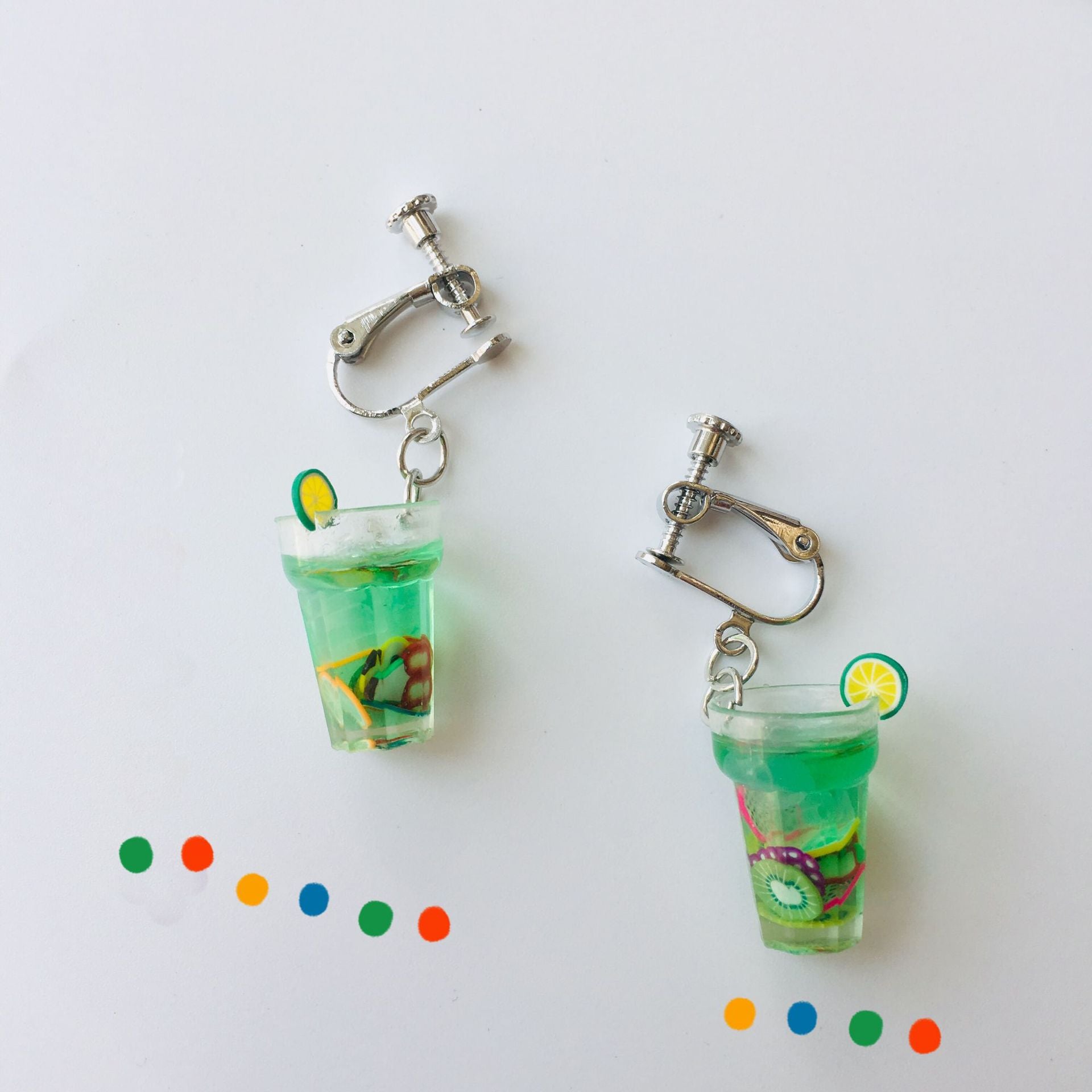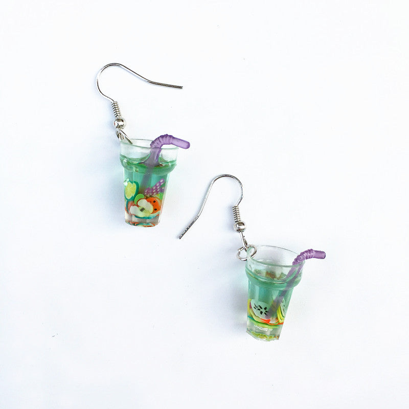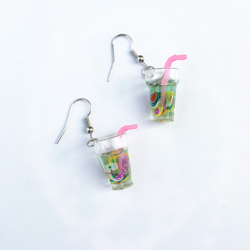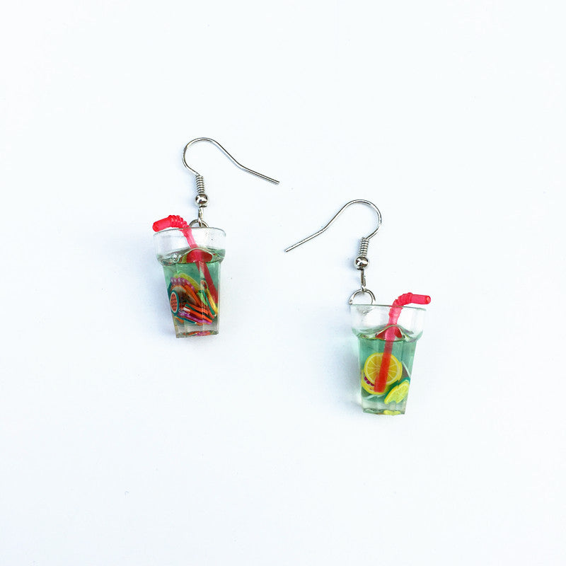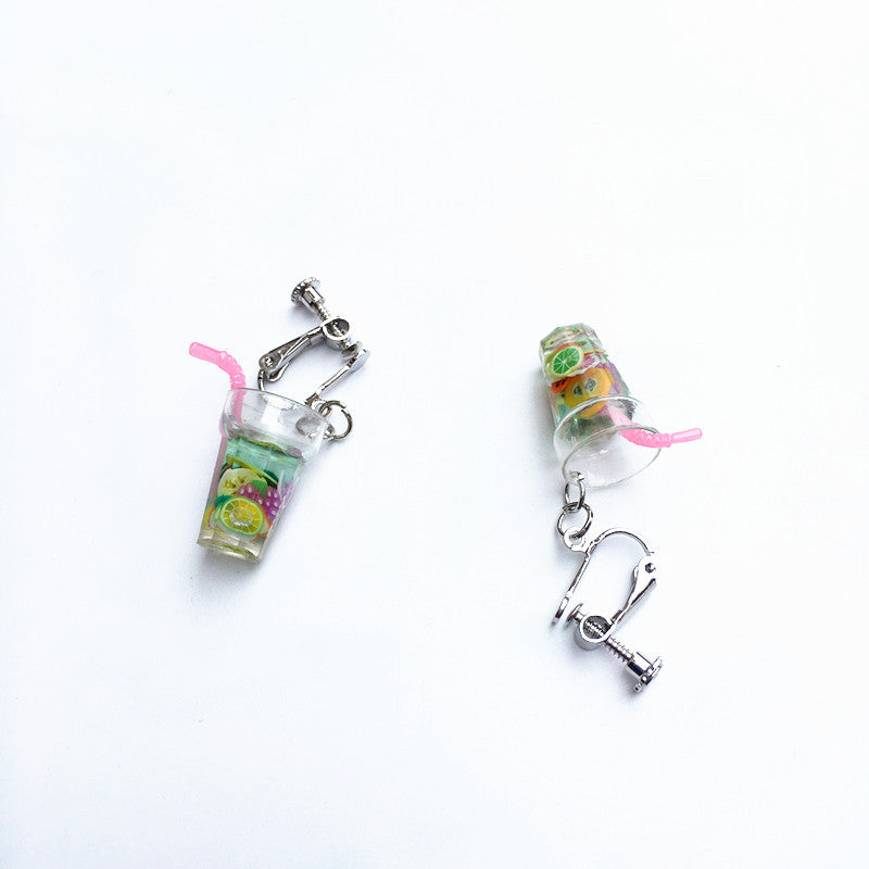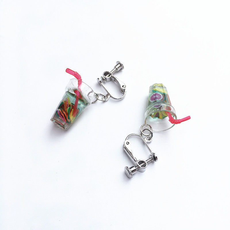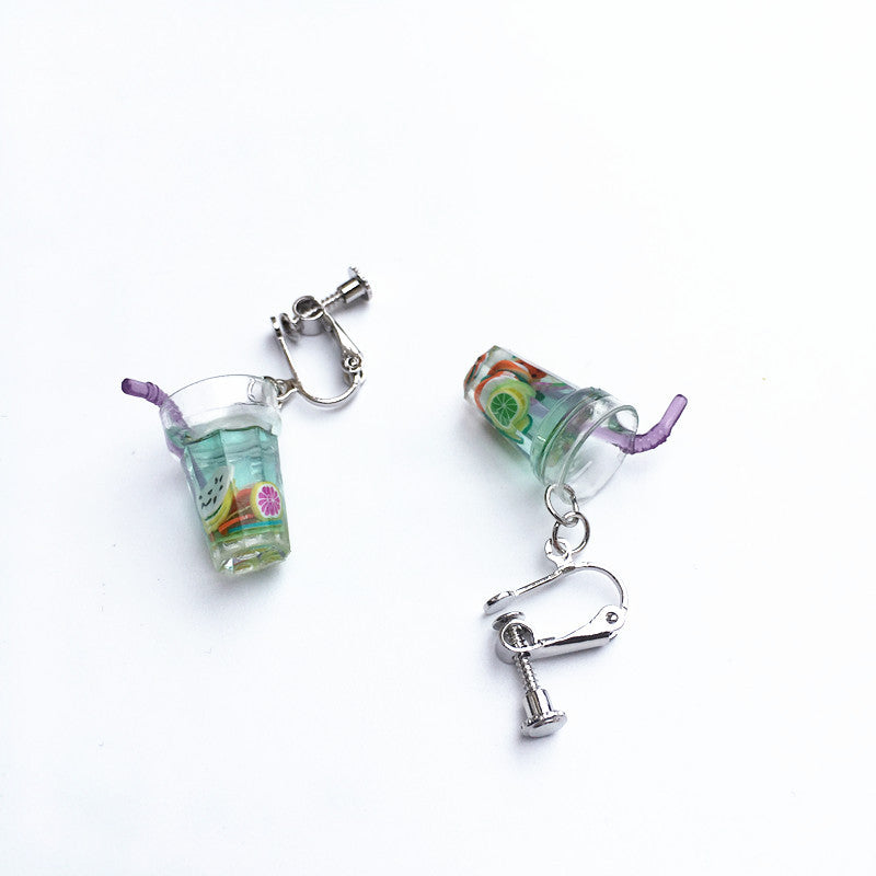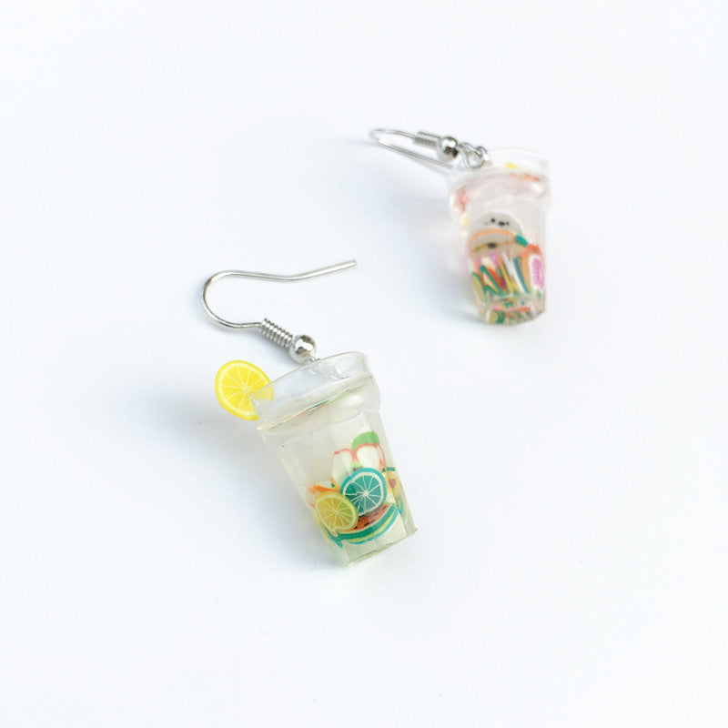 1 Pair Vacation Cup Resin Women's Drop Earrings - Creative Fruit Lemon Tea Design