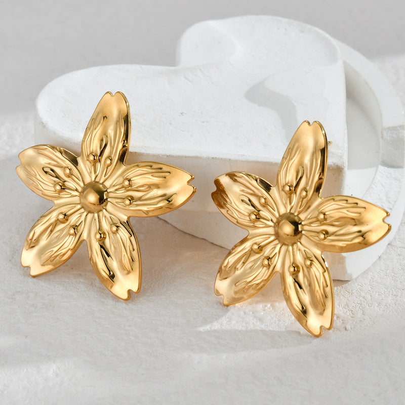 Vintage Bohemian Floral 18K Gold Plated Stainless Steel Earrings