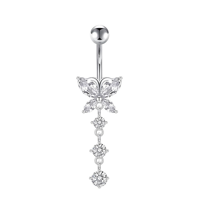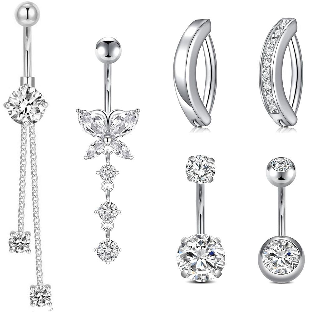 1 Piece Heart & Butterfly Zircon Inlay Stainless Steel Belly Ring Set