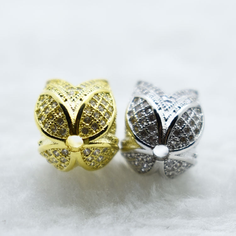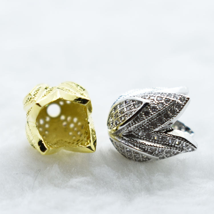 1 Piece 10mm*13mm Copper Zircon Flower Bead Caps Jewelry Accessories
