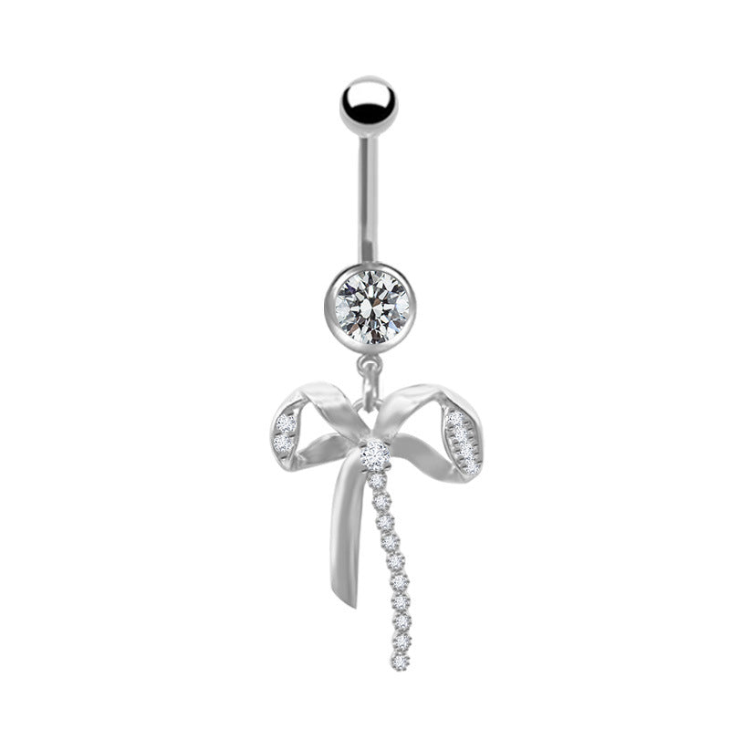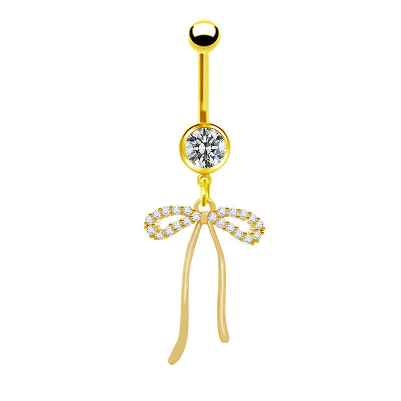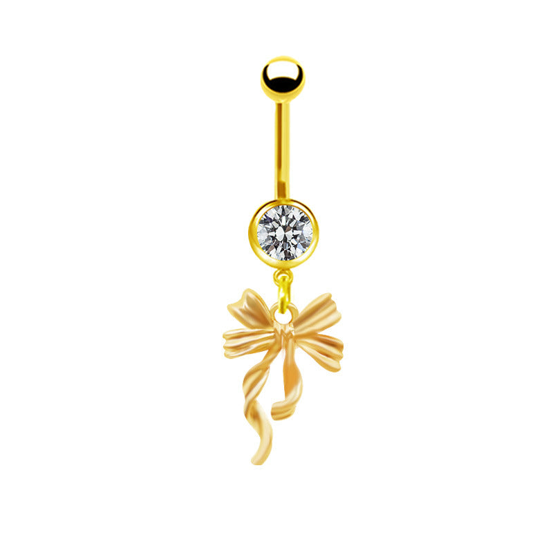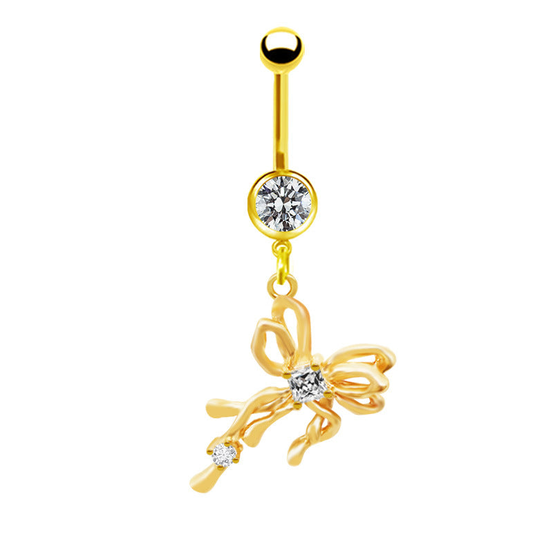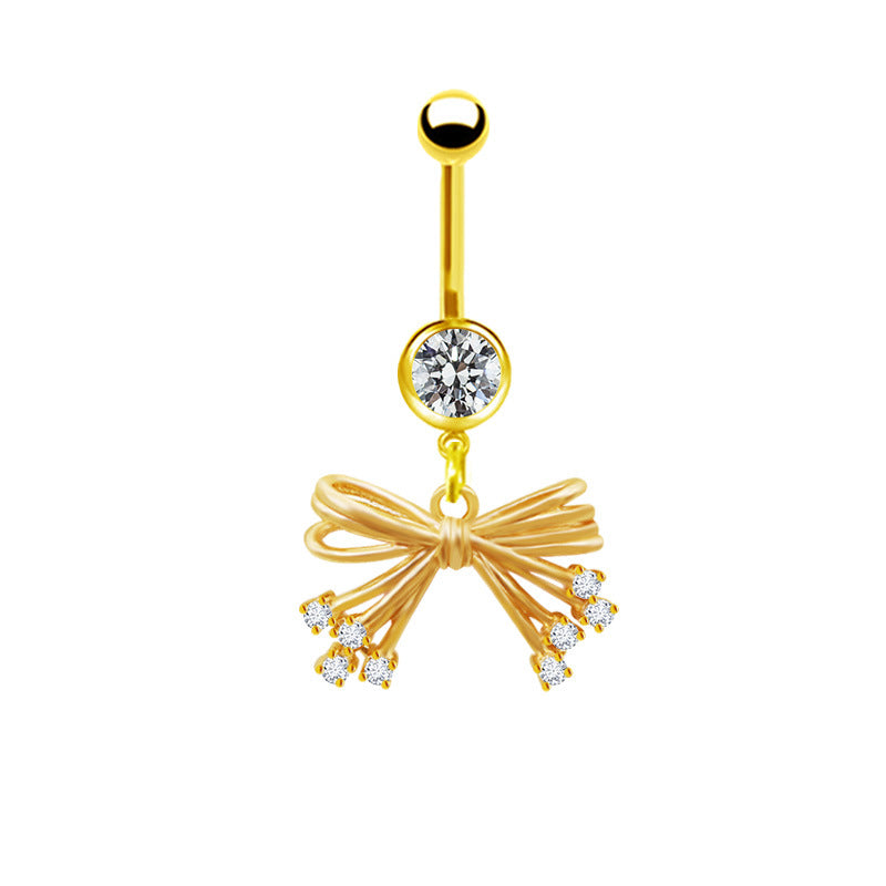 Elegant Bow Knot Belly Ring - 316 Stainless Steel with Rhinestones and Gold Plating