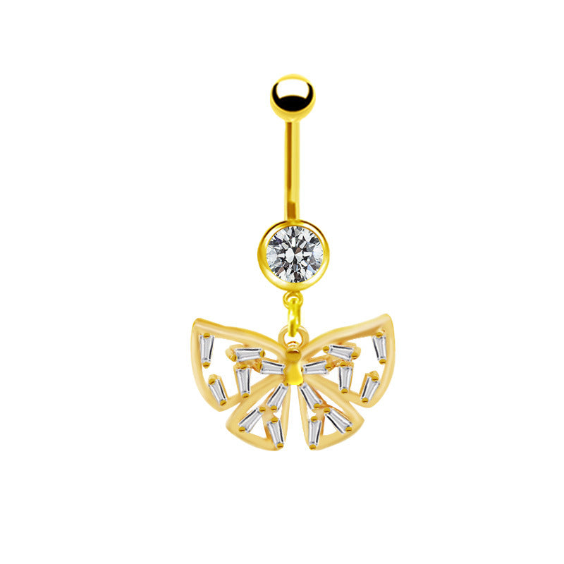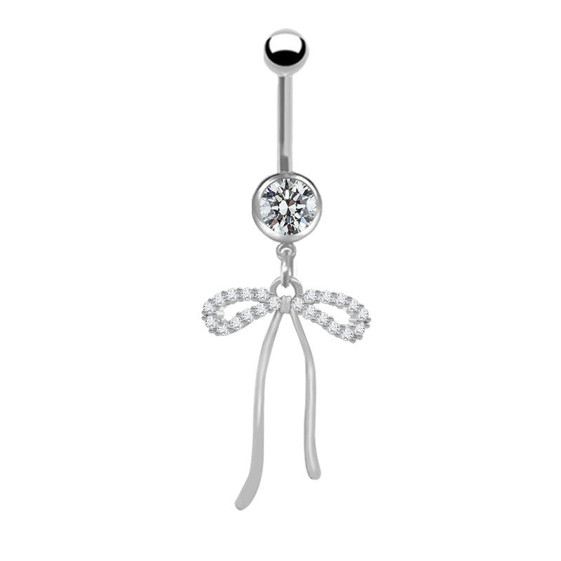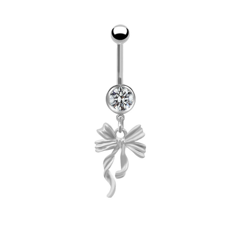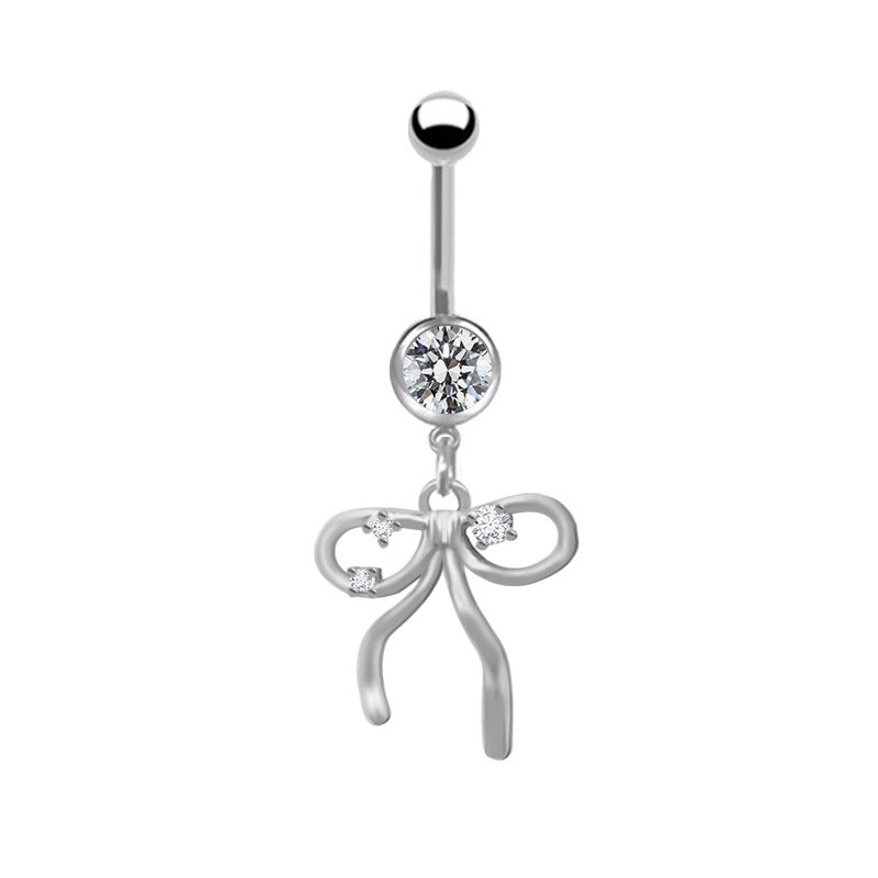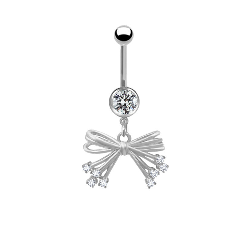 Elegant Bow Knot Belly Ring - 316 Stainless Steel with Rhinestones and Gold Plating