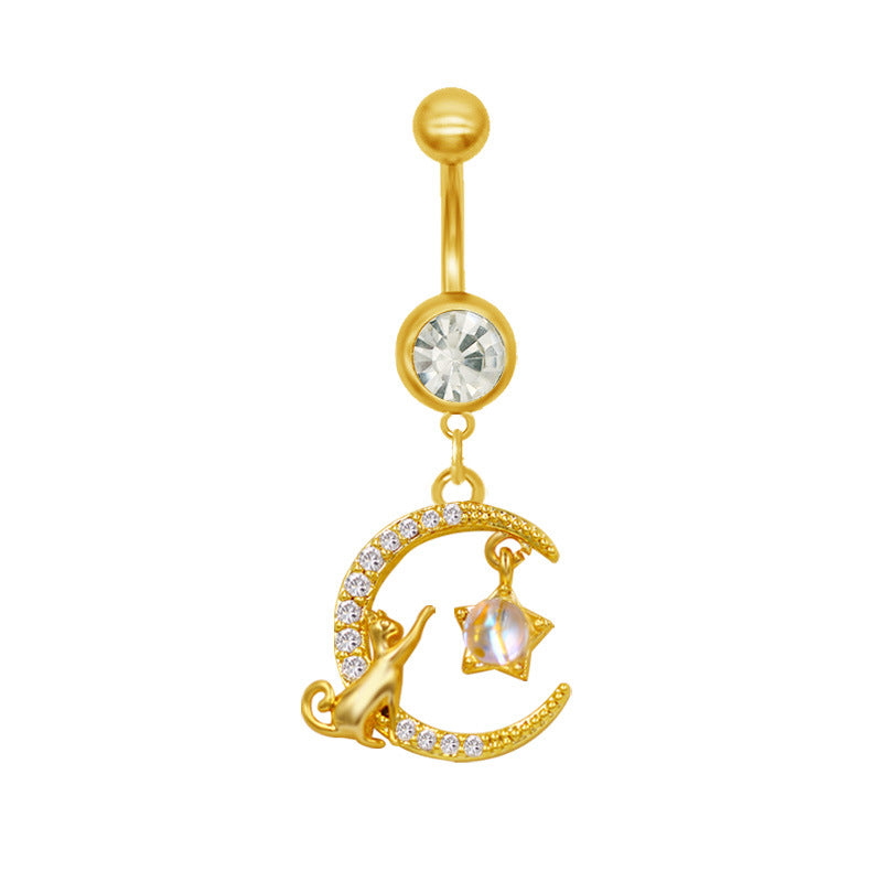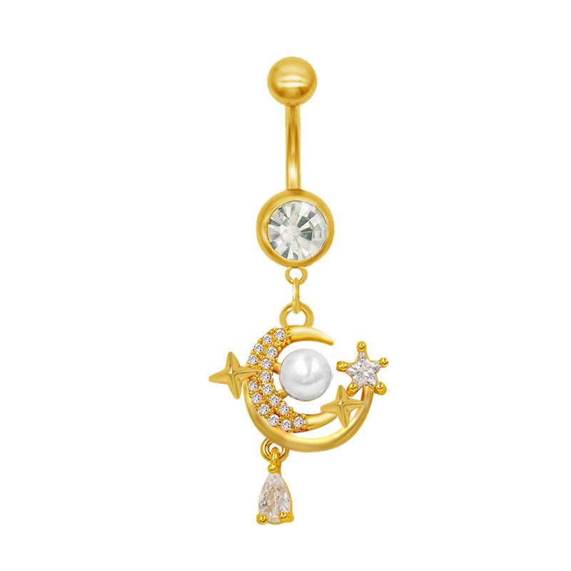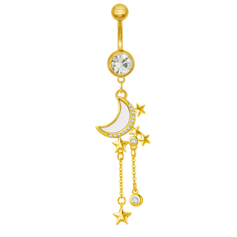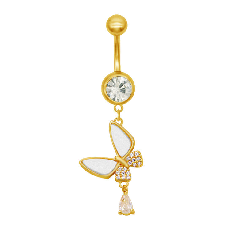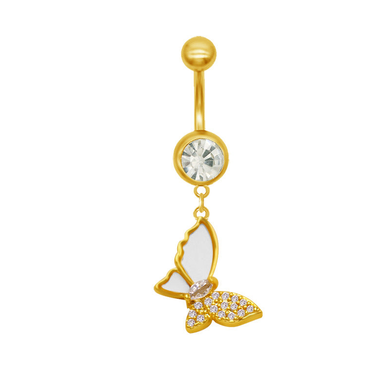 1 Piece Belly Rings Classic Star Heart Butterfly Design 316 Stainless Steel Alloy with Resin Rhinestones Glass Gold Plated