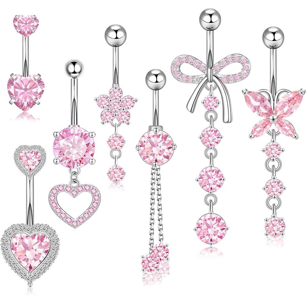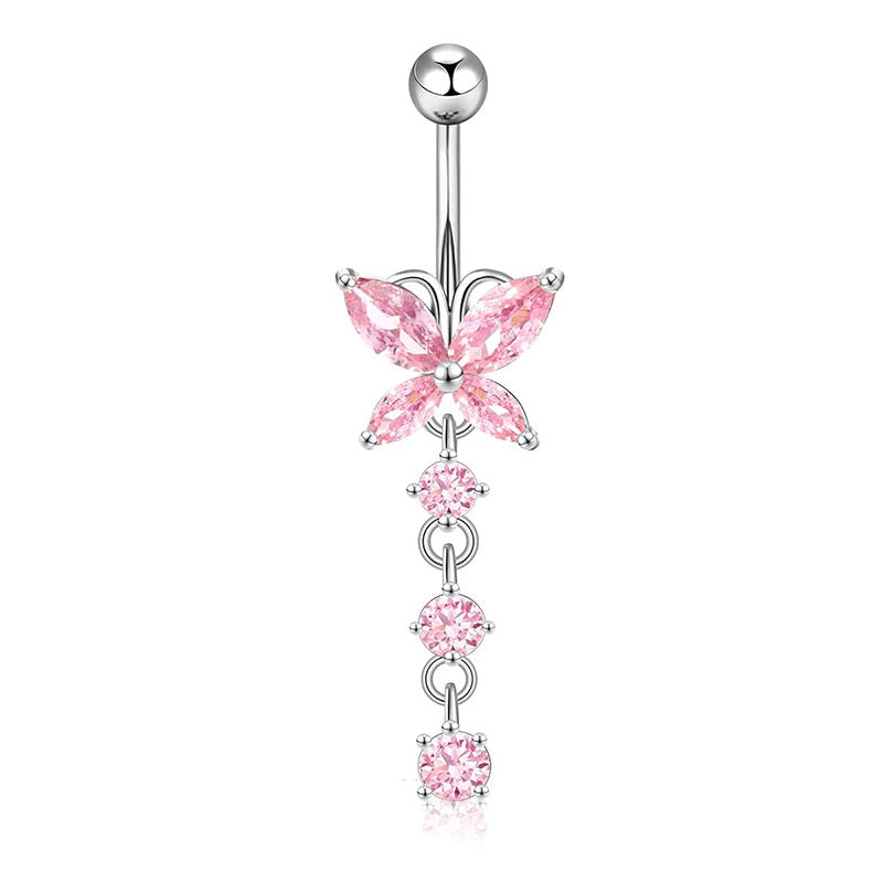 1 Piece Heart & Butterfly Zircon Inlay Stainless Steel Belly Ring Set