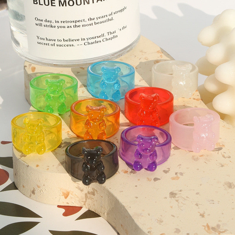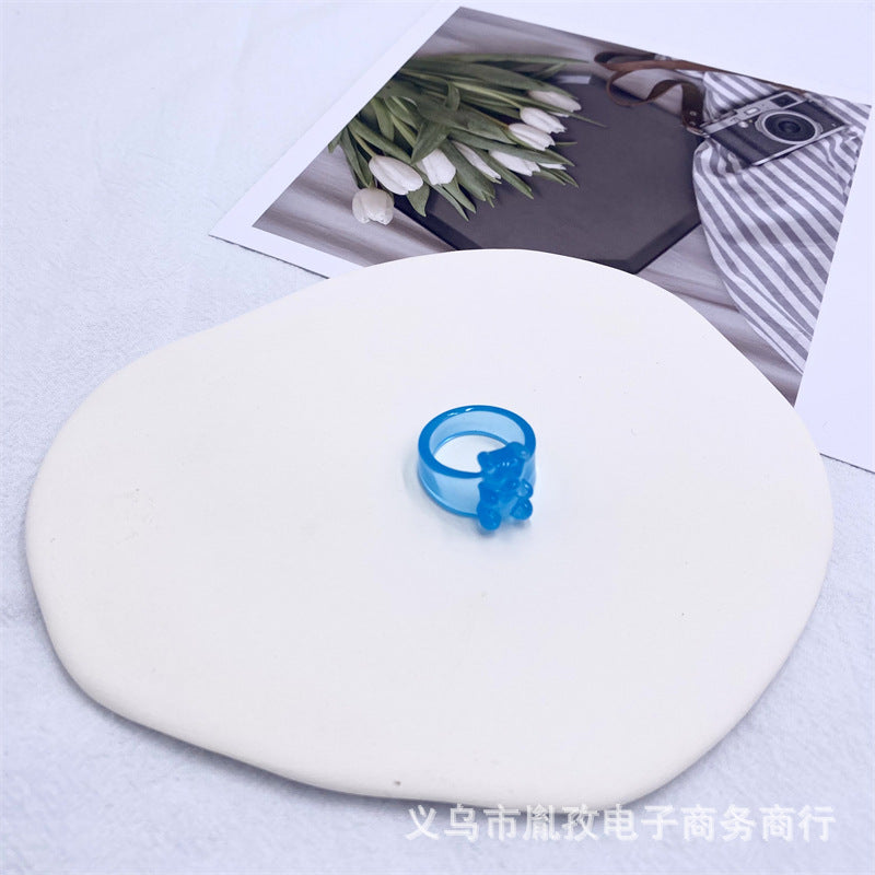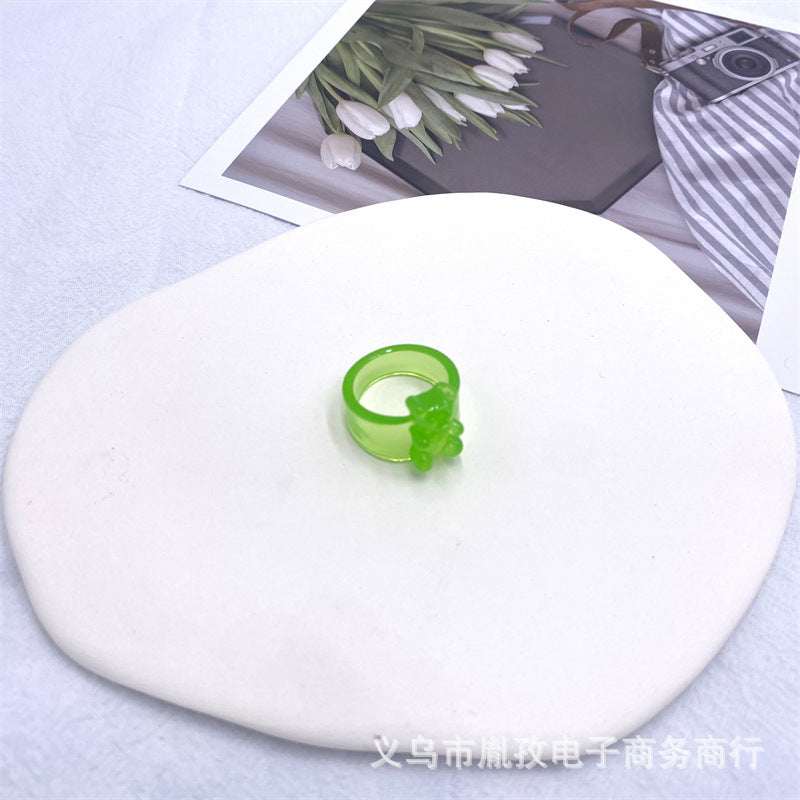 Cartoon Bear Acrylic Resin Women's Ring - Colorful Creative Design