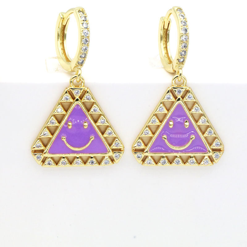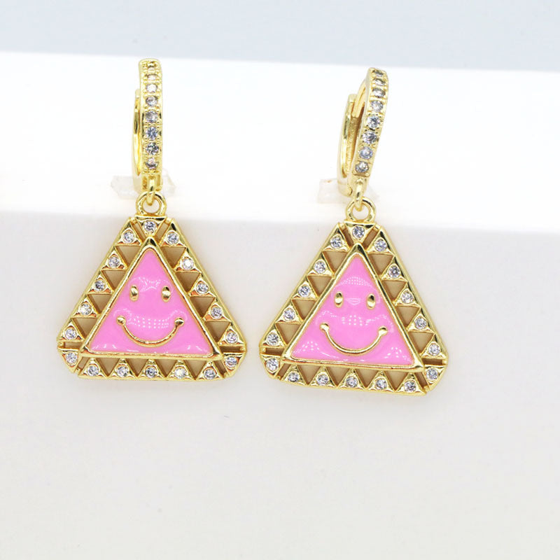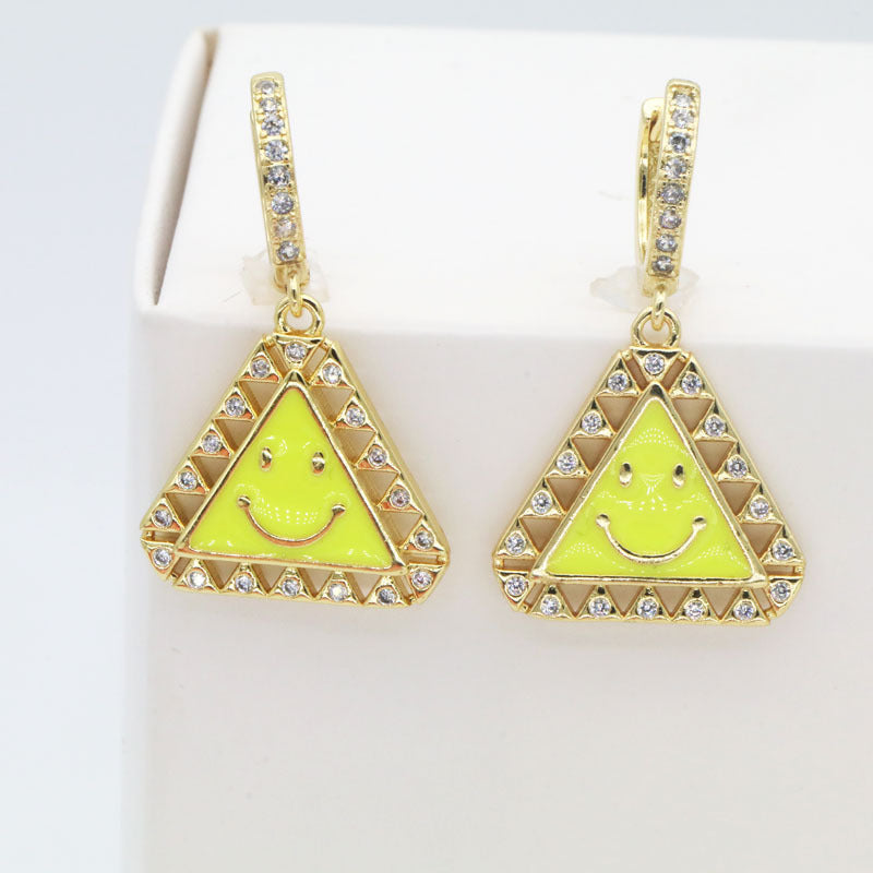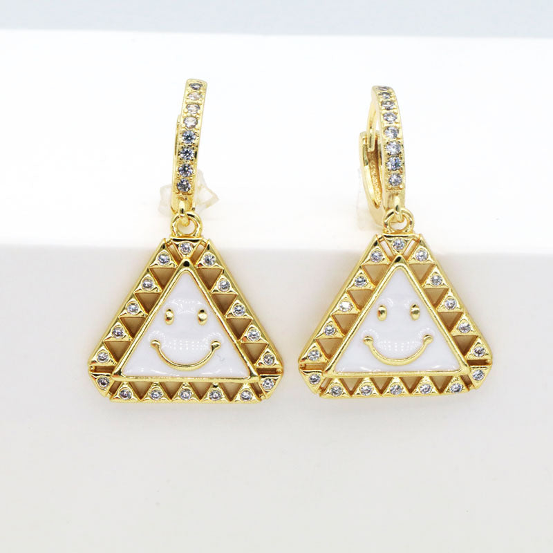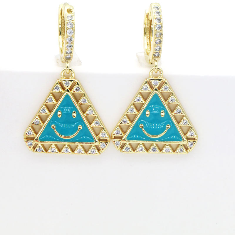 Elegant Geometric Triangle Smile Face Copper Drop Earrings